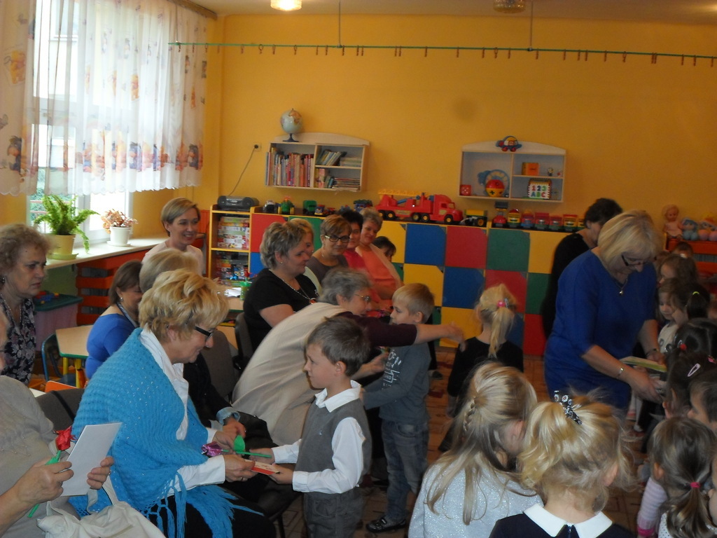 Na początku uroczystości głos zabrała dyrektor przedszkola pani Marzena Grudniewska, która złożyła najserdeczniejsze życzenia szanownym pedagogom. Potem odbyła sie część artystyczna, podczas której dzieci recytowały wierszyki, spiewały piosenki, a na koniec obdarowały Grono Pedagogiczne przygotowanymi laurkami i kwiatami.