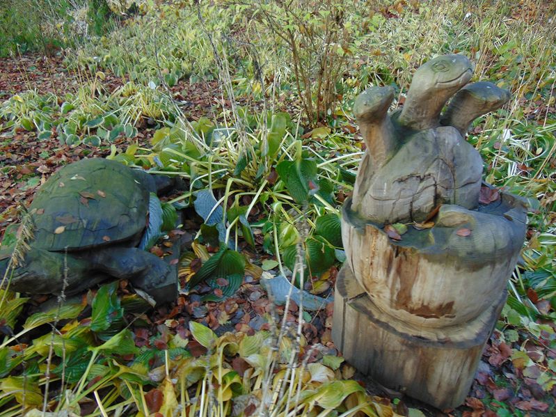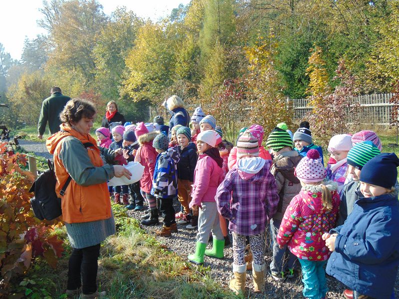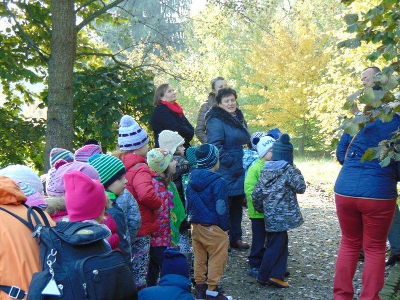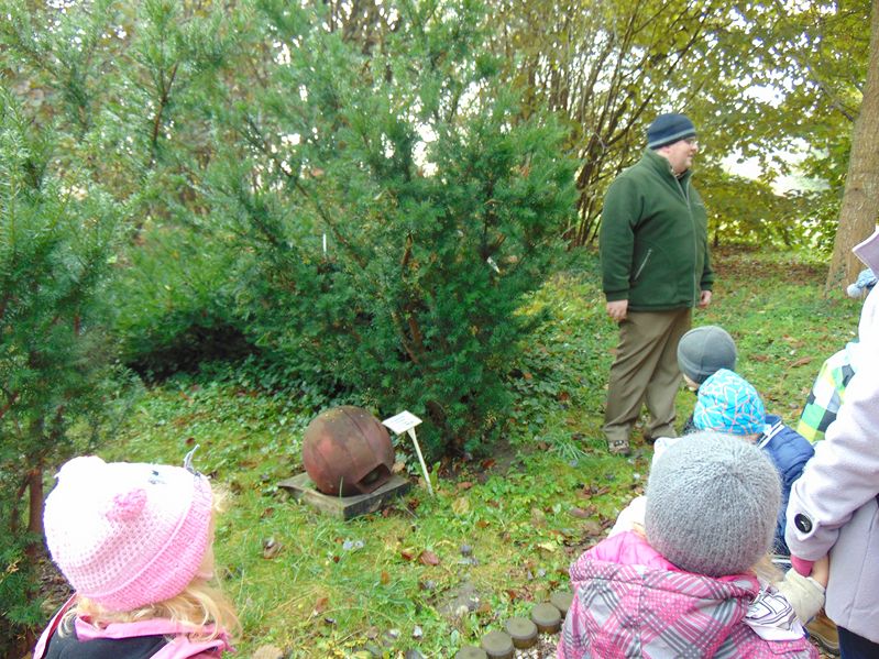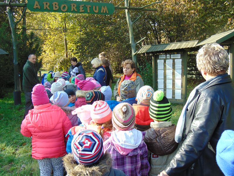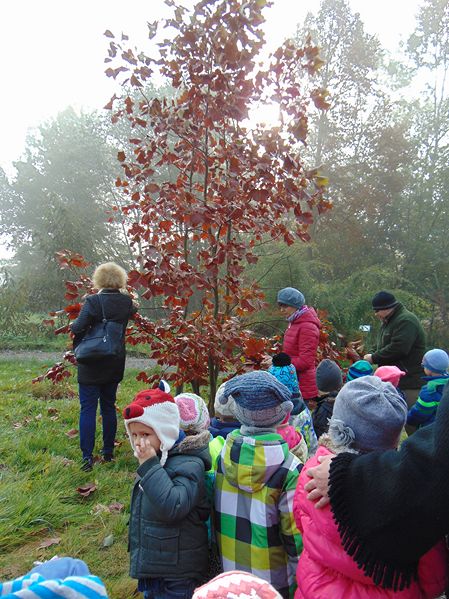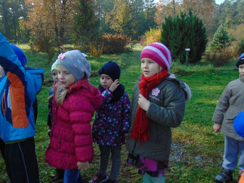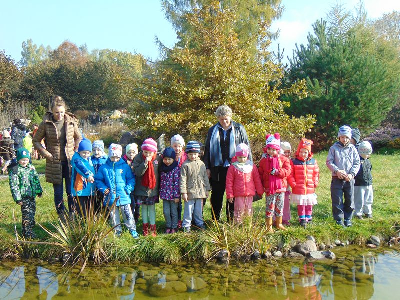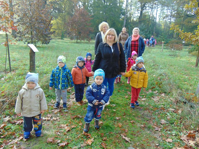 Podczas spaceru po arboretum przedszkolaki zobaczyły najciekawsze obiekty przyrody ożywionej m.in. Alpinarium z kolekcją roślin górskich, rośliny występujące w Ameryce Północnej i Azji oraz eksponaty tam umieszczone np. duże drewniane zwierzęta.