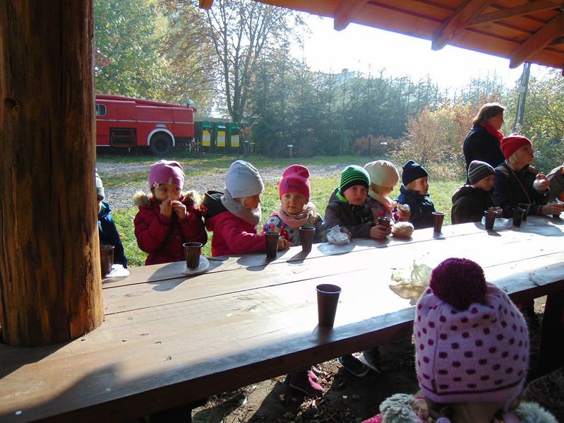 Uwieńczeniem wycieczki był pyszny wspólny poczęstunek i zabawa. Przedszkolaki serdecznie dziękowały za miłą i ciekawą lekcję przyrody.
