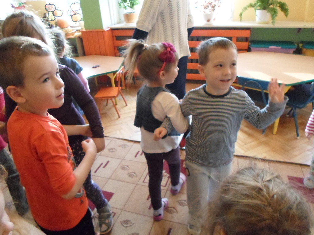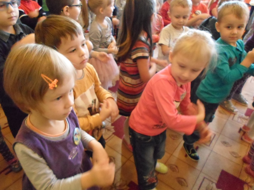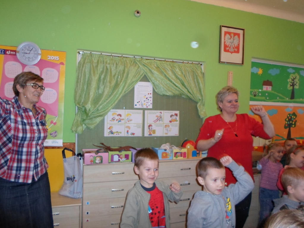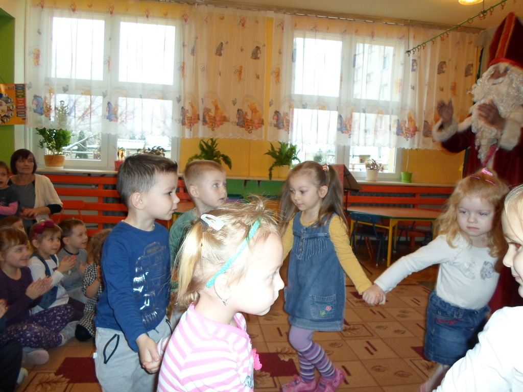 Miały też okazję nauczyć się mówić „dzień dobry", "dziękuję" i "do widzenia” w ich językach. Była także wspólna zabawa i gimnastyka przy mikołajkowych piosenkach oraz świąteczne życzenia dla dzieci, pań i rodziców.