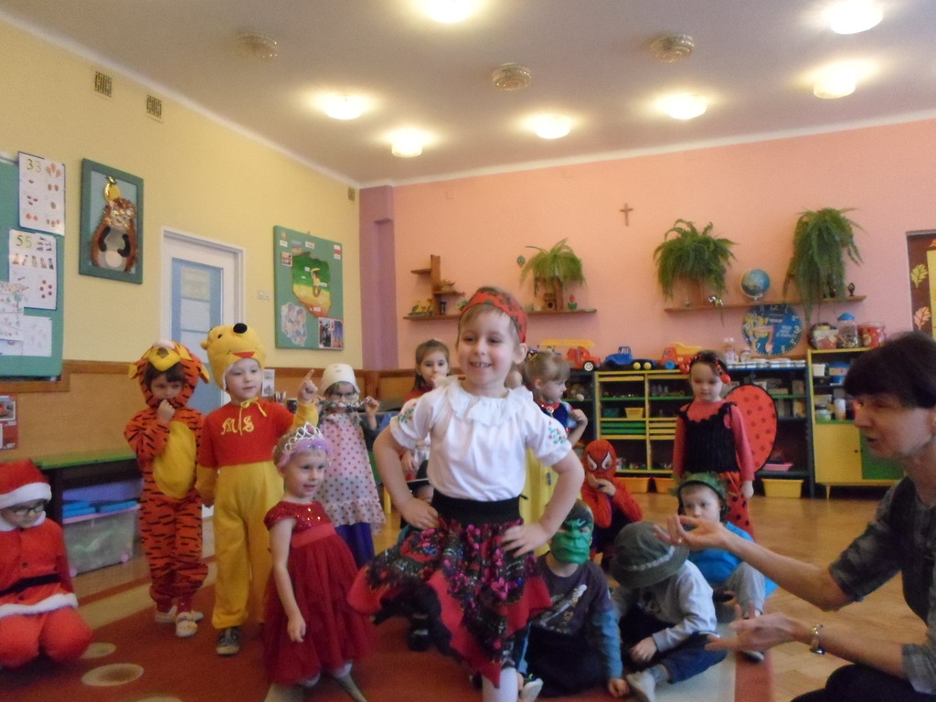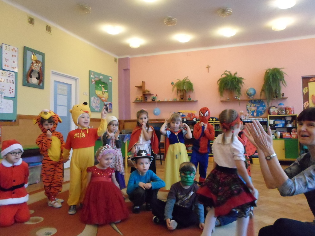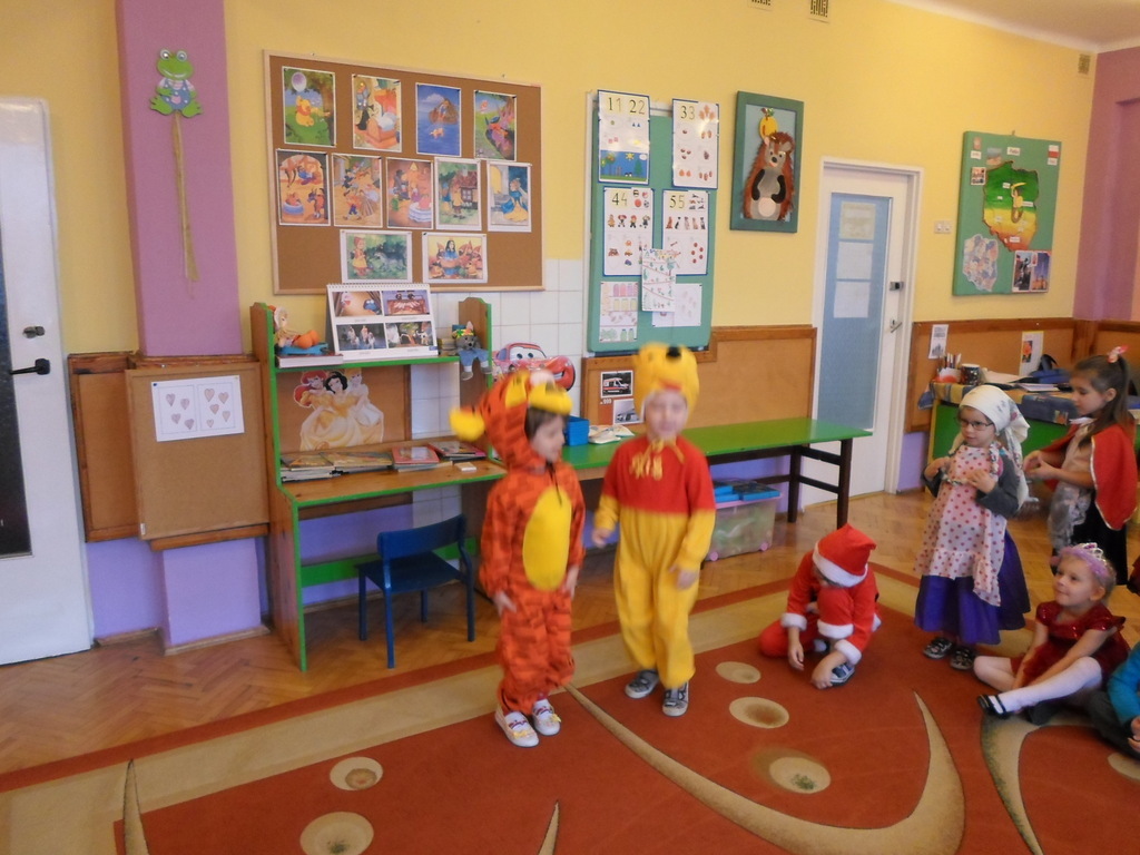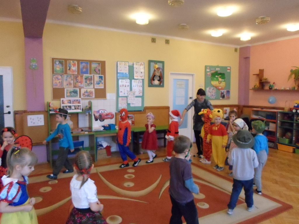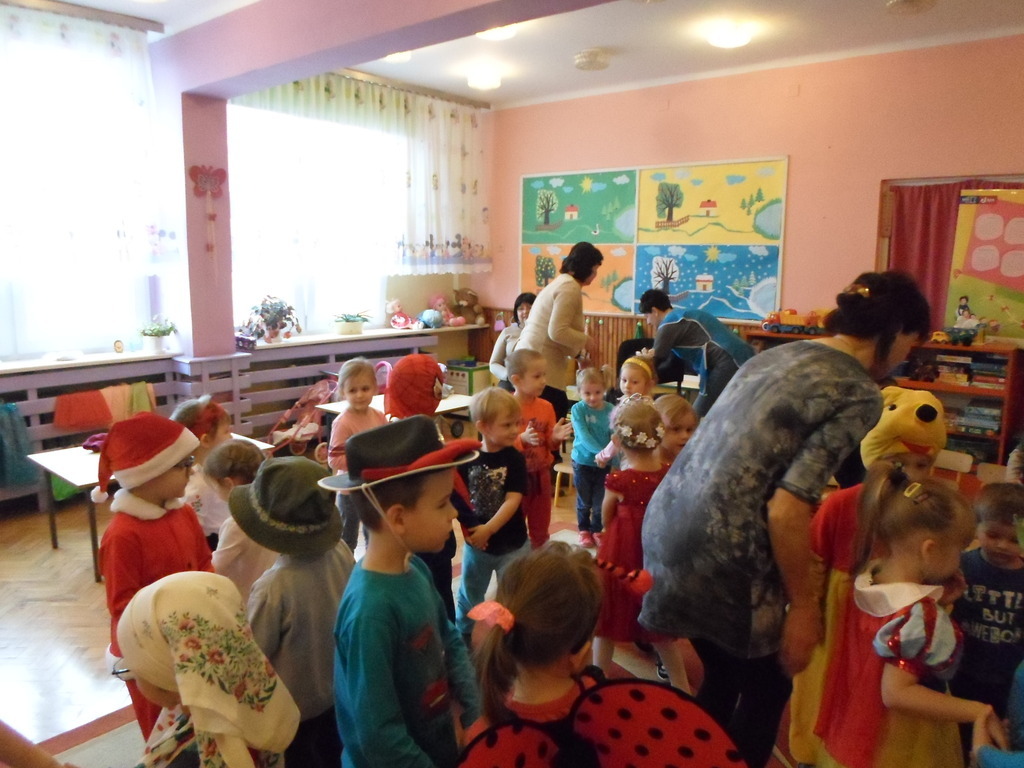 Oddział III „Pszczółki” zaprezentował pokaz mody teatralnej, w której występowały postacie z bajek. Na pokaz zaproszono maluchów, którzy podziwili i nazywali prezentujące się postacie. Chętnie dzieci zagrały , krótkie scenki dramowe , a potem bohaterzy bajek zaprosili maluchów do wspólnej zabawy przy muzyce.