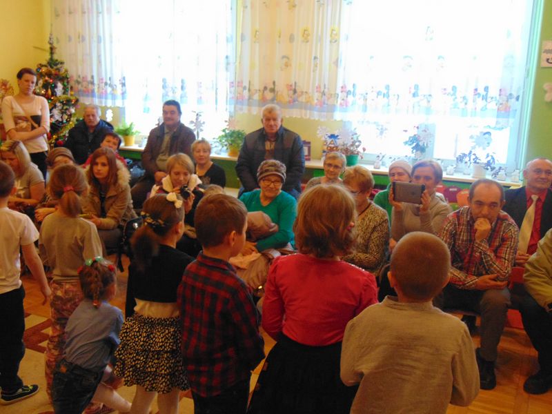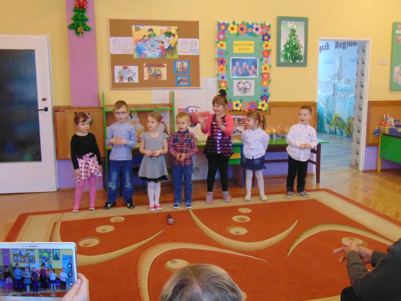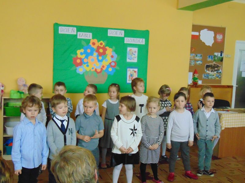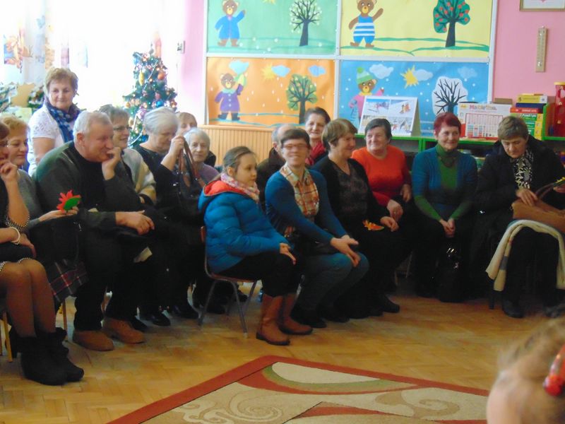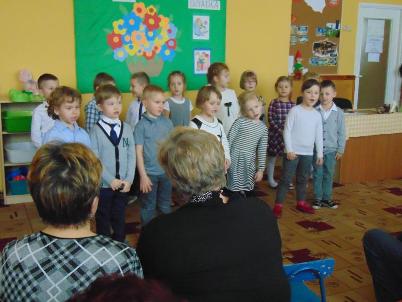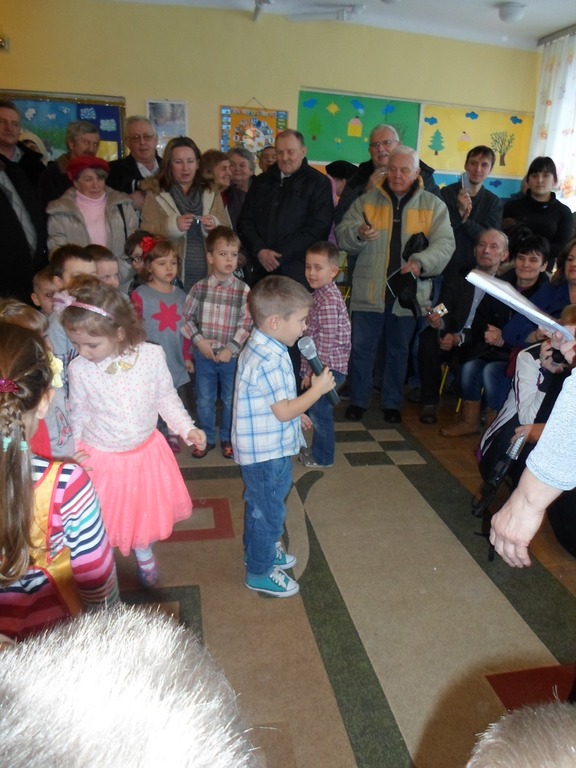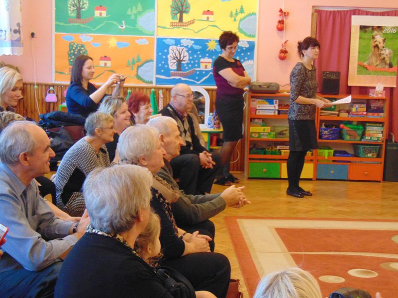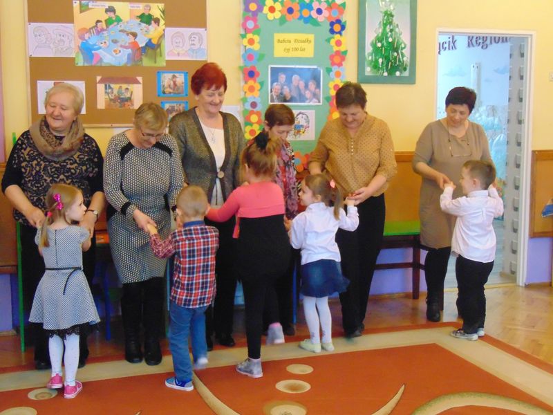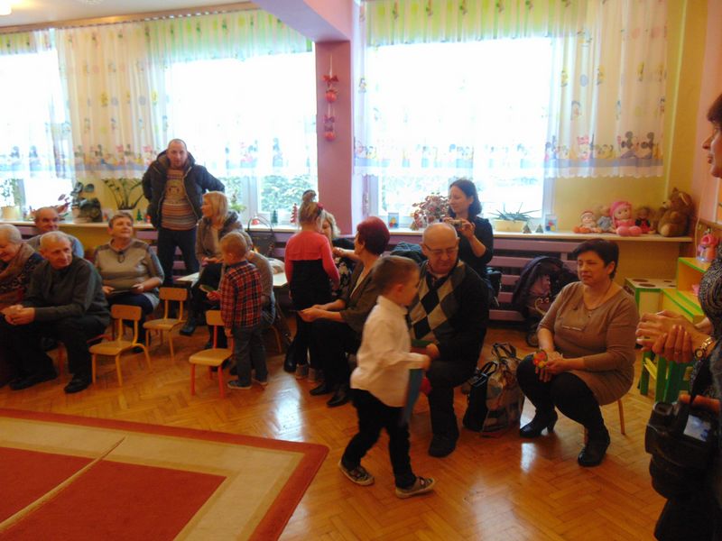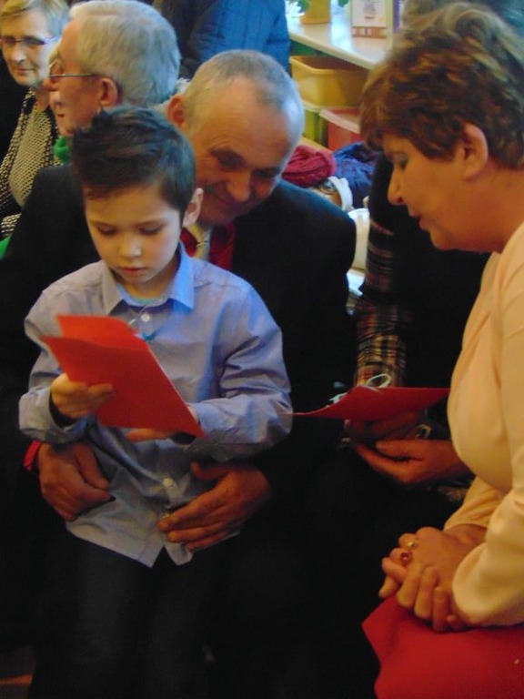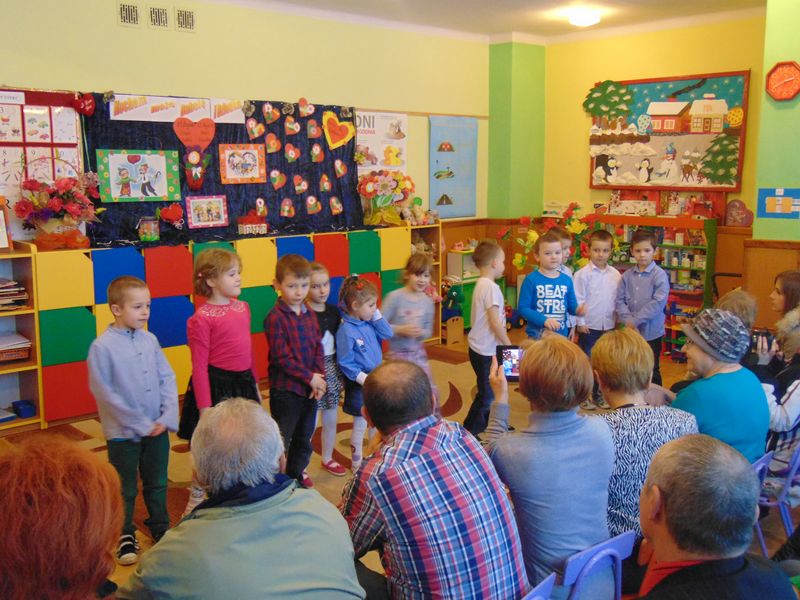 „Kochamy nasze Babcie i Dziadków też kochamy ,w dniu Babci i Dziadka życzenia składamy …” Mimo, że styczeń jest zimowym miesiącem ,pełnym chłodnych dni ,są takie dwa dni , kiedy każdemu robi się cieplej na sercu-jest to święto naszych kochanych Babć i Dziadków .W naszym przedszkolu jest ono tradycją.W dniach 21i 22 stycznia przybyli do nas licznie wspaniali goście. Przedszkolaki w pięknie udekorowanych salach przedstawiły programy artystyczne ,przygotowane przez wychowawczynie. Były to wzruszające wiersze, piosenki , tańce oraz inscenizacje ,związane tematycznie z tymże świętem. Jak zwykle dzieci stanęły na wysokości zadania i wszystko wypadło świetnie. Wdzięczne wnuczęta obdarowały swoich ukochanych gości, własnoręcznie przygotowanymi upominkami. Atmosfera uroczystości była miła i serdeczna, dostarczyła wszystkim wielu wzruszeń .Dzieci poprzez wiersze i piosenki wyraziły kochanym Babciom i Dziadkom swoją miłość oraz wdzięczność za opiekę. Na twarzach dziadków było widać radość i dumę. Podziękowaniom ze strony miłych gości nie było końca. Niektórzy, tak jak dzieci niechętnie rozstawali się z przedszkolem.