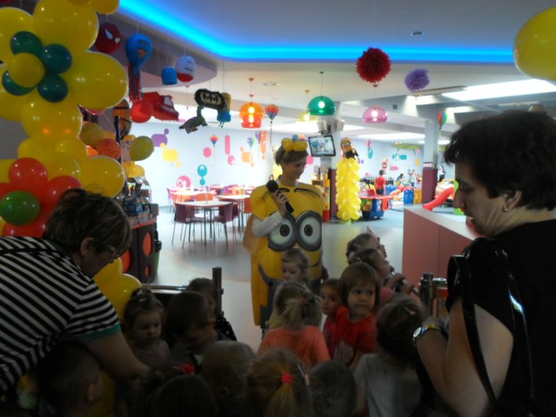 W dniu 19 czerwca2016r mięliśmy możliwość wybrać się do Centrum Zabaw dla dzieci Hula Park. Przywitały nas bardzo serdecznie postaci z bajki Minionki. Zabrały nas w tę wspaniała, niesamowitą podroż do niezwykłego miejsca zabaw, pląsów, tańców. W bajkowej Minionkowej scenerii nie zabrakło również warsztatów artystycznych. Z pomocą animatorów i wychowawców dzieci wykonywały gniotki, opaski, chętne dzieci miały pomalowane buźki. Każde dziecko otrzymało zwierzątka skręcane z kolorowych baloników. Po warsztatach czekały nas zabawy w basenie z kulkami, skoki na trampolinie i wycieczka po rurach z przeszkodami oraz wiele innych atrakcji czas minoł bardzo szybko i przyjemnie. Tak mile spędzony dzień będziemy długo wspominać