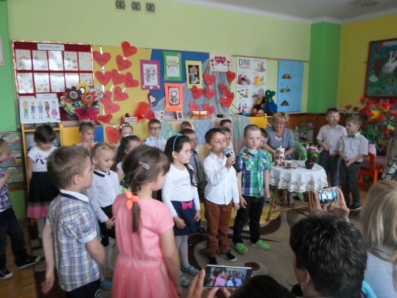 W tym dniu dzieciaki pragną złożyć życzenia, zdrowia, szczęścia i powodzenia”, - tymi słowami wszyscy pozdrawiali swoich rodziców. Przedszkolaki zaśpiewały wiele pięknych piosenek i recytowały wiersze na tle pięknych dekoracji.