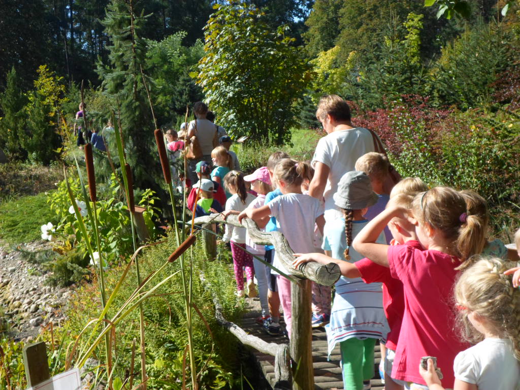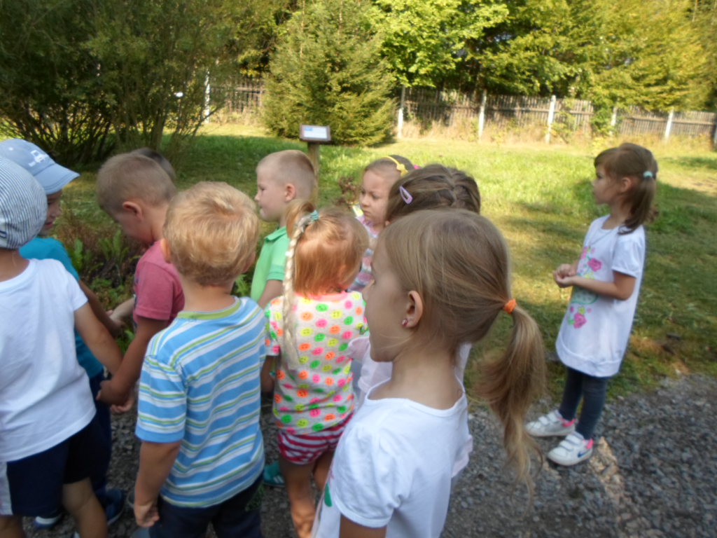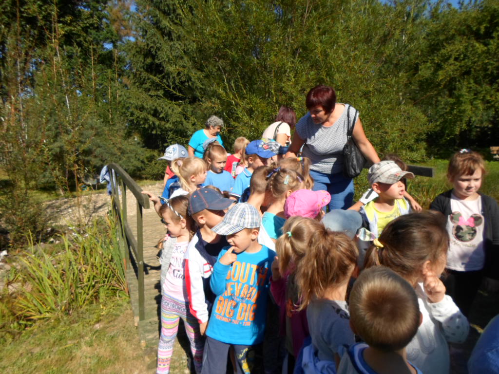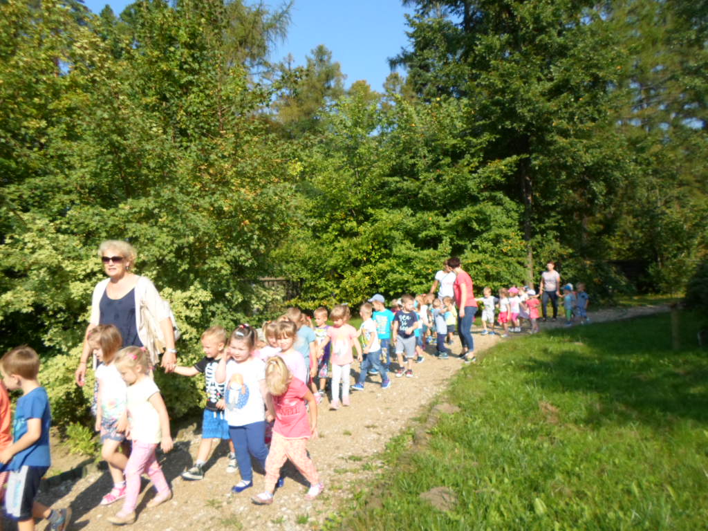 Podczas spaceru po arboretum przedszkolaki zobaczyły najciekawsze obiekty przyrody ożywionej m.in. Alpinarium z kolekcją roślin górskich, oraz eksponaty tam umieszczone np. duże drewniane zwierzęta. Było również małe mini zoo z żywymi zwierzętami.