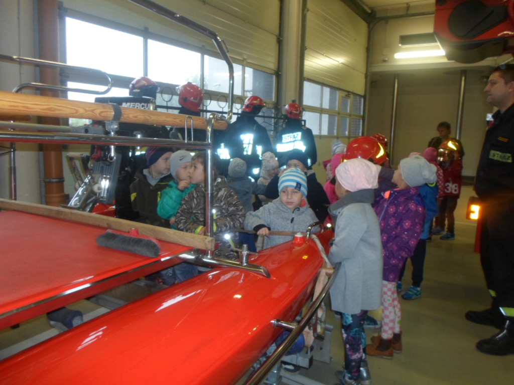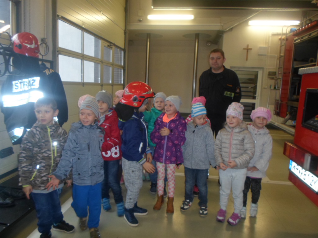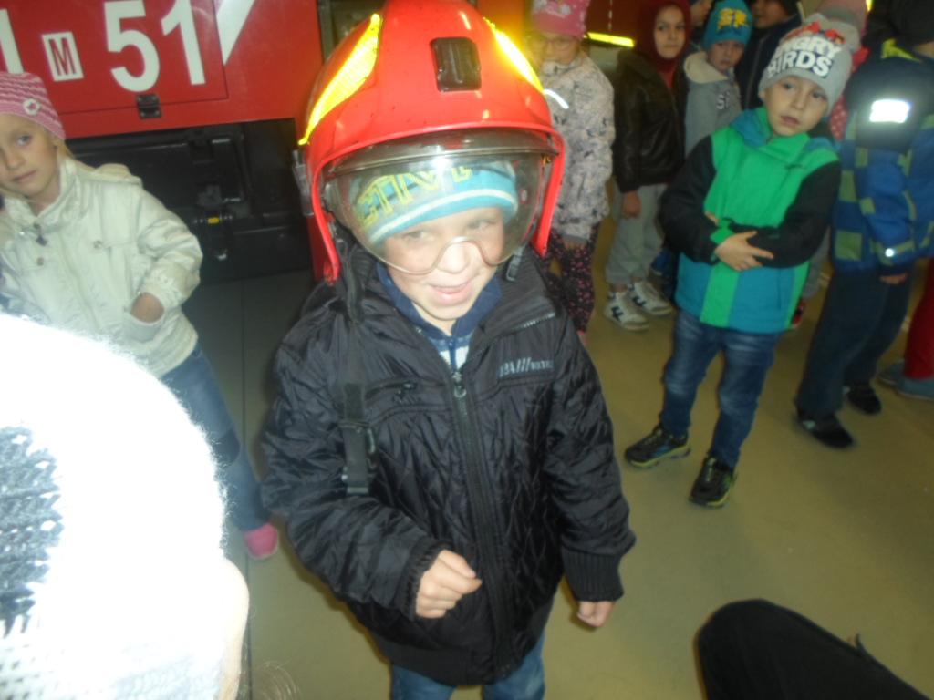Dzieci 5 i 6 letnie miały możliwość z bliska zobaczyć, jak wygląda kompletny strój strażaka