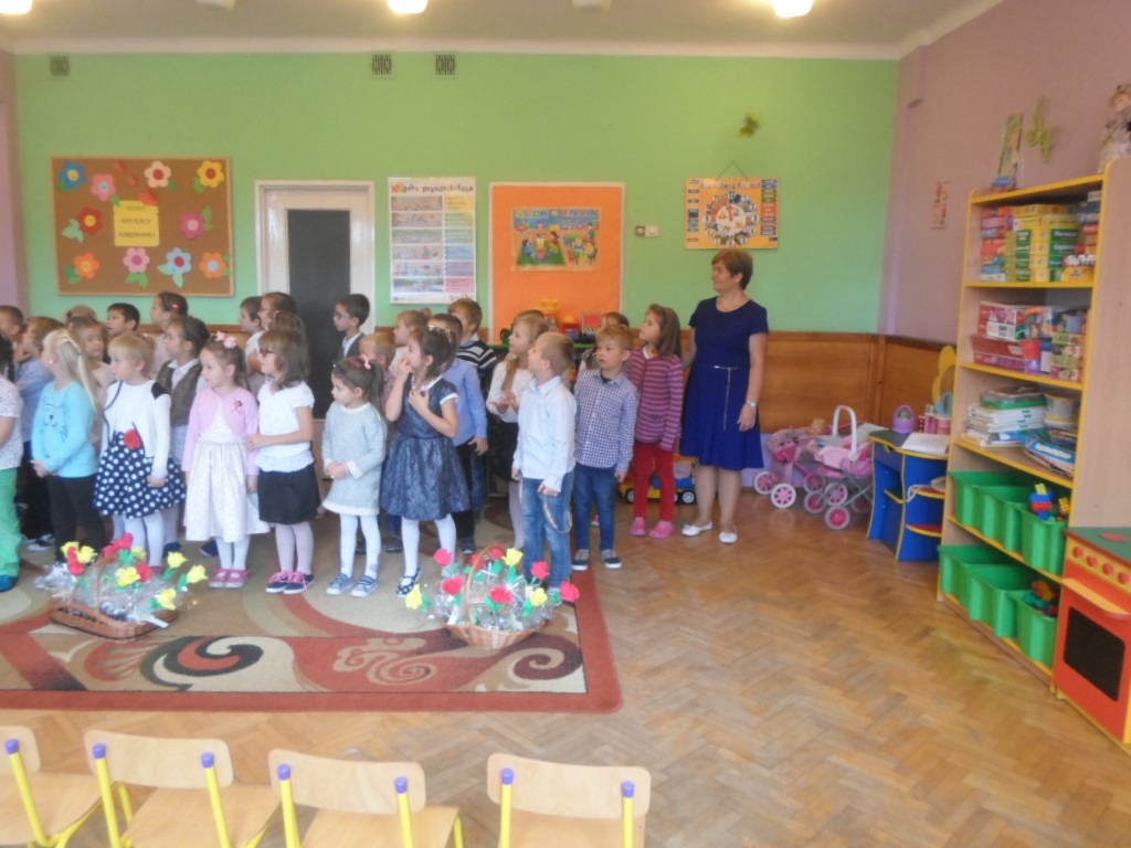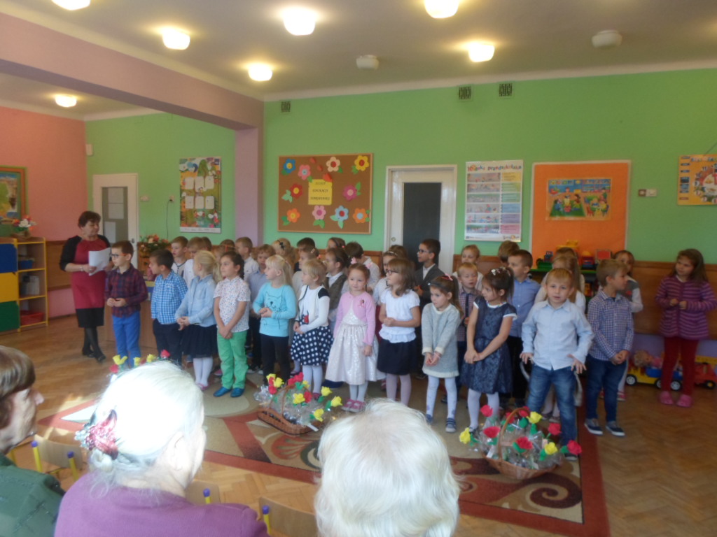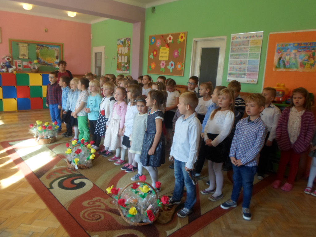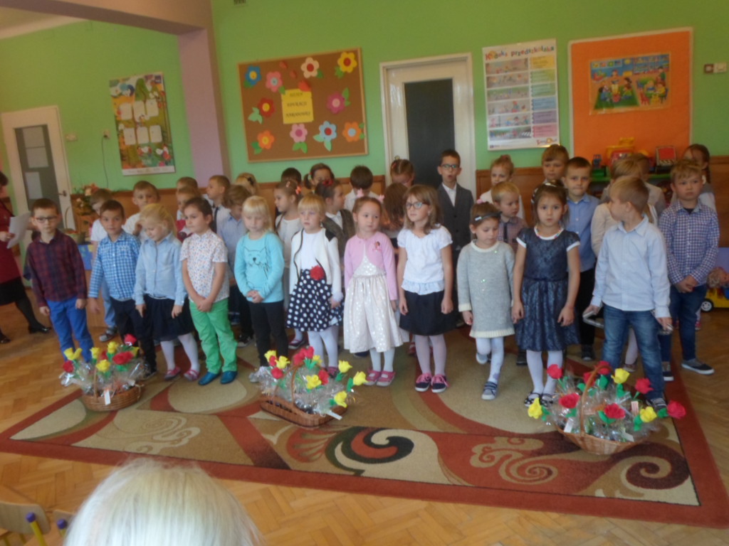 Dzieci 6 – letnie z oddziału VII „Leśne Duszki” i VIII „Smerfy” zaprezentowały wiersze i piosenki, przygotowane przez panią Grażynkę Wiktorowską i panią Małgorzatę Jemiołek. Uroczystość przebiegła w radosnej i sympatycznej atmosferze.