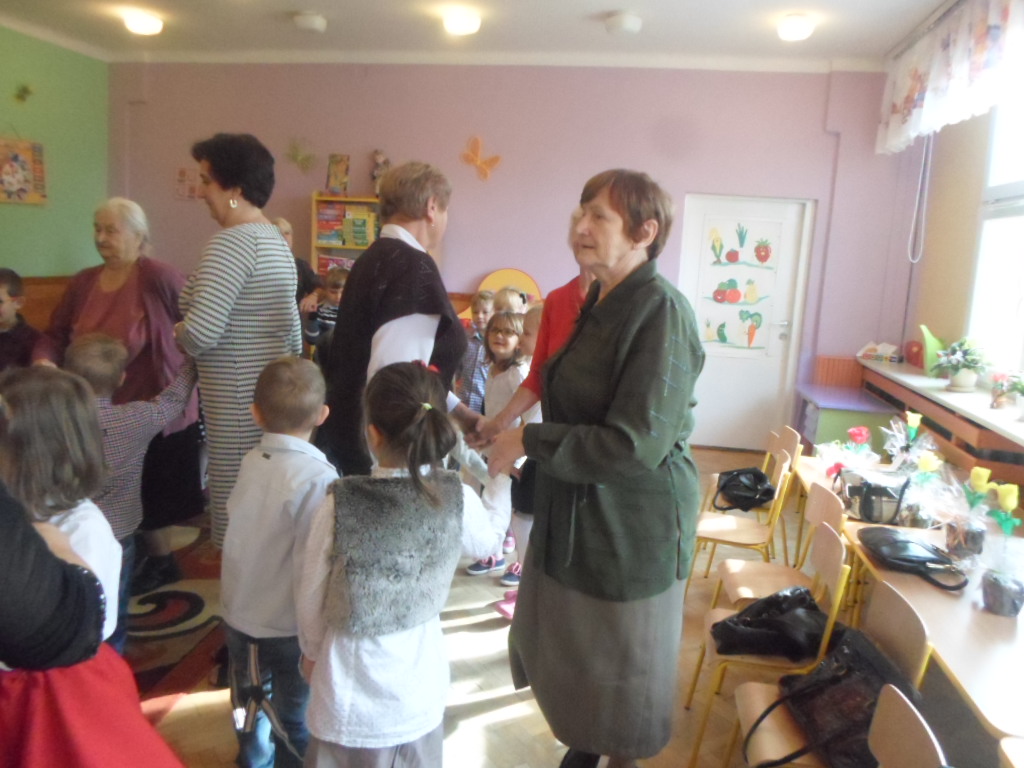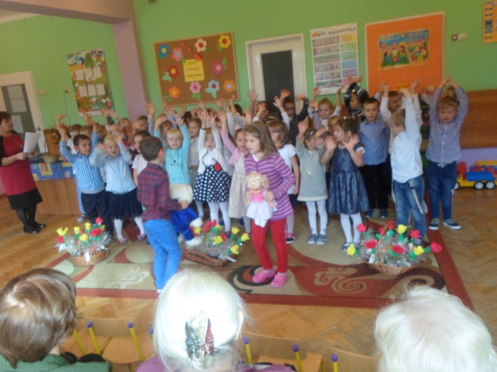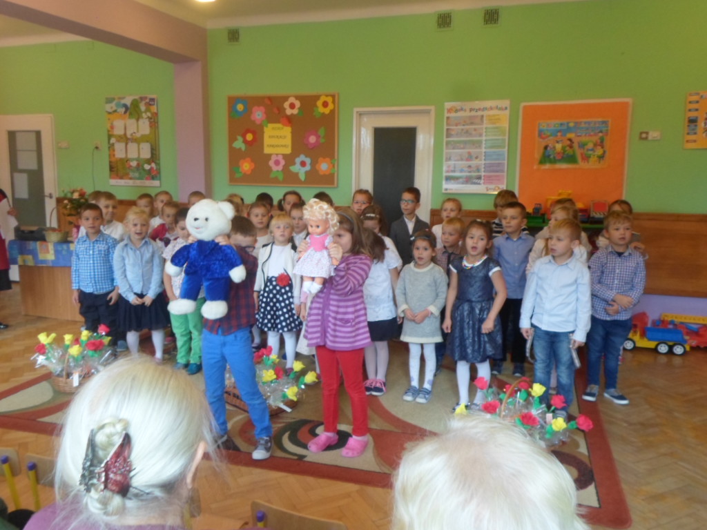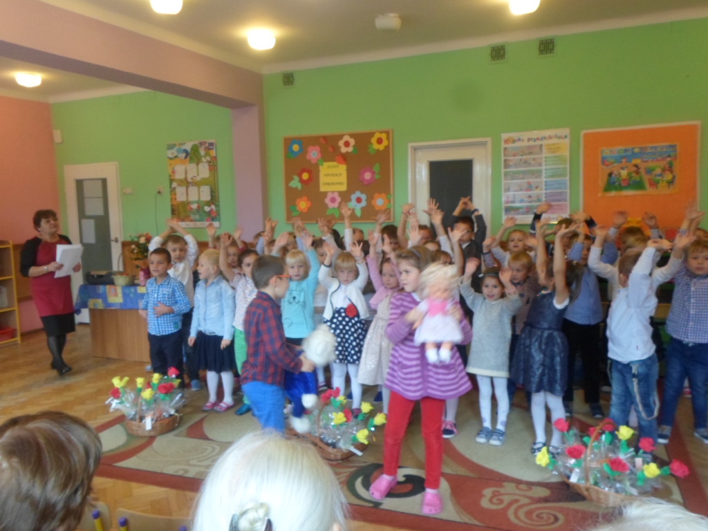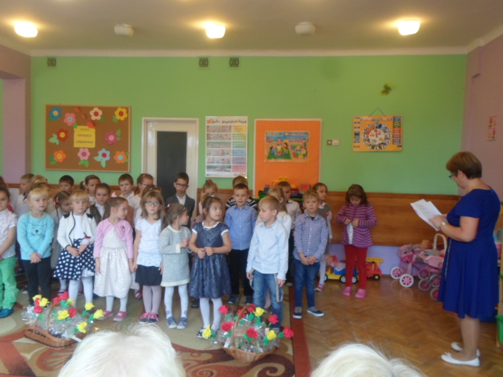 Dzieci 6 – letnie z oddziału VII „Leśne Duszki” i VIII „Smerfy” zaprezentowały wiersze i piosenki, przygotowane przez panią Grażynkę Wiktorowską i panią Małgorzatę Jemiołek. Uroczystość przebiegła w radosnej i sympatycznej atmosferze.