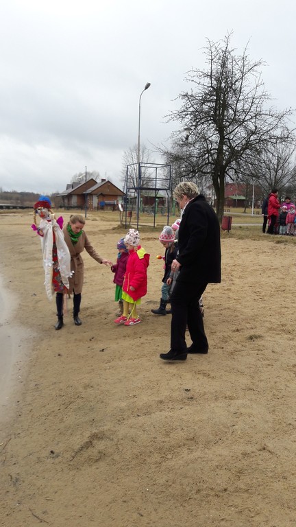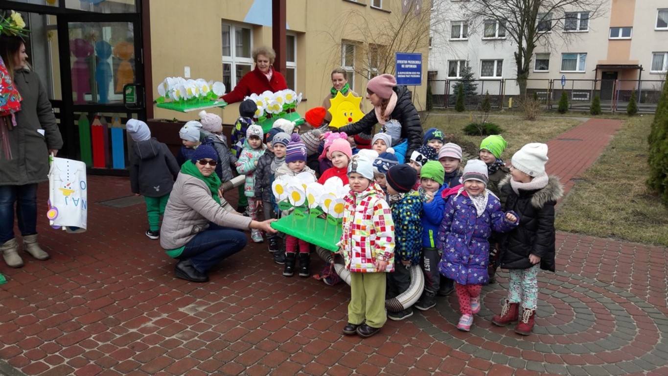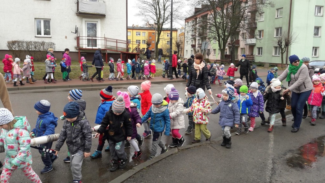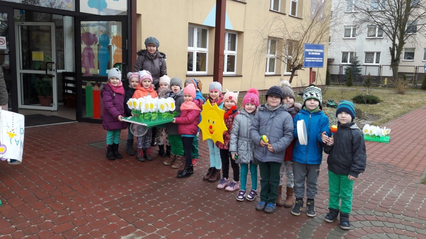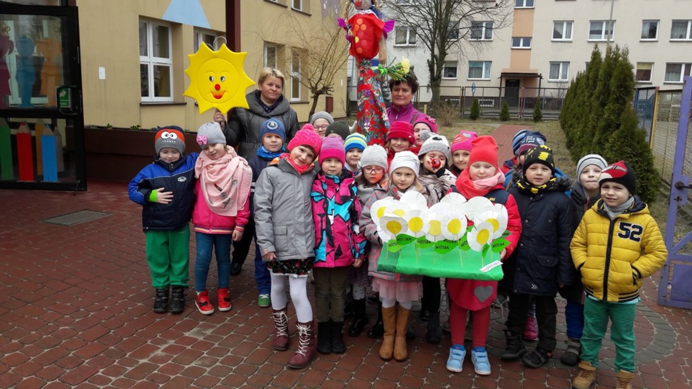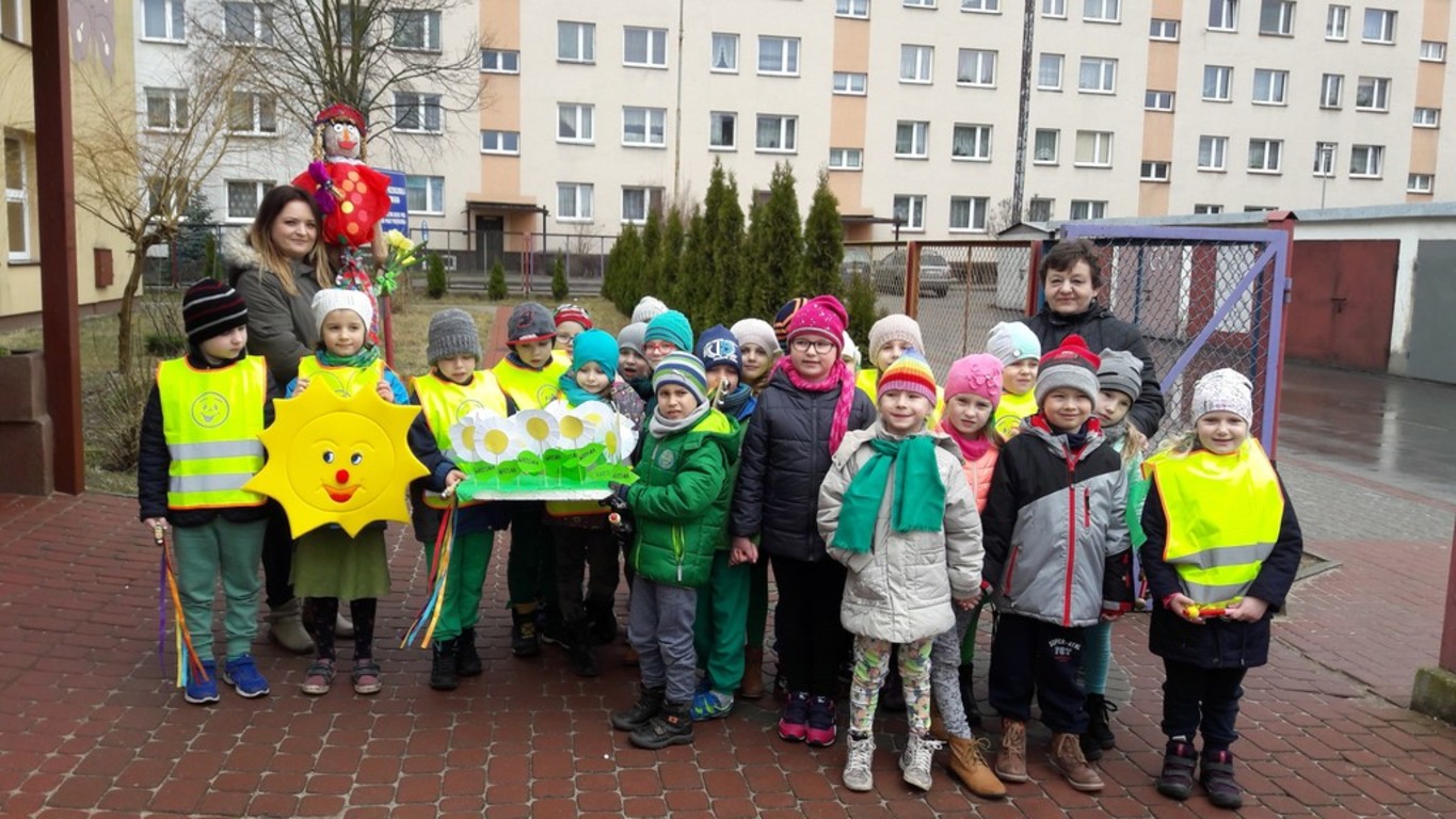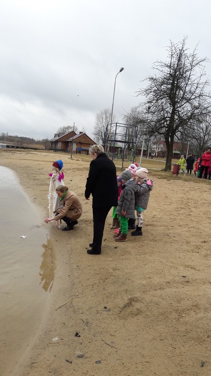Potem w barwnym pochodzie z transparentem "Żegnaj Zimo" i kukłą Pani Zimy oraz instrumentami udały się nad Iłżankę.Tam dzieci odrywały płatki śniegu z sukni Marzanny i wrzucały je do wody, mówiąc wierszyk pożegnalny. W drodze powrotnej niosły Panią Wiosnę i transparent "Witaj Wiosno"- śpiewały o niej piosenkę. Przed przedszkolem na każdą grupę czekały upominki od Wiosny - papierowe stokrotki.