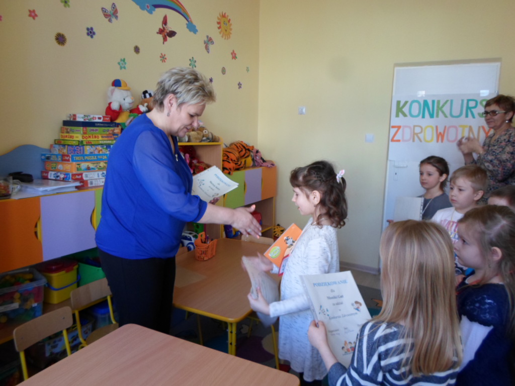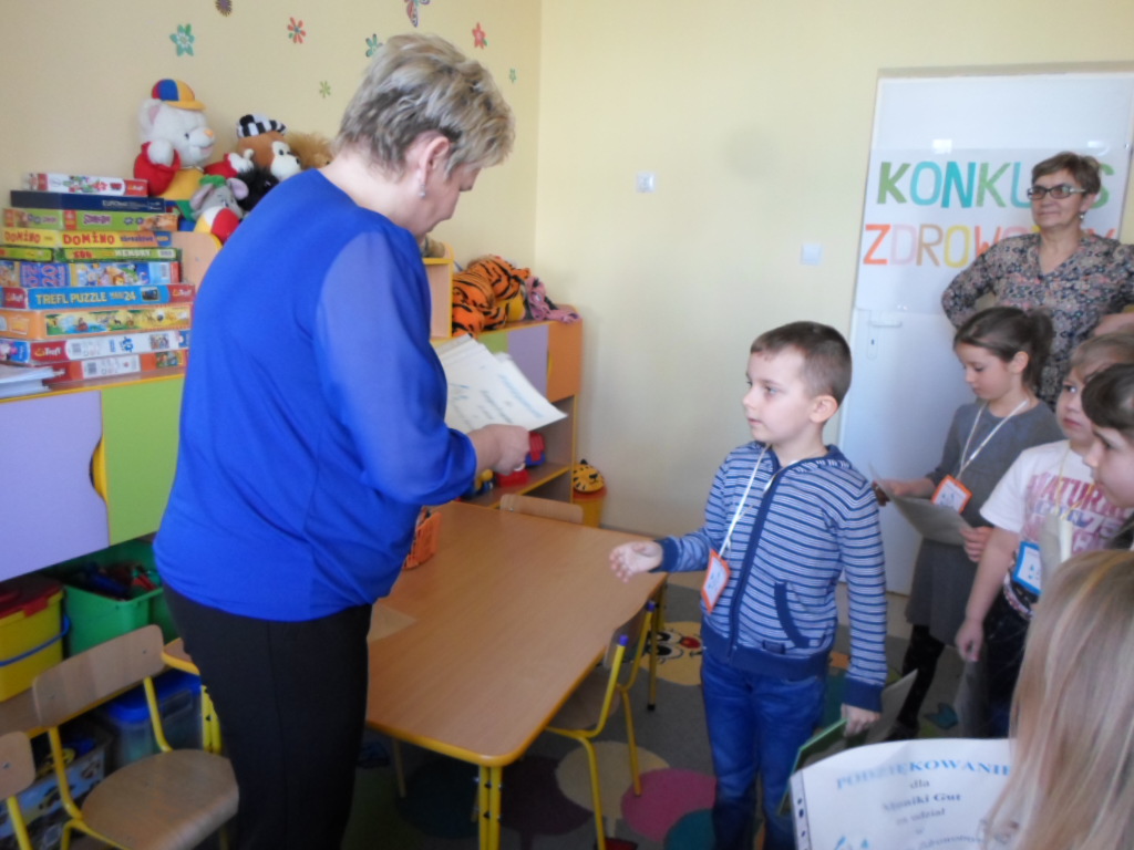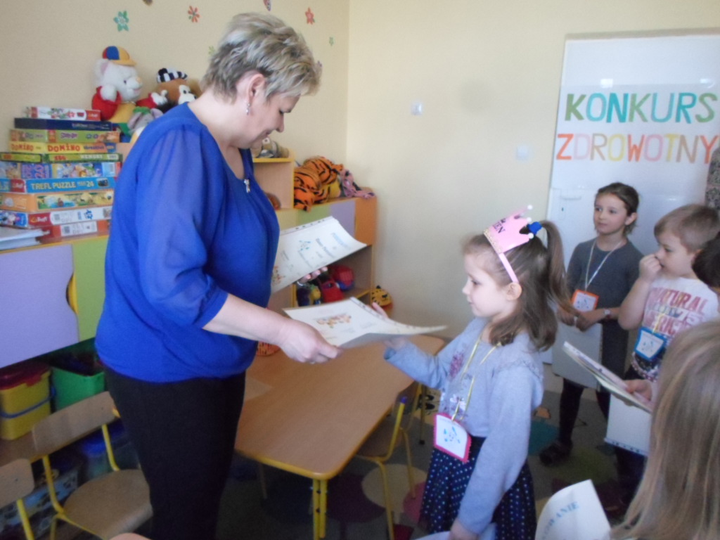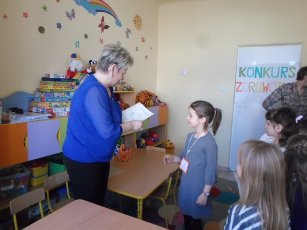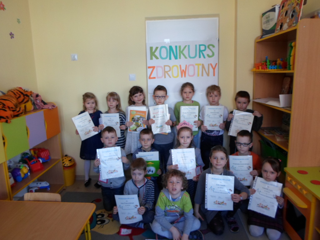 Dnia 27.03.2017r. w Naszym Przedszkolu odbył się Konkurs Zdrowotny, w którym wzięły udział dzieci z grup 5-6 latków. Wszyscy uczestnicy konkursu otrzymali podziękowania za udział. Wyróżniono trzy osoby: