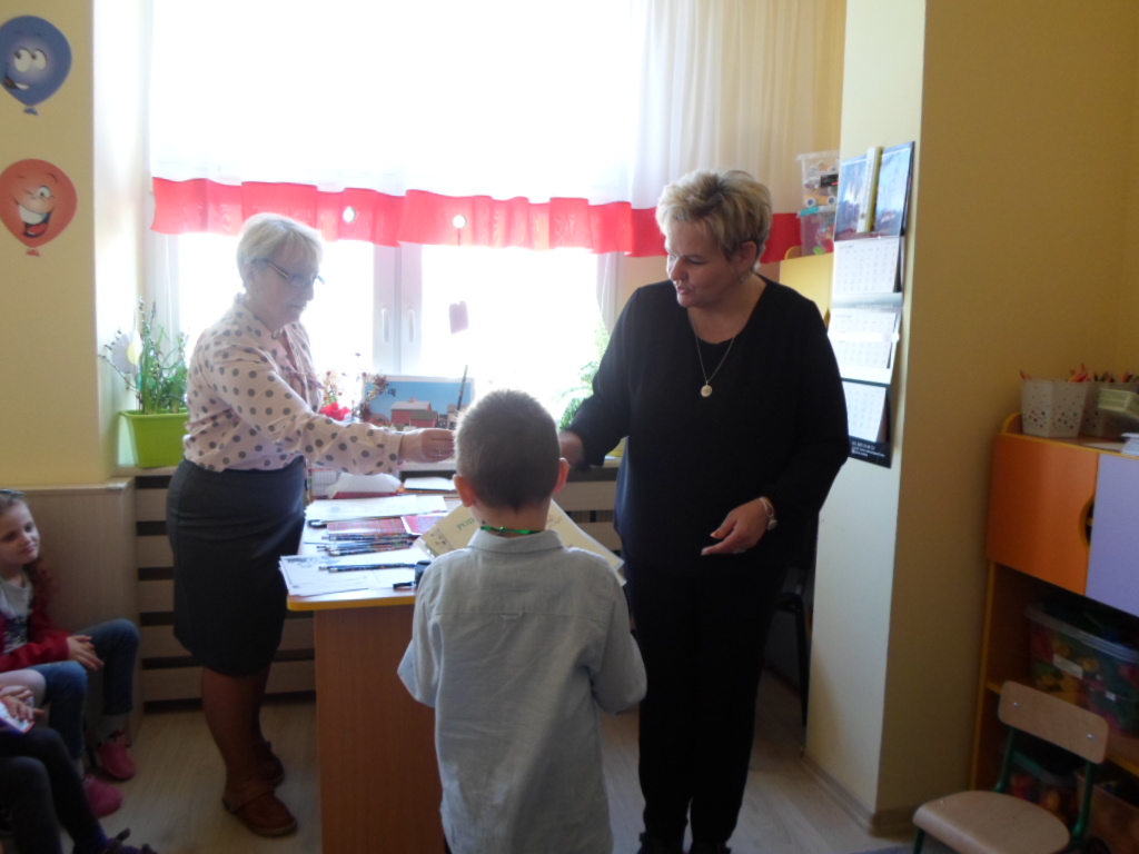 Wszystkie dzieci otrzymały plakietki, dyplomy i ołówki za uczestnictwo,