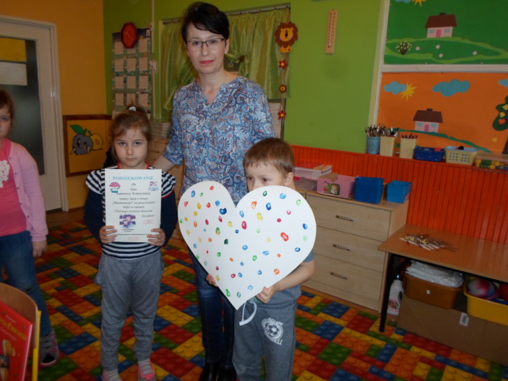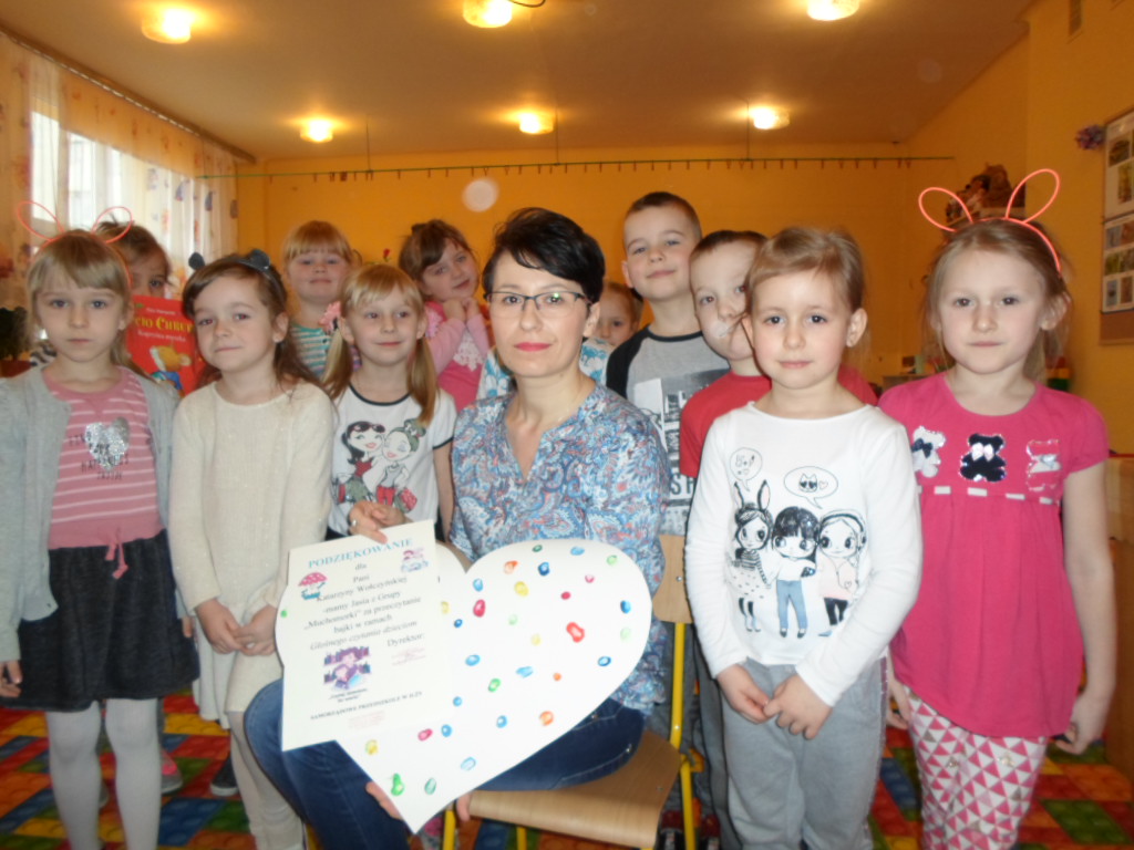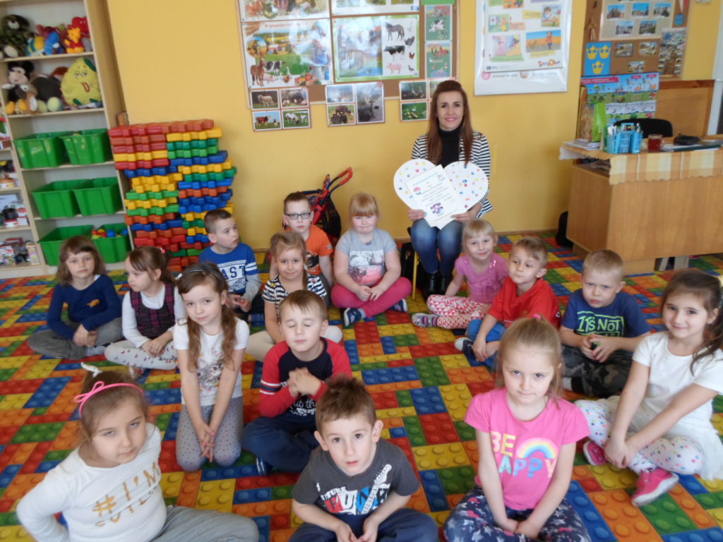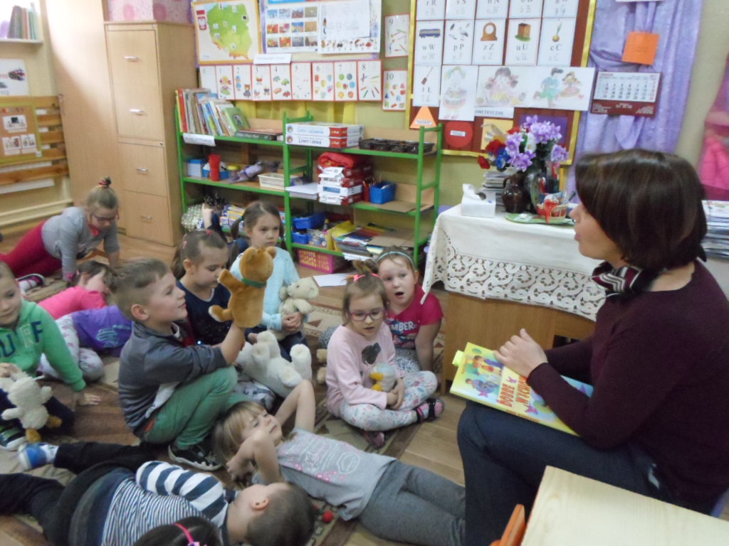 W ramach współpracy z rodzicami i Ogólnopolskiej Akcji "Cała Polska czyta dzieciom" w naszym przedszkolu rodzice z grupy V "Muchomorki" i IX "Słoneczka" czytają dzieciom utwory pouczające i zawierające treści wychowawcze i umoralniające. Przedszkolaki wskazują morał, wyciągają wnioski, dzięki czemu lepiej wszystko zapamiętają i wdrożą w swoje zachowanie. Dzieci wręczają gościom "Podziękowanie" i własnoręcznie wykonane upominki, śpiewają piosenkę. Bardzo dziękujemy wszystkim odważnym mamom za merytoryczne przygotowanie utworów i czas poświęcony naszym milusińskim.