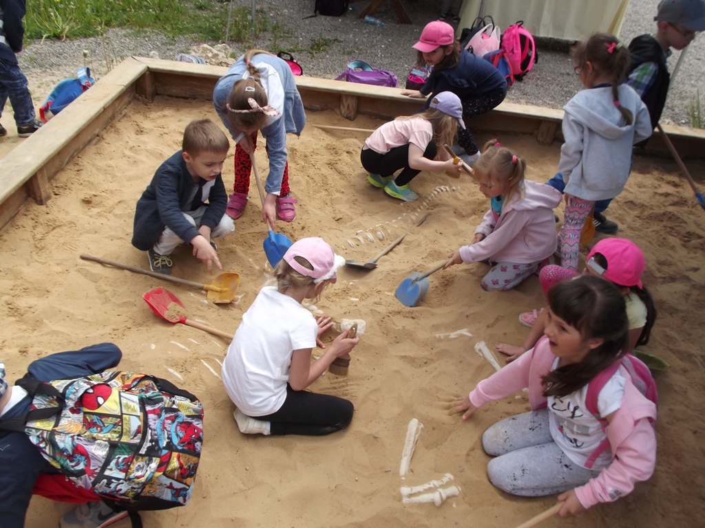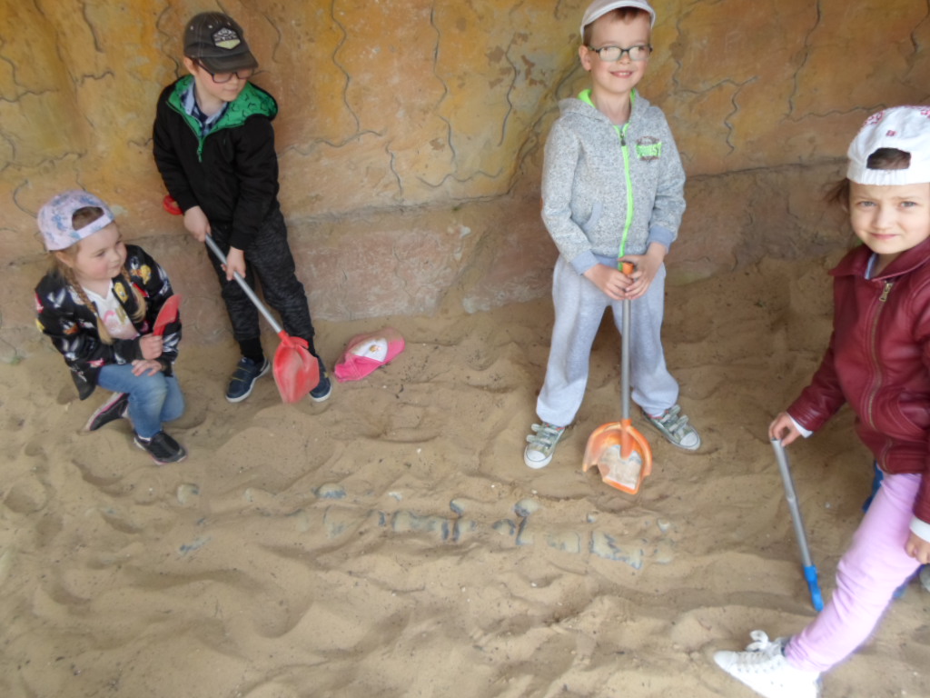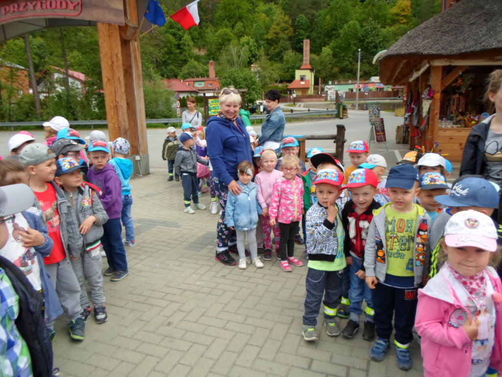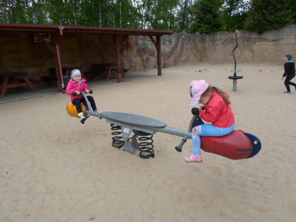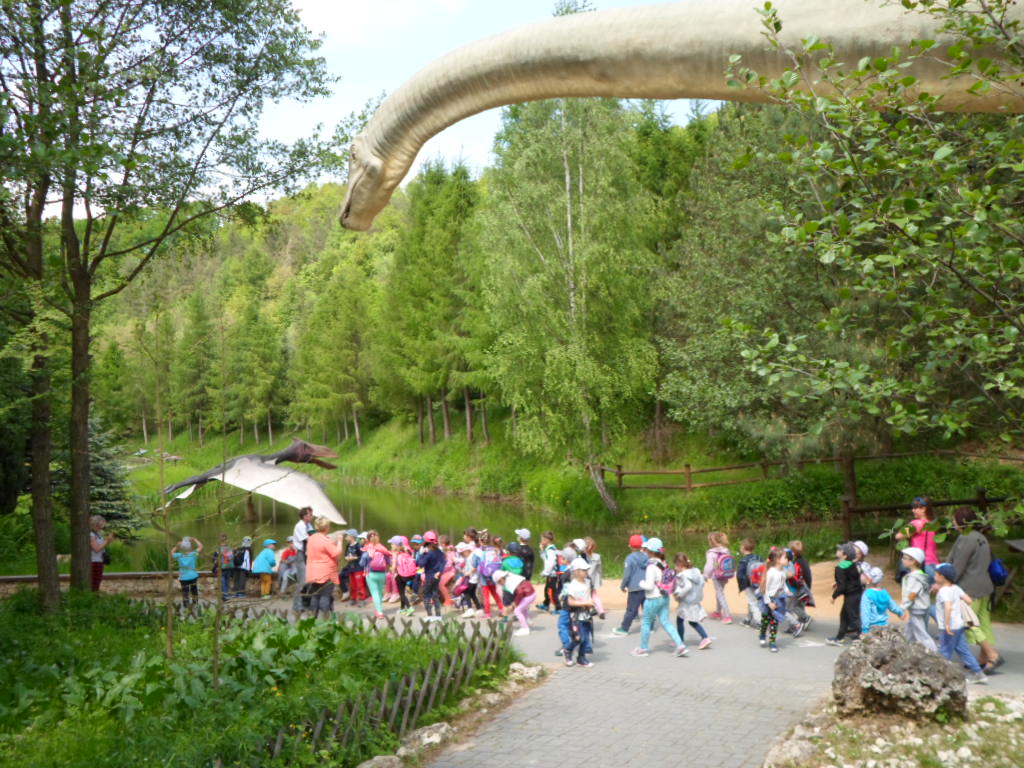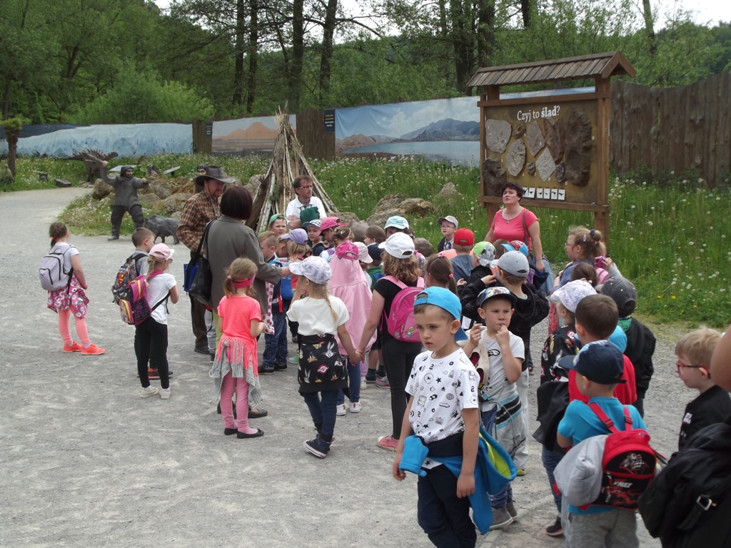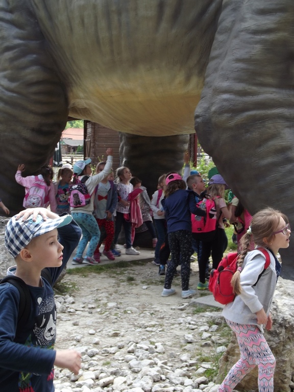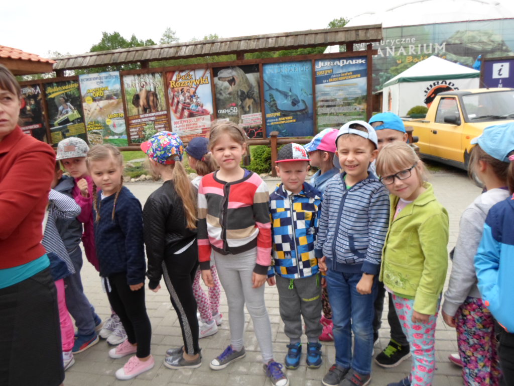 22 maja przedszkolaki ze wszystkich grup wraz z paniami opiekunkami i panią dyrektor zwiedziły Jura Park w Bałtowie.Pogoda była bardzo sprzyjająca wędrówkom śladami dinozaurów. Atrakcją dla dzieci było spędzenie czasu na placu zabaw oraz zwiedzanie parku z przewodnikiem i oglądanie dinozaurów naturalnej wielkości, m. in. T-Rexa, Allozaura, Triceratopsa. W Gondwanie- placu zabaw kreatywnych przedszkolaki mogły odkopać szkielet dinozaura oraz oglądać różne skamieliny. W Muzeum Jurajskim dzieci podziwiały zęby, kręgi i tropy dinozaurów. Wycieczka była dużym przedsięwzięciem, wszystko wypadło pomyślnie. Należy podkreślić, że nasi wychowankowie sprawdzili się świetnie w roli wycieczkowiczów, a 3 i 4 latki dzielnie zniosły długą wędrówkę i rozłąkę z rodzicami. Było super !!