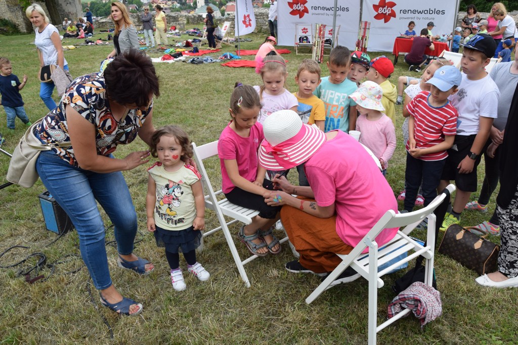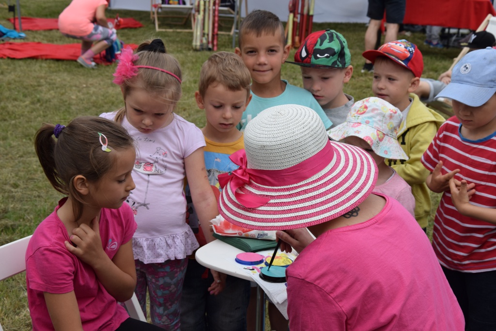 Dzieci mogły skorzystać z malowania buziek lub ozdabiania ciała kolorową kredą. Miały także możliwość obejrzenia konkursu na najwyżej latający latawiec.