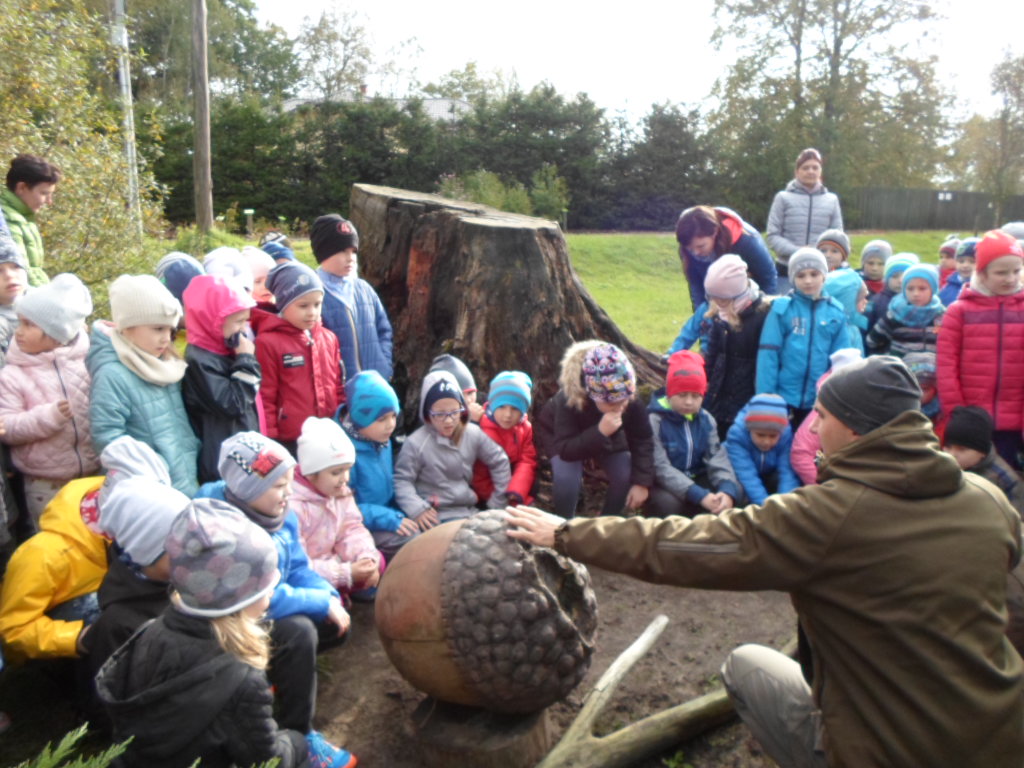 W dniach 04 i 19 października przedszkolaki uczestniczyły w wycieczce do Nadleśnictwa Marcule. Grupy szesciolatków wyruszyły w podróż kolejką wąskotorową a dzieci młodsze autokarem. Podczas spaceru po arboretum przedszkolaki zobaczyły najciekawsze okazy przyrodnicze z kolekcja roślin górskich, wspaniale bawiły się wśród kolorowych liści. Wielkim zainteresowaniem cieszyło sie mini zoo, a szczególnie prezentacja wspaniałego poroża przez daniela. Uwieńczeniem wycieczki była bajka o Dziku Ryjo oraz pyszny poczęstunek. Dzieci serdecznie dziękowały pracownikom nadleśnictwa za przyjemnie spędzony czas oraz świetną zabawę.