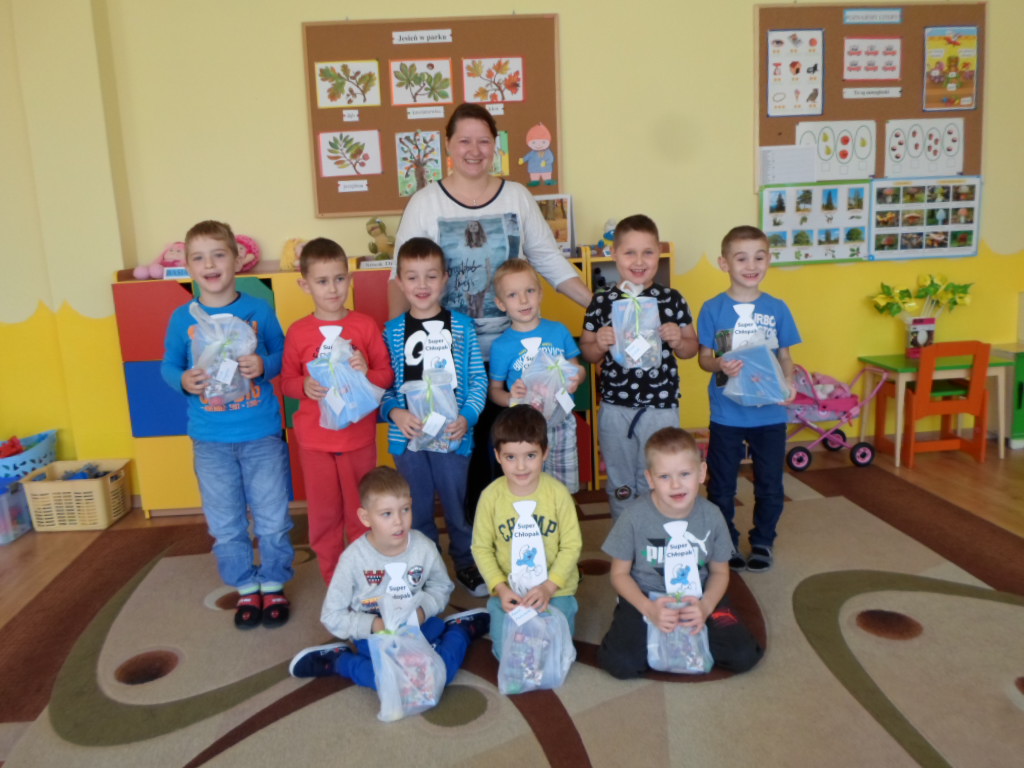 Miłą zabawę i życzenia zakończyliśmy wręczeniem upominków dla naszyh małych chłopców. Oczywiście rodzice nie zapominieli także o dziewczynkach. Wszystkim było bardzo wesoło tego dnia.