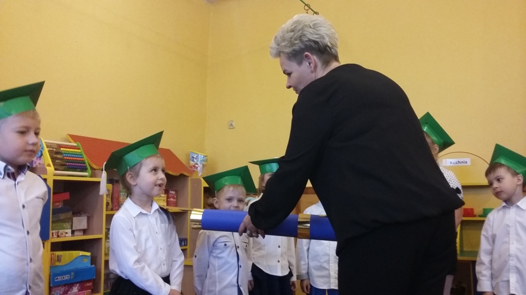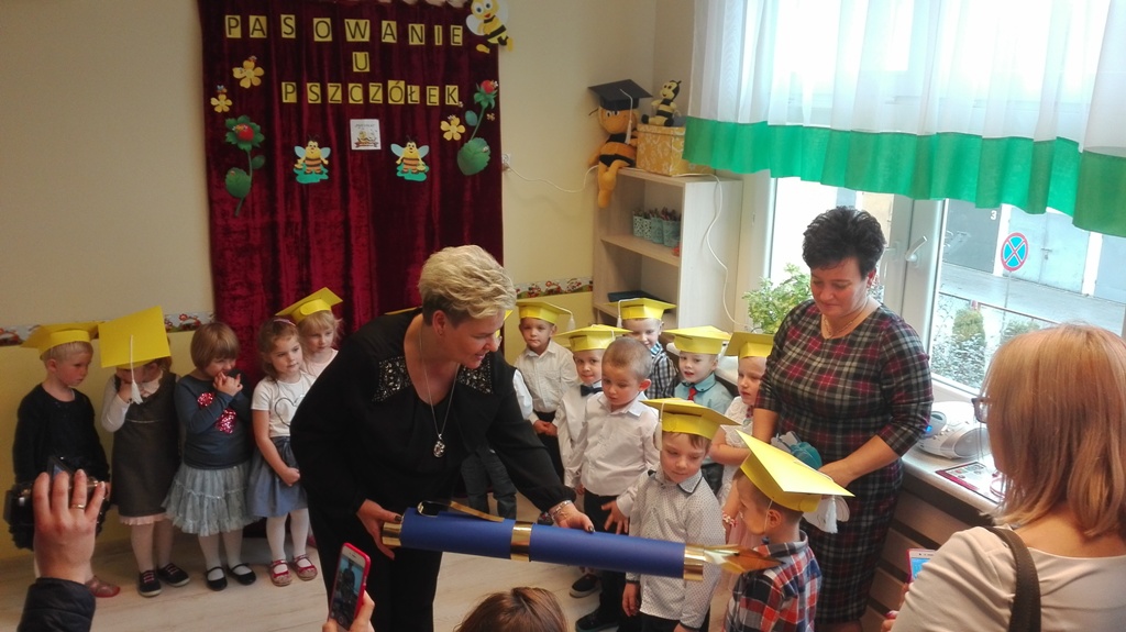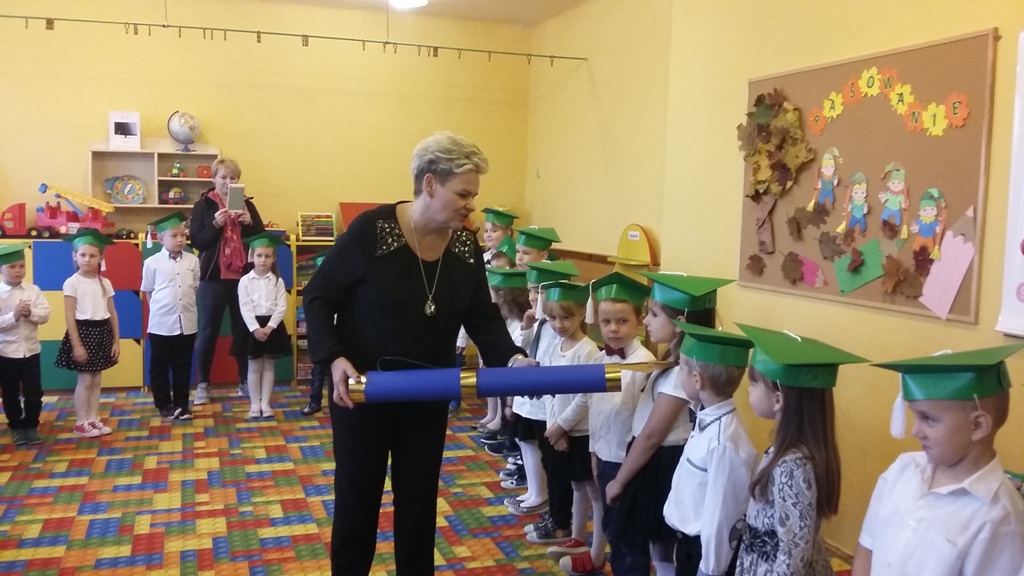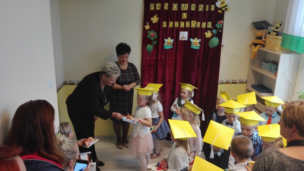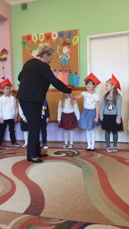W dniu 27.10.2017 r. w Samorządowym Przedszkolu odbyło się „Pasowanie na przedszkolaka”. Był to wyjątkowy dzień i niezwykłe przeżycia dla dzieci. Przedszkolaki po raz po raz pierwszy w tym roku wystąpiły przed swoimi rodzicami. Dzieci złożyły ślubowanie, po którym pani dyrektor dokonała pasowania dotykając każde dziecko "Magicznym piórem" oraz wręczyła dyplom okolicznościowy i drobny upominek.