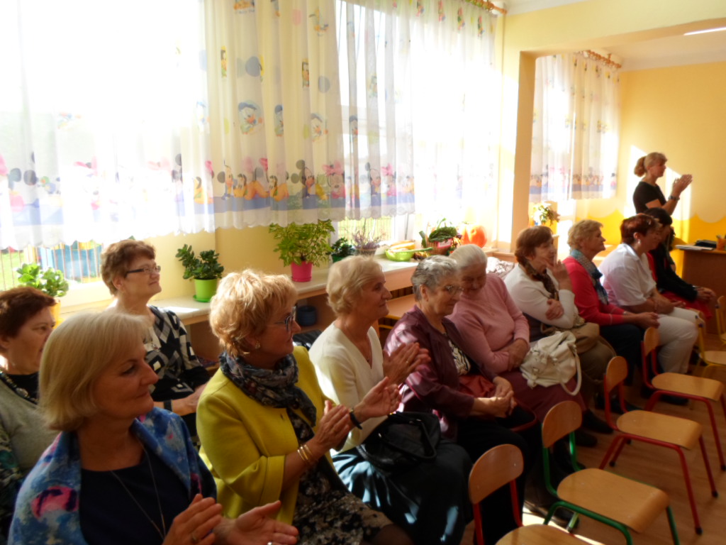Dnia 13.10 obchodziliśmy w naszym Przedszkolu Dzień Nauczyciela. Najstarsze grupy wraz z panią Grażyną Wiktorowską i Danutą Dryjańską przedstawiły przygotowany montaż słowno-muzyczny dla emerytowanych pracowników przedszkola a następnie wręczyły wszystkim upominki - Sowy.