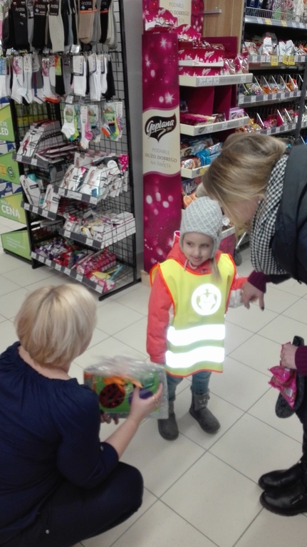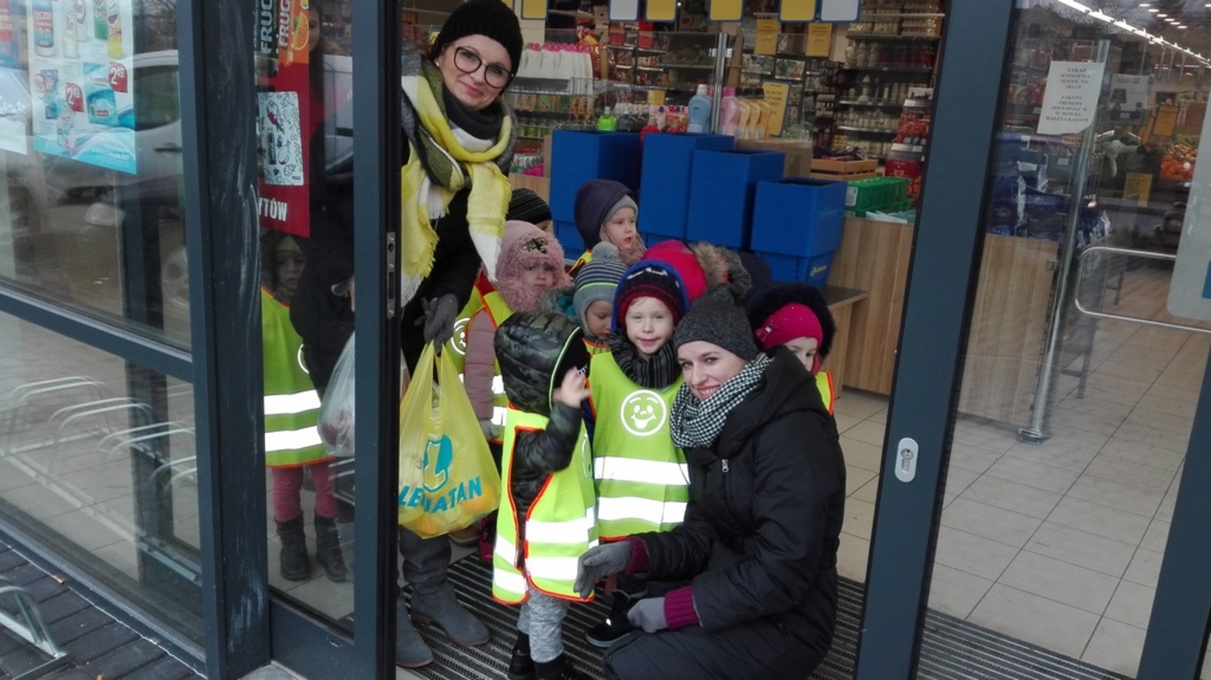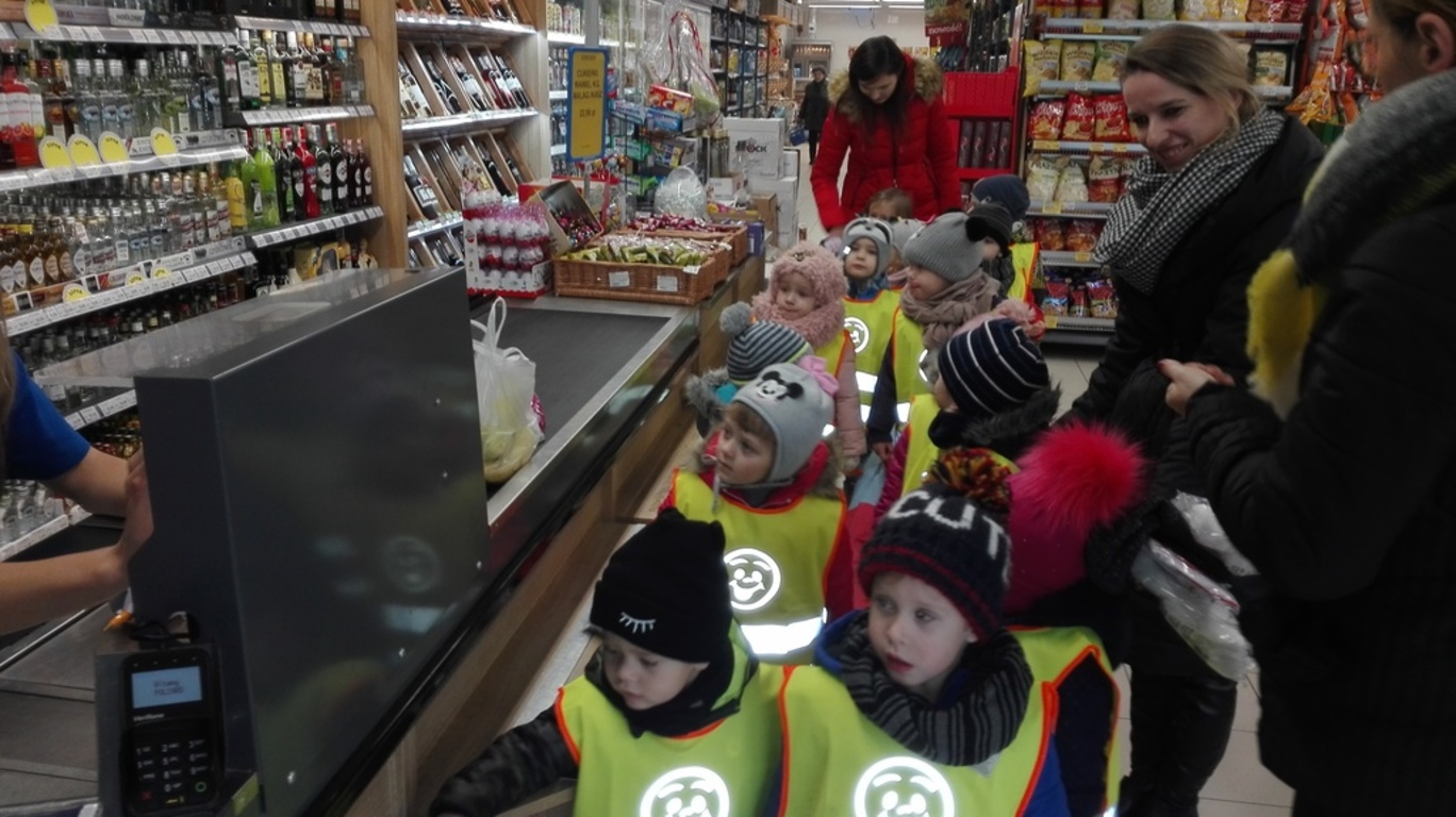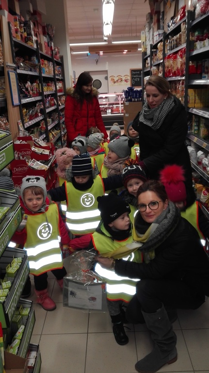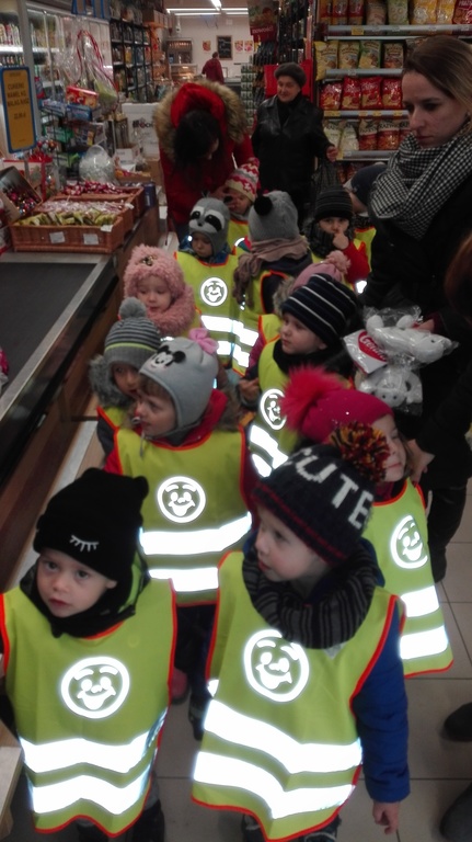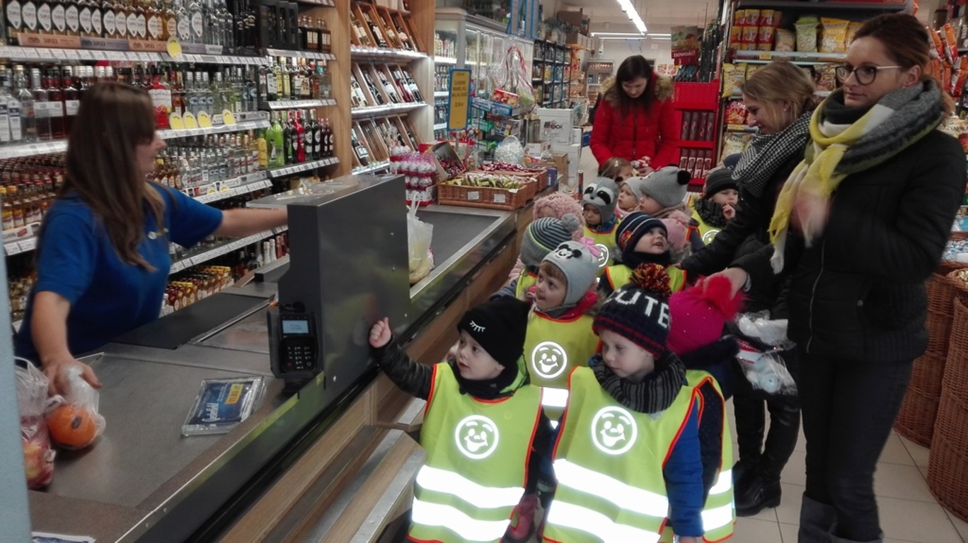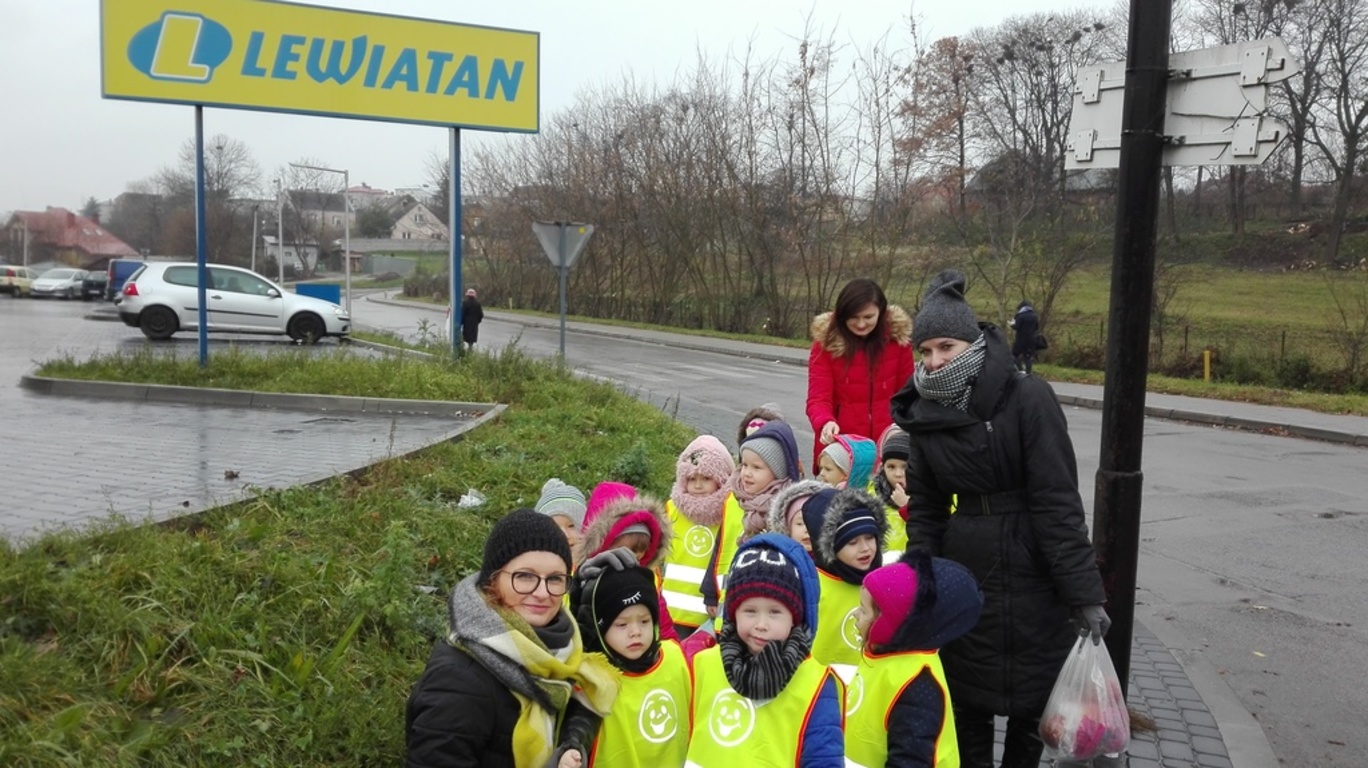 22.11.2017r. grupy "Jagódki" i "Biedronki" wybrały się do pobliskiego supermarketu " Lewiatan". Dzieci zapoznały się z wyglądem budynku, rozłożeniem towaru. Z uwagą przyglądały się gablotą i słuchały pogadanki pań. Wspólnie zakupiliśmy owoce, które zjedliśmy w "Dniu owocowym".