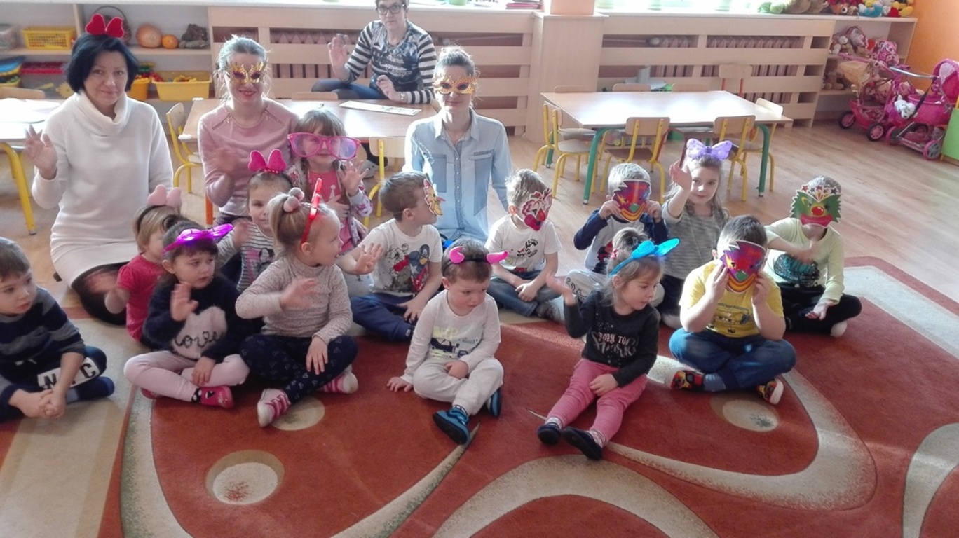 Oprócz tematycznych zajęć prowadzonych w przedszkolu przez panie, dzieci miały możliwość obejrzenia w Domu Kultury przedstawienia