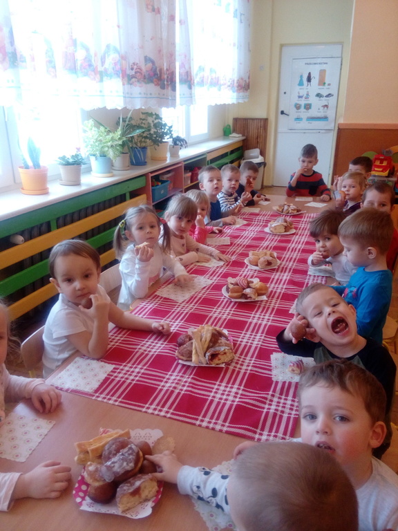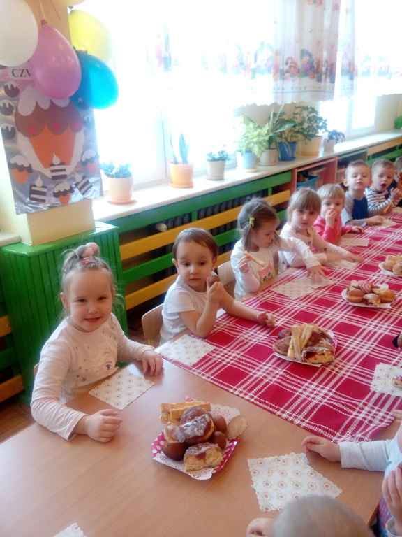 Maluszki wraz ze swoimi paniami bardzo uroczyście i słodko swiętowały Tłusty Czwartek w przedszkolu.