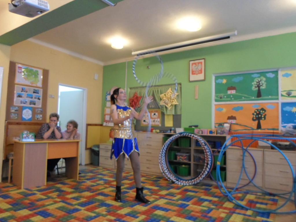 Nasze Przedszkole odwiedził cyrk. Wszystkie grupy przedszkolne z wielkim zaciekawieniem śledziły występ cyrkowców. Program artystyczny przedstawiał: żonglerkę, akrobację, iluzję oraz tresurę zwierząt. Artyści zaprosili także przedszkolaków i panie do wspólnych występów.