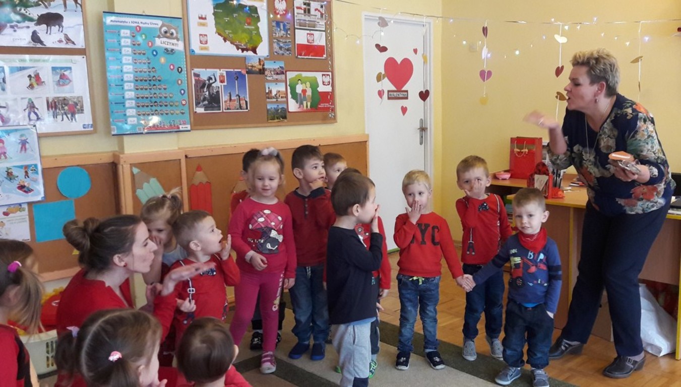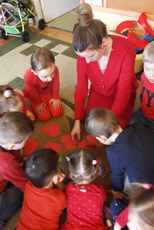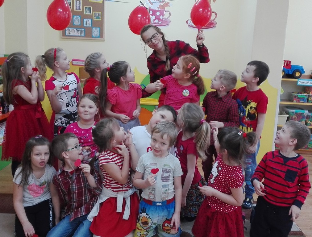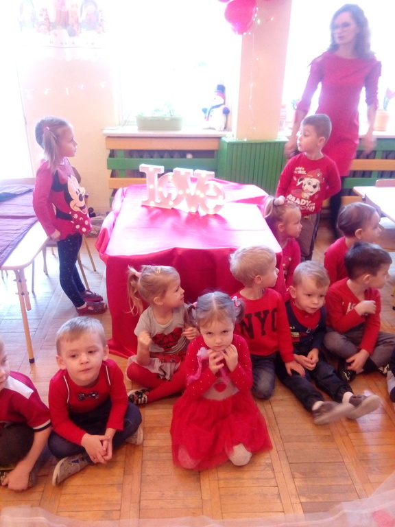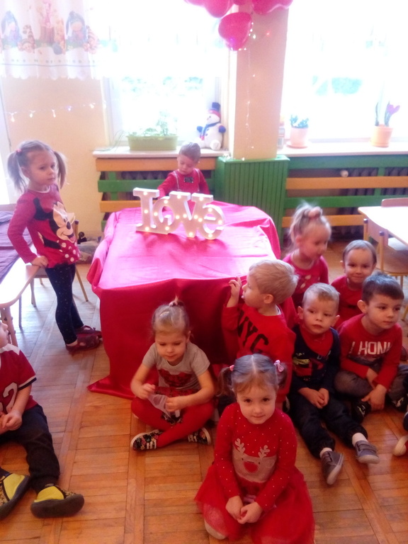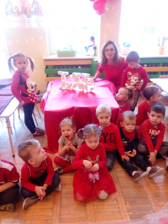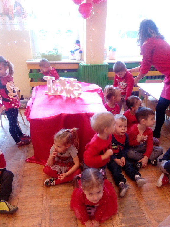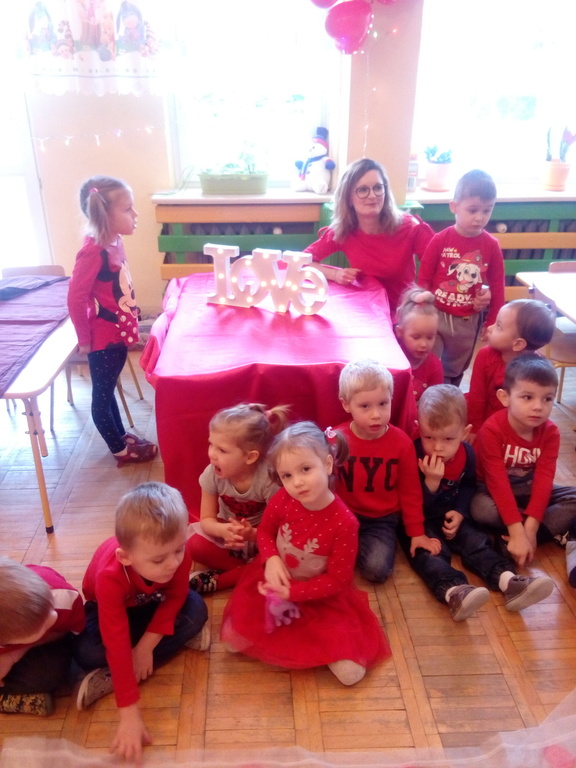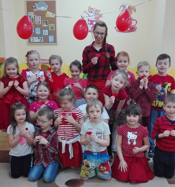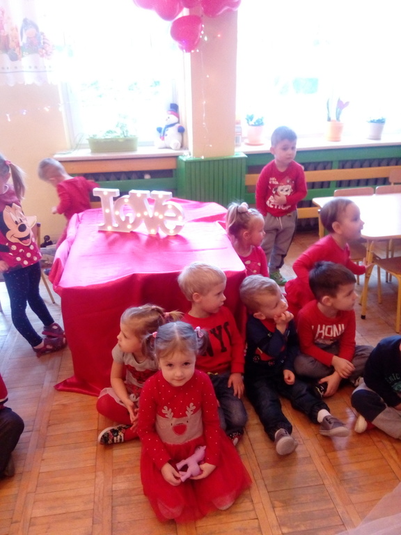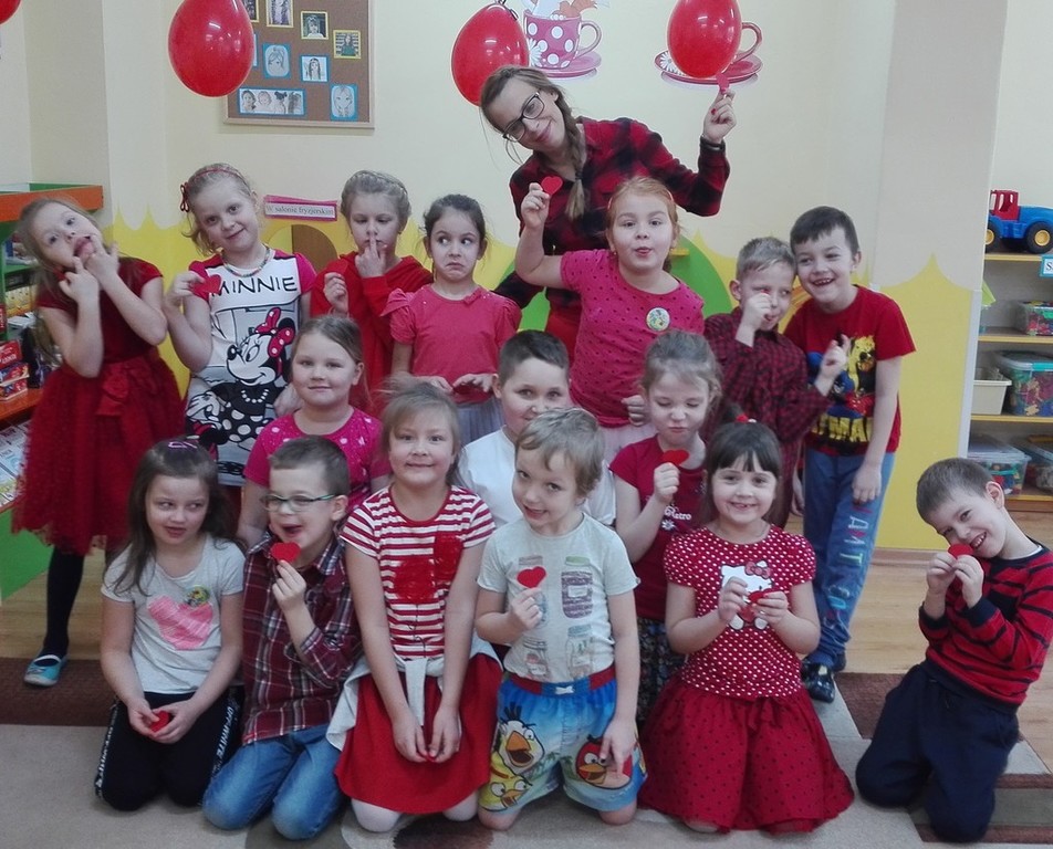 14 lutego 2018 roku był dla dzieci z naszego przedszkola prawdziwym, czerwonym dniem miłości i przyjaźni. W ubiorze dzieci i Pań dominował kolor czerwony co bardziej podkreśliło charakter tego dnia. Przedszkolaki brały udział w różnych zabawach związanych z walentynkami: szukały drugiej połówki serca, rozwiązywały zagadki dotyczące bohaterów bajek, bawiły się serduszkowymi balonami, tańczyły przy serduszkowych piosenkach. Nie zabrakło oczywiście sercowych kolorowanek, spontanicznych emocji oraz pozytywnych uczuć.