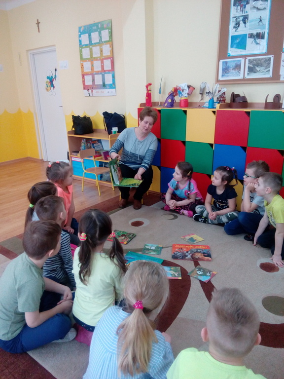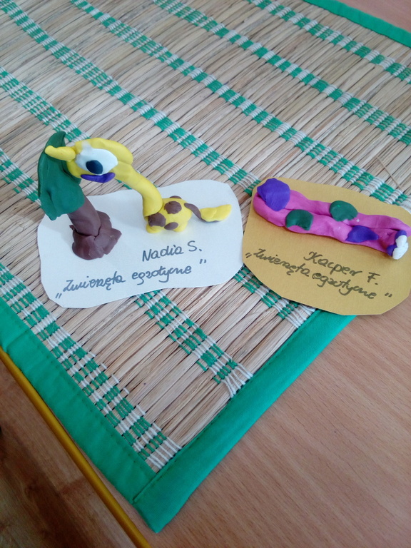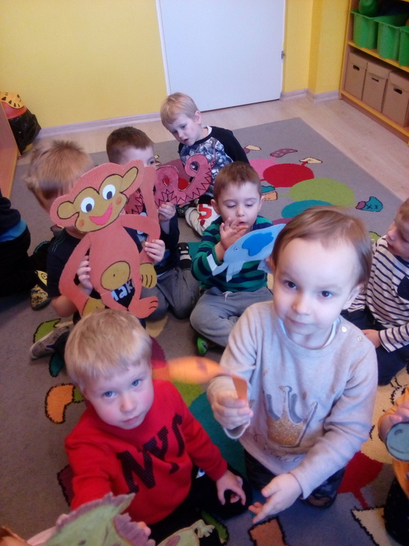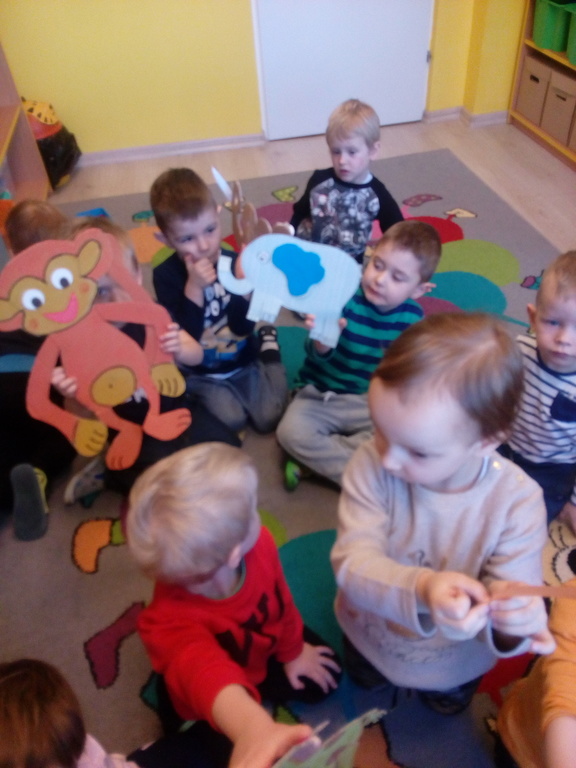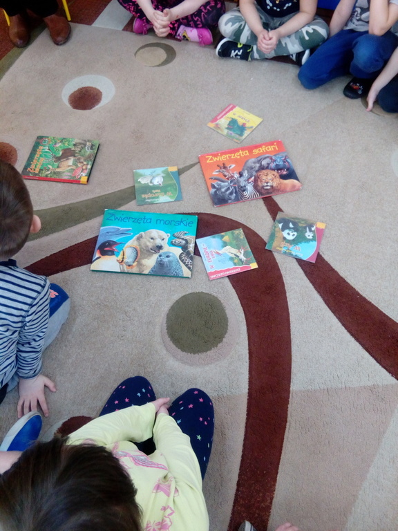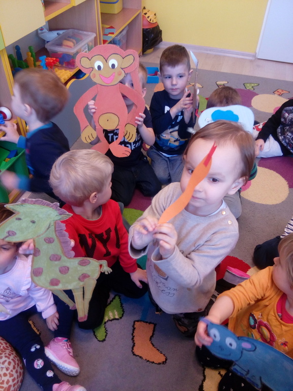 Dzieci ze starszych grup miały możliwość wysłuchania ciekawostek o zwierzętach egzotycznych, chętnie rozwiązywały zagadki dotyczące zwierząt, a następnie pokolorowały wybrany rysunek.
