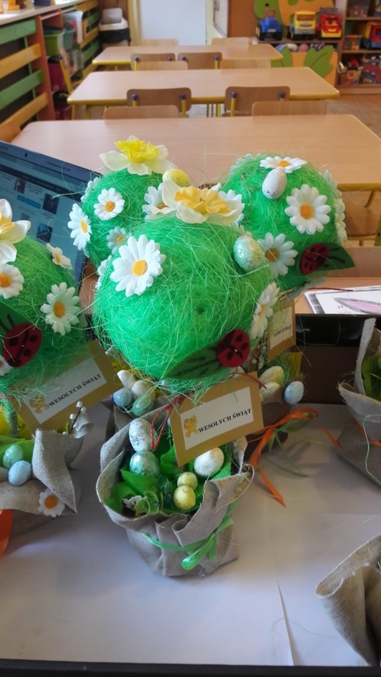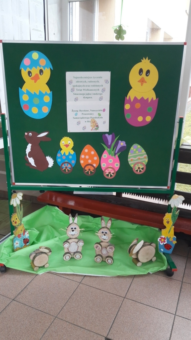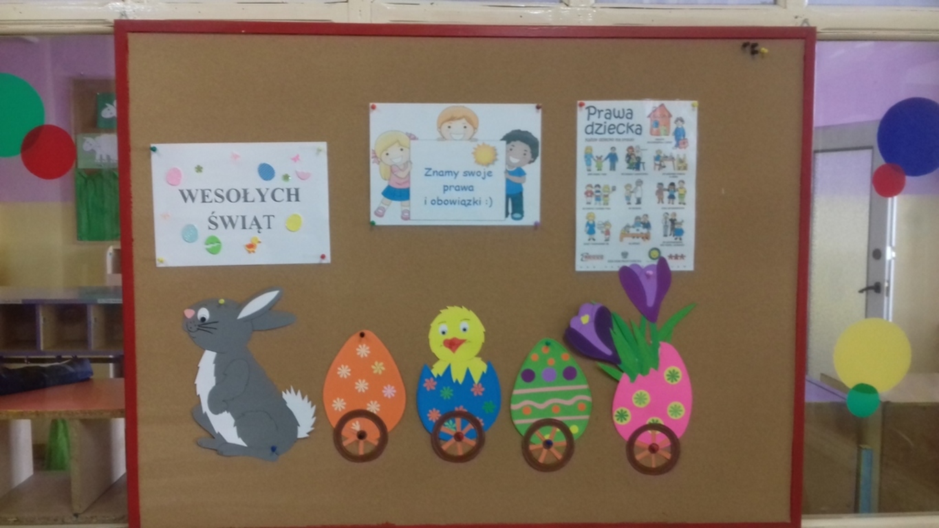 Jak co roku w tygodniu poprzedzającym wielkanoc tematyka zajęć w przedszkolu była związana z nadchodzącymi świętami. Dzieci wysłuchały pogadanek dotyczących zwyczajów i obrzędów świątecznych. Każda grupa wykonała pracę plastyczną, dzięki czemu powstały wspaniałe wielkanocne wystawki. Panie zajmujące się dekoracją postarały się by w całym przedszkolu nastał świąteczny i wiosenny nastrój.