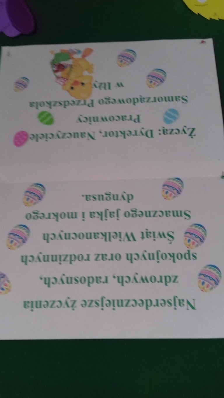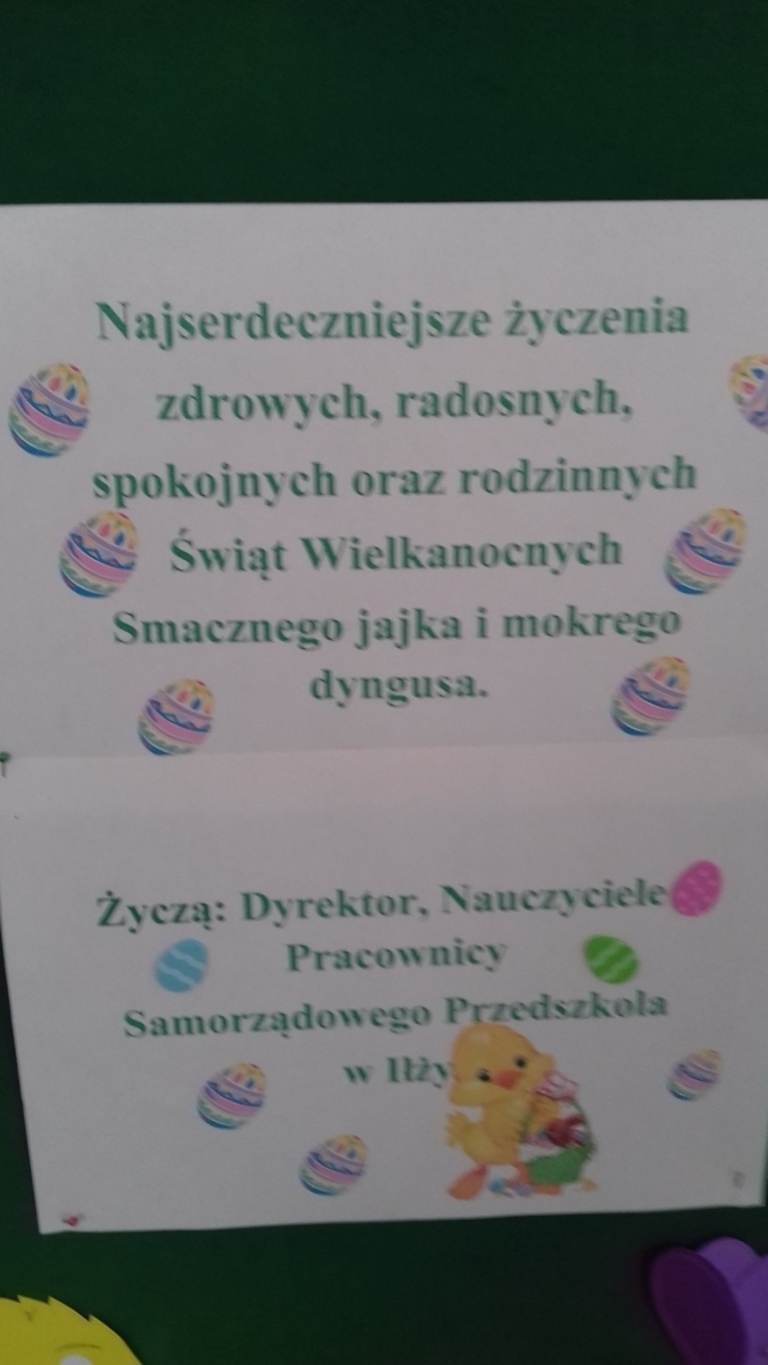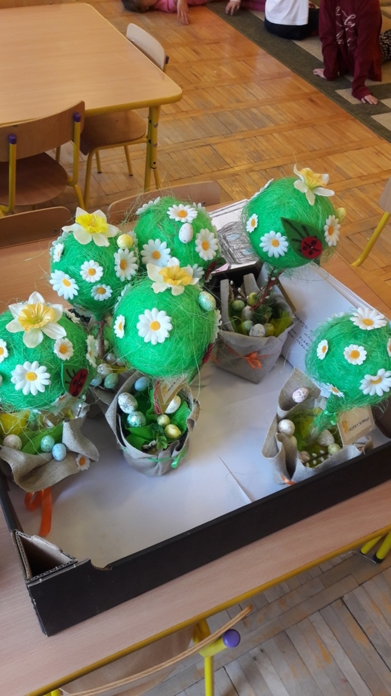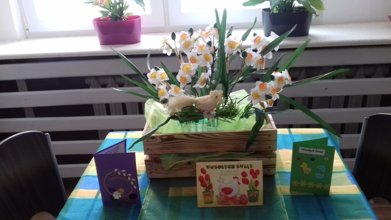 Jak co roku w tygodniu poprzedzającym wielkanoc tematyka zajęć w przedszkolu była związana z nadchodzącymi świętami. Dzieci wysłuchały pogadanek dotyczących zwyczajów i obrzędów świątecznych. Każda grupa wykonała pracę plastyczną, dzięki czemu powstały wspaniałe wielkanocne wystawki. Panie zajmujące się dekoracją postarały się by w całym przedszkolu nastał świąteczny i wiosenny nastrój.