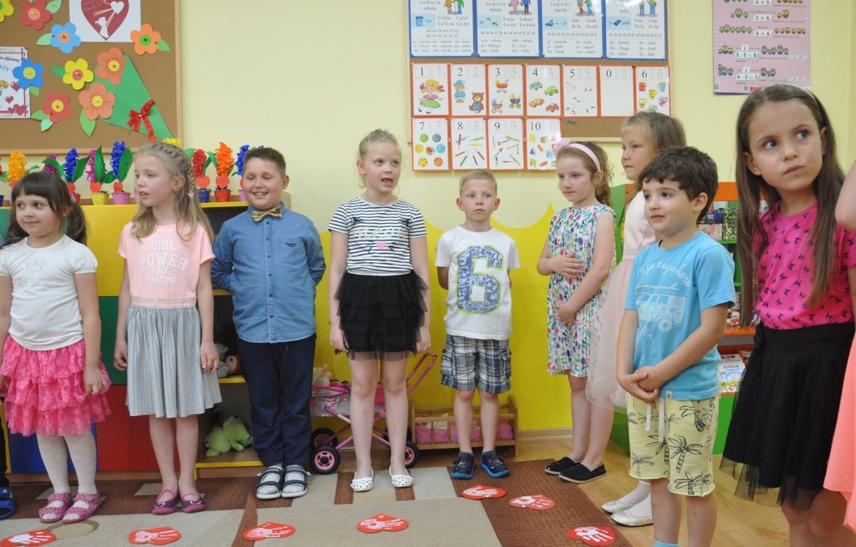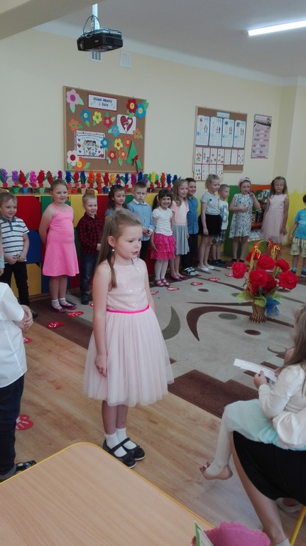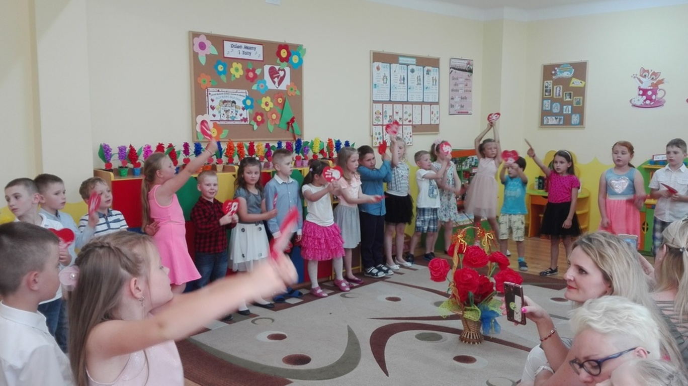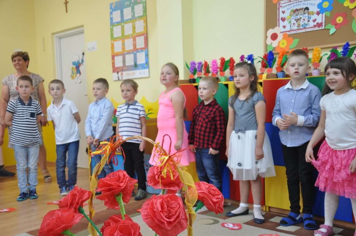Jak co roku dzieci w naszym przedszkolu świętowaliśmy Dzień Mamy i Taty. 24 i 25 maja 2018r. dzieci z poszczególnych grup zaprosiły do przedszkola swoich rodziców. Słowem i piosenką wyraziły miłość i wdzięczność, za matczyną dobroś i cierpliwość, za serce , które tak wiele rozumie i tak wspaniałomyślnie wybacza, a także za mądrość i ojcowski autorytet. Przedszkolaki zaprezentowały swoje zdolności recytatorskie, wokalne i taneczne. Na twarzach rodziców można było zauważyć wzruszenie i dumę po wspaniałych występach ich pociech. Popisy dzieci zostały nagrodzone burzą braw. Po programie artystycznym były życzenia , całusy oraz wręczenie upominków przygotowanych przez przedszkolaków. Na zakończenie uroczystości był słodki poczęstunek dla dzieci i rodziców. Uroczystość przebiegała w miłej i rodzinnej atmosferze.