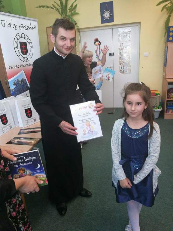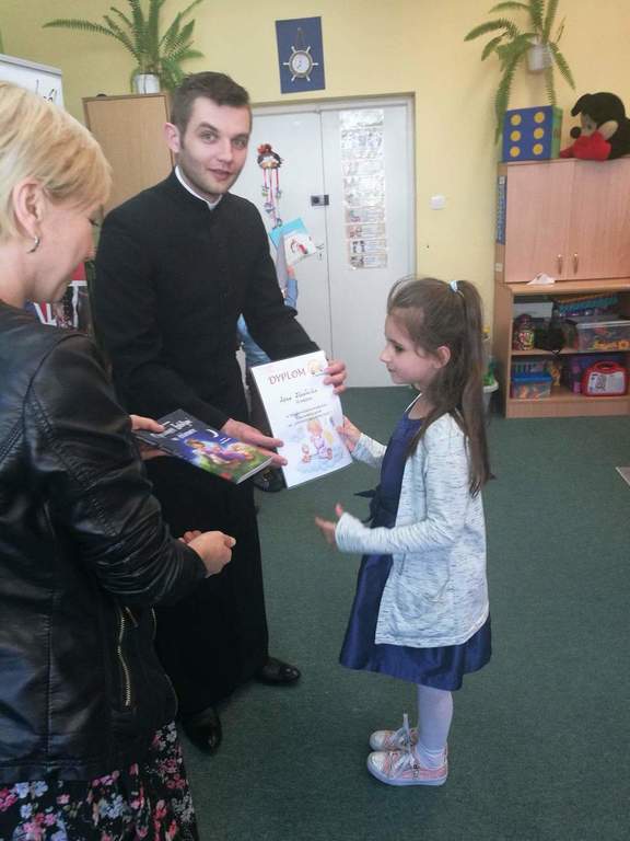 Dnia 25.05.2018r. dzieci z grupy IX "Leśne Duszki" wzięły udział w Konkursie Literackim "OPOWIEŚCI BIBLIJNE" w Skaryszewie. Nasze przedszkole reprezentowały: Natalia Macios, Lena Ziewiecka i Kornelia Jagiełła. Dziewczynki wykazały się wspaniałą znajomością przypowiesci biblijnych i zajęły II miejsce. Zostały nagrodzone pięknymi upominkami.