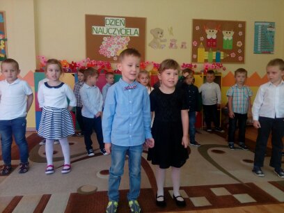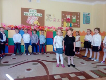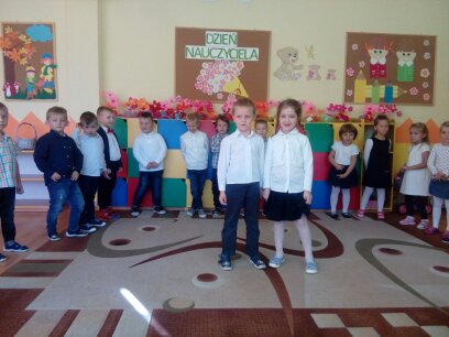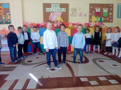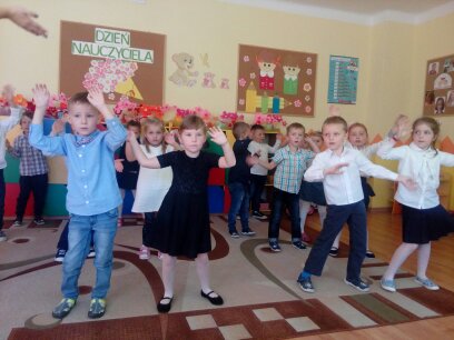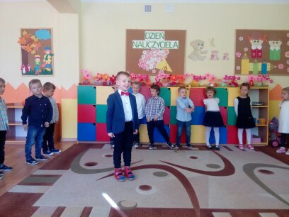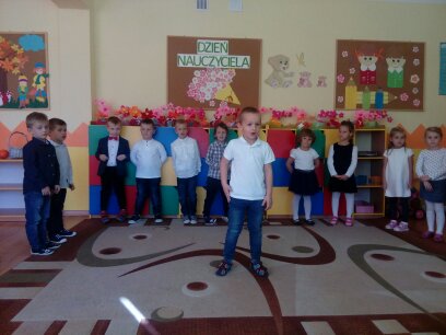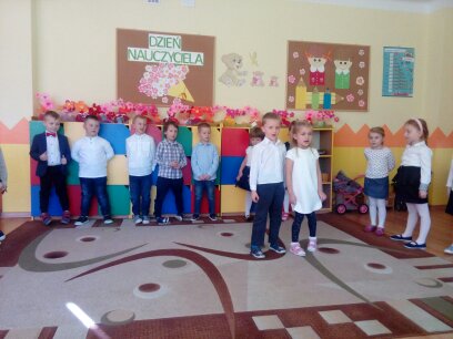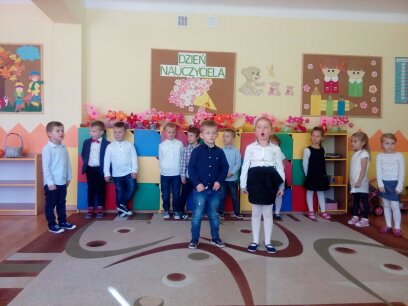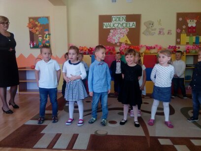 Przedszkolaki natomiast z okazji Dnia Nauczyciela wręczyły upominki- kwiatki z filcu przygotowane wraz z Panią Elą i Panią Kasią.