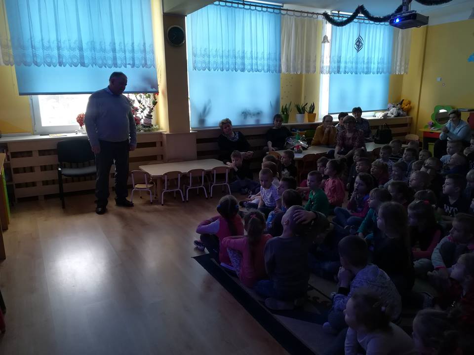 19.12. 2018 r. nasze Przedszkole odwiedził kierownik ZEORK-u, pan Zbigniew Leszczyński, który w ciekawy sposób opowiedział dzieciom, skąd bierze się prąd i przedstawił zasady bezpiecznego korzystania z urządzeń elektrycznych. Podsumowaniem była projekcja prezentacji multimedialnej na temat elektryczności.
