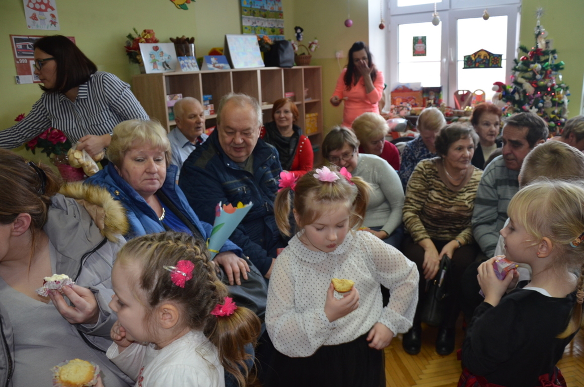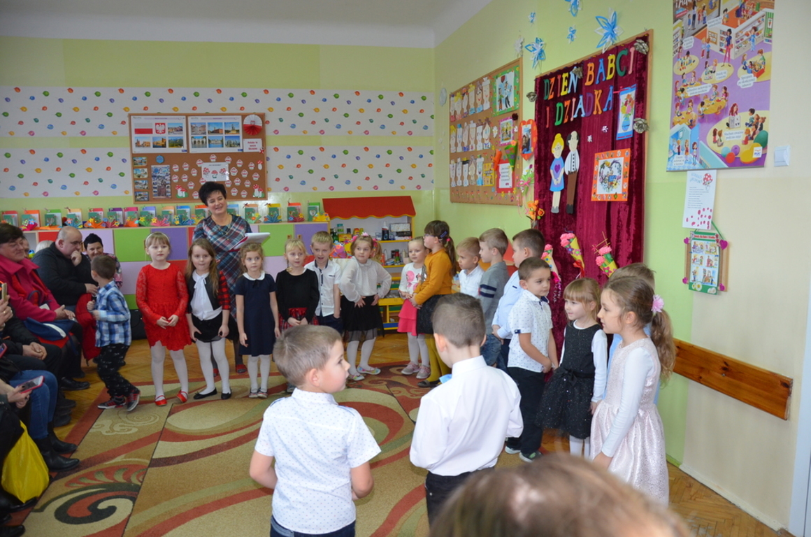 Grupy starszaków ze szkoły podstawowej: MUCHORMORKI ,LEŚNE DUSZKI, SMERFY, SŁONECZKA, STOKROTKI zaprosiły swoich ukochanych Dziadków oraz Babcie na Uroczystość grupową do swoich sal. Każda z grup zaprezentowała przygotowany przez siebie program artystyczny, który przedstawiała przybyłym Gościom pod czujnym okiem swojego wychowawcy. Wspaniałe piosenki, tańce oraz wiersze z pewnością na długo pozostaną w sercach wszystkich Babć oraz Dziadziów. Przygotowane przez dzieci upominki stanowiły najszczerszy wyraz ich ogromnej miłości i wdzięczności.