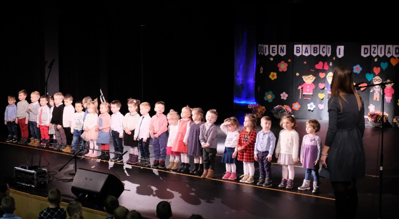 Dnia 22.01.2019r. grupy młodsze: JAGÓDKI, MOTYLKI, KRASNOLUDKI, ŻABKI, BIEDRONKI, PSZCZÓŁKI i PIRACI na scenie iłżeckiej sali widowiskowo-kinowej zaprezentowały przygotowany występ słowno-muzyczny przed Kochanymi Babciami i Dziadziusiami. Widownia wypełniła się po brzegi usmiechniętymi twarzami co dodawało wszystkim pozytywnych emocji.