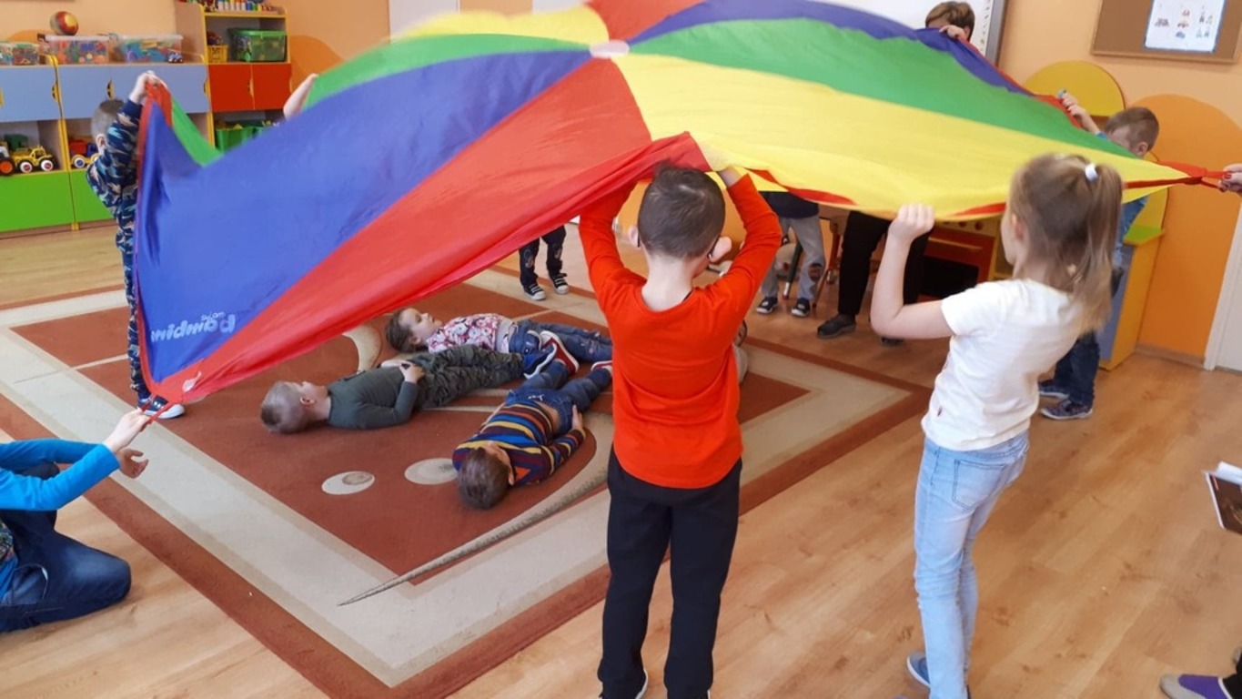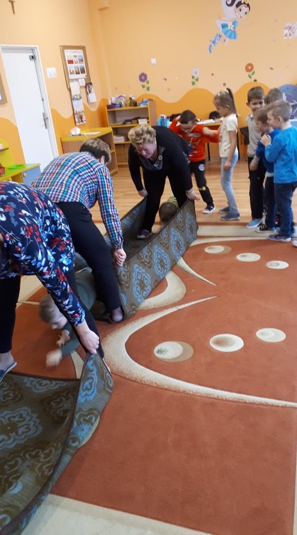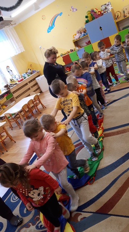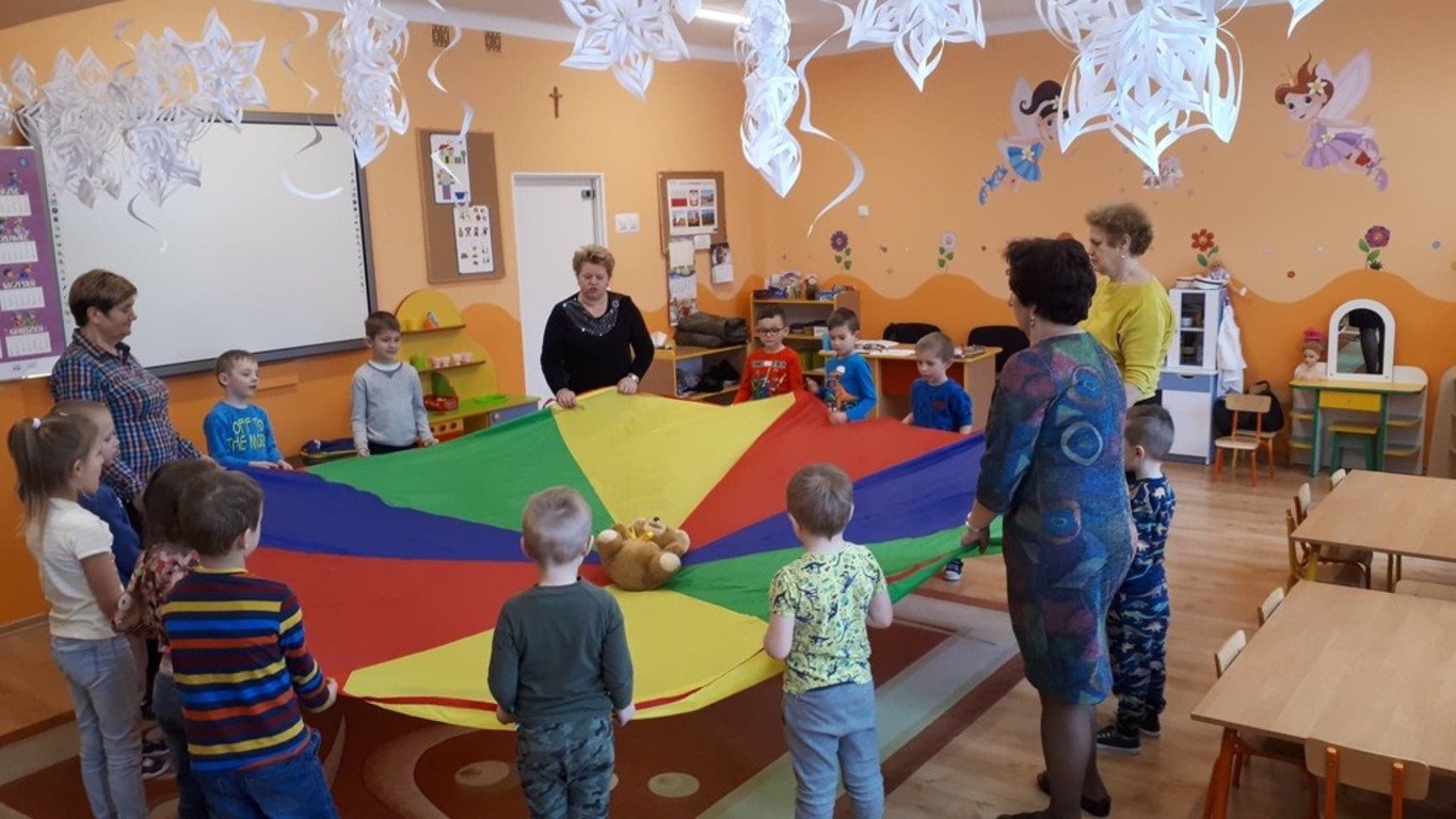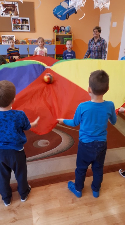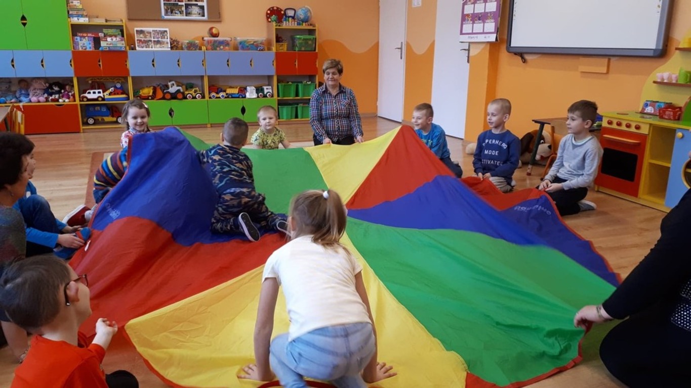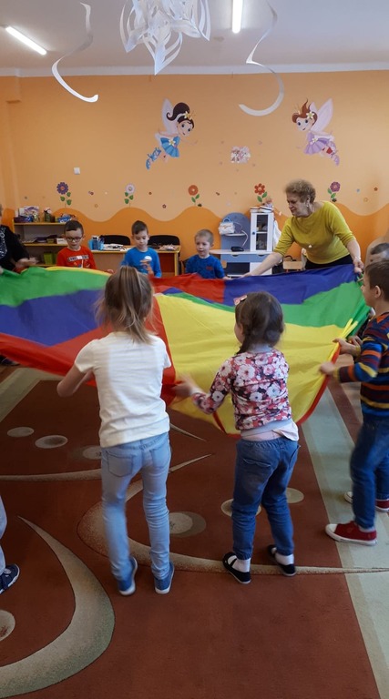 Drugi tydzień ferii rozpoczniemy zabawami z uwielbianą przez dzieci chustą animacyjną i kocem. Dzieci będą miały możliwość wykazania się sprawnością i szybkością reakcji w zabawach i ćwiczeniach ruchowych. Przy muzyce, razem ze swoimi paniami będą uczestniczyć w takich zabawach jak: "Ścieżka", "Meksykańska fala", "Rybak i ryba" itd. Wszystkich przedszkolaków zapraszamy do wspólnej zabawy i mamy nadzieję, że przygotowane atrakcje dostarczą naszym dzieciom wiele radości i niezapomnianych wrażeń.