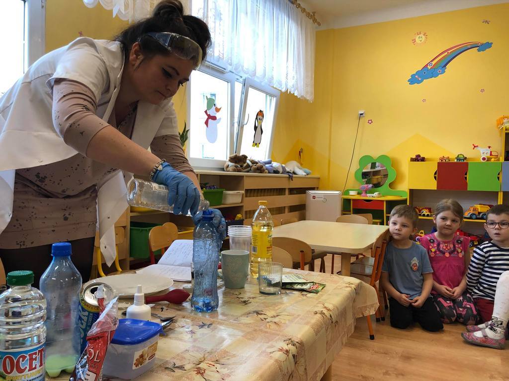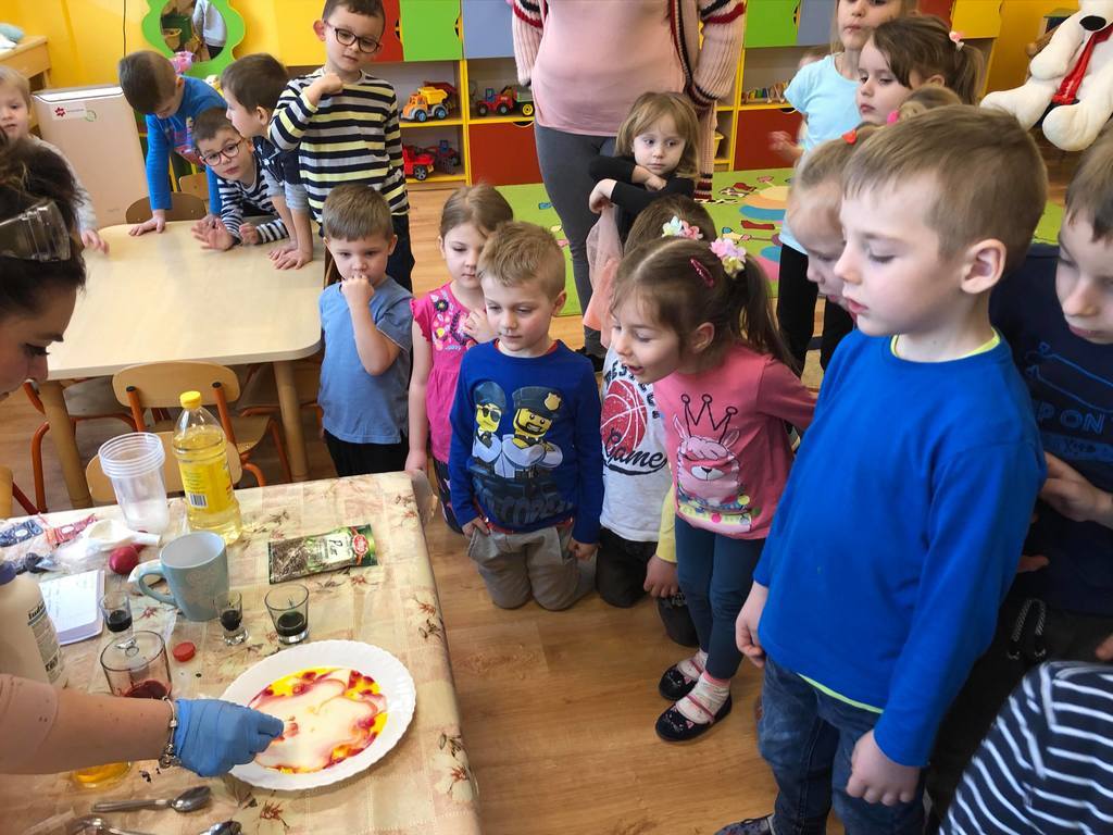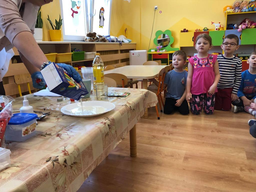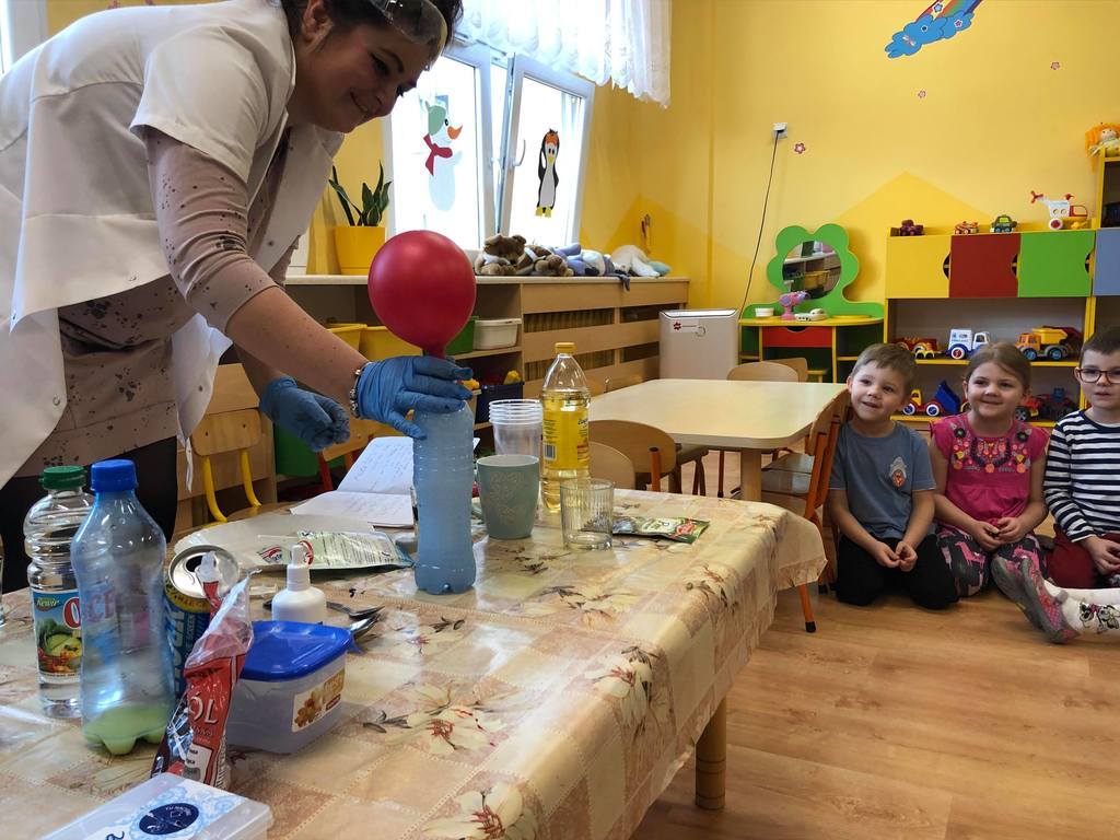 Piątek minie nam pod hasłem eksperymenty. Nasze przedszkolaki będą manipulować przedmiotami, doświadczać i eksperymentować. Dzięki temu poznają świat wartości. Mali badacze w czasie eksperymentowania będą sprawdzać m.in. które przedmioty toną, a które nie, czy plastikowa linijka przyciągnie metalową puszkę, dlaczego soda połaczona z octem tworzy "prawdziwy wulkan", a drożdże w połączeniu z cukrem i ciepłą wodą potrafią napompować balon. Dzień zakończymy zabawą z bańkami mydlanymi.