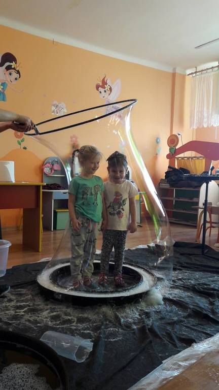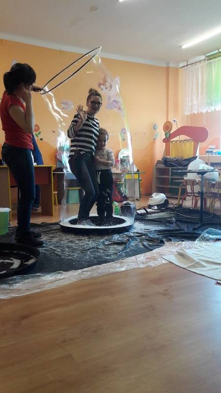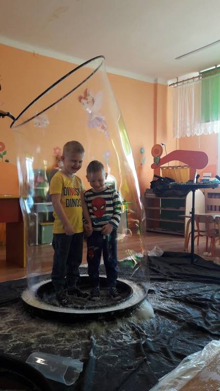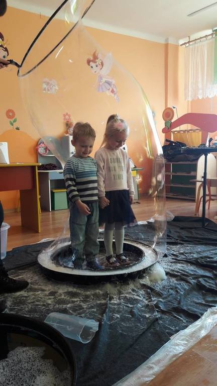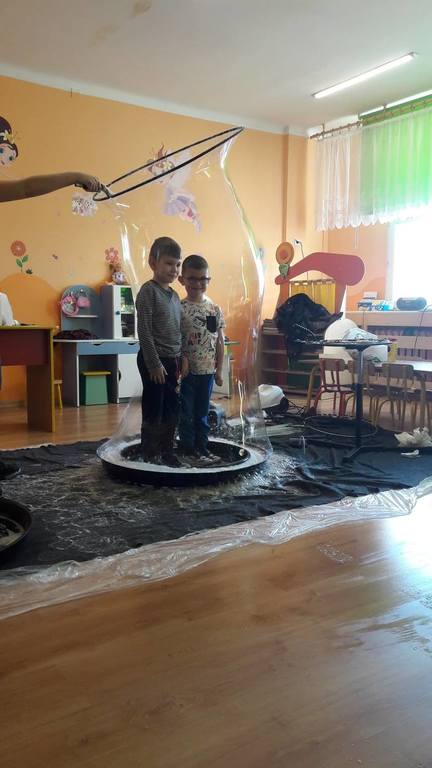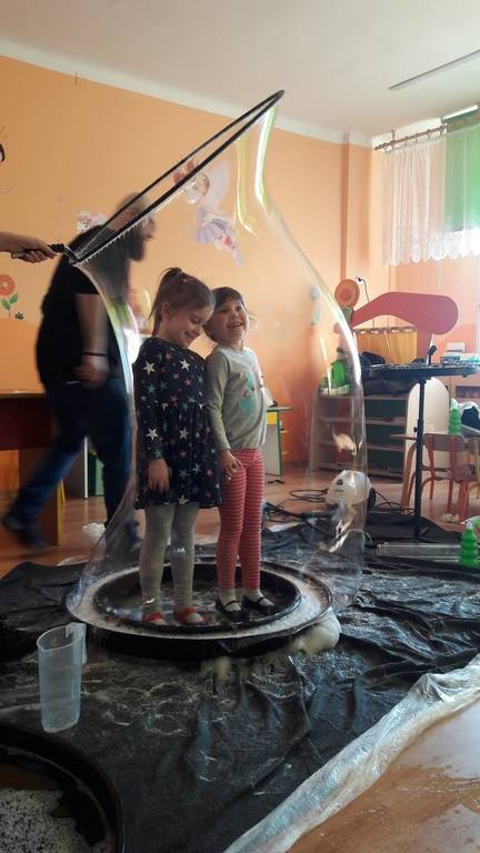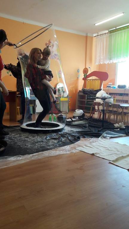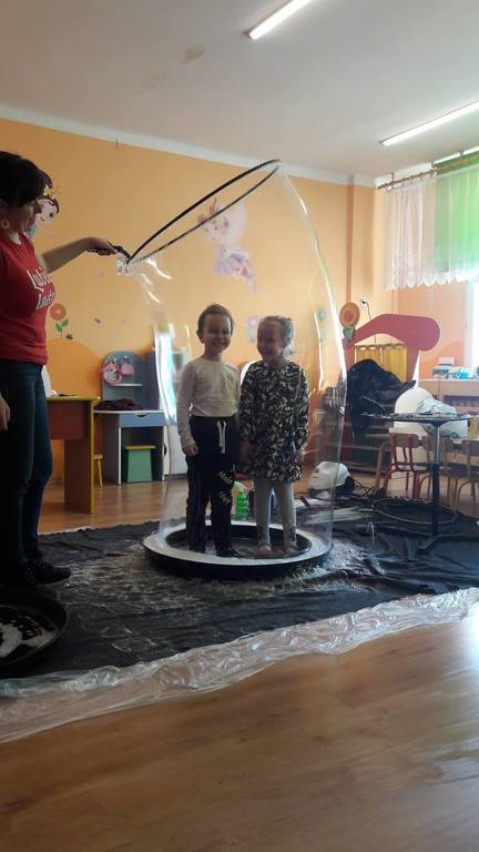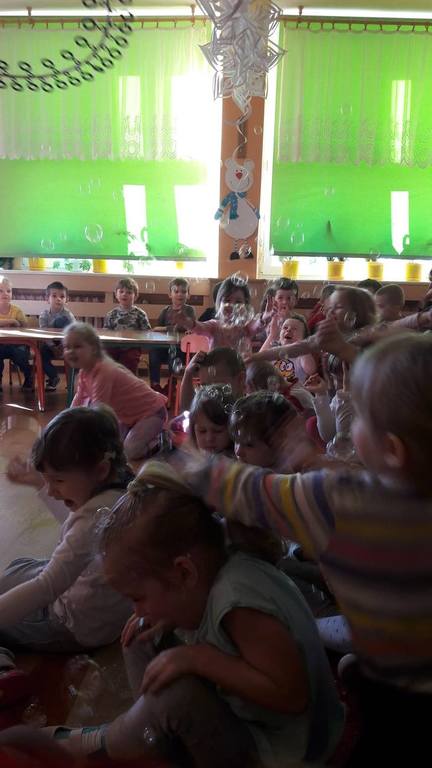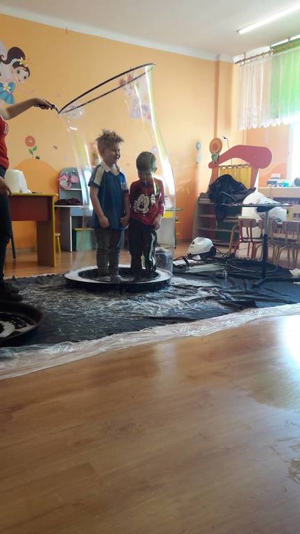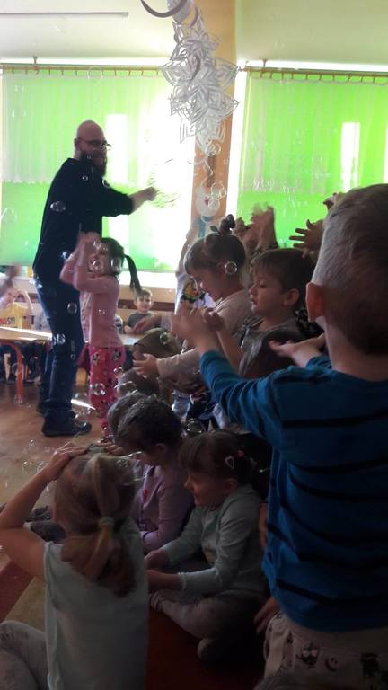 Nasze Przedszkolaki wzięły udział we wspaniałym pokazie baniek mydlanych. Artyści przyjechali do naszego Przedszkola by zaprezentować dzieciom niezwykłe przedstawienie, które przypadło do gustu wszystkim, którzy w nim uczestniczyli. Wrażenia z tego niecodziennego wydarzenia w pewien sposób mogą przedstawić zdjęcia, jednak na żywo wyglądało to zdecydowanie bajecznie.