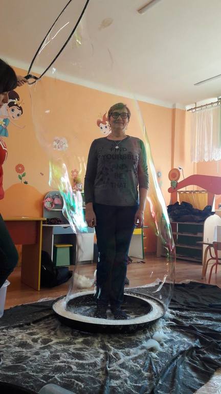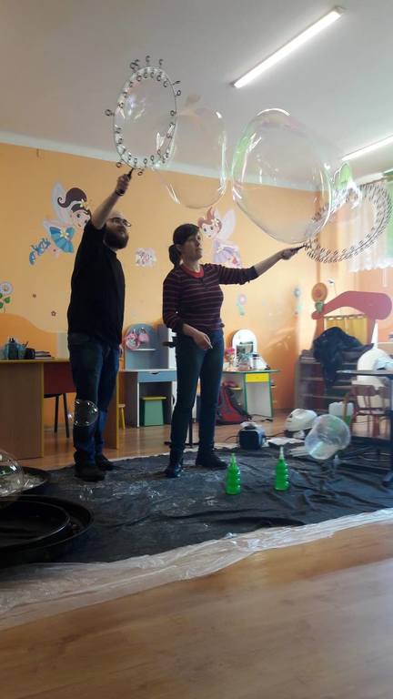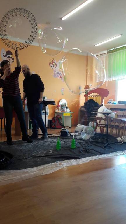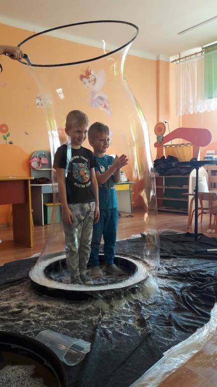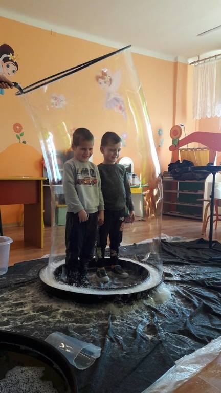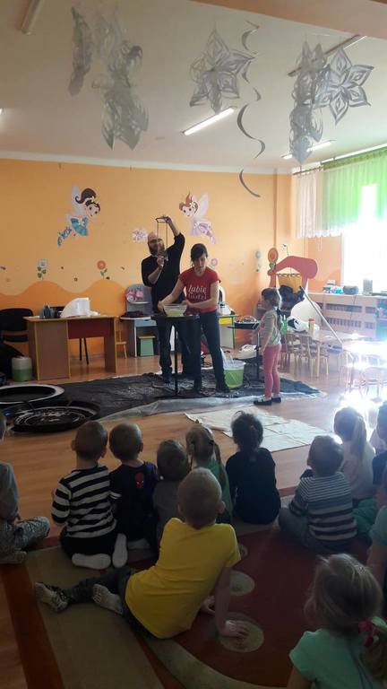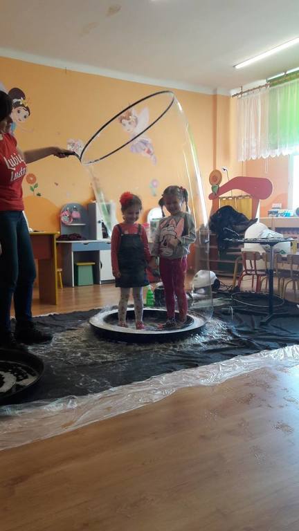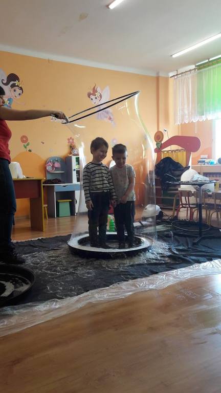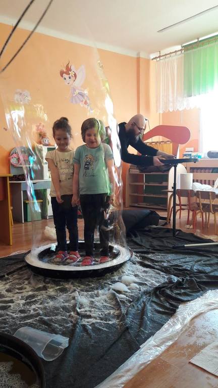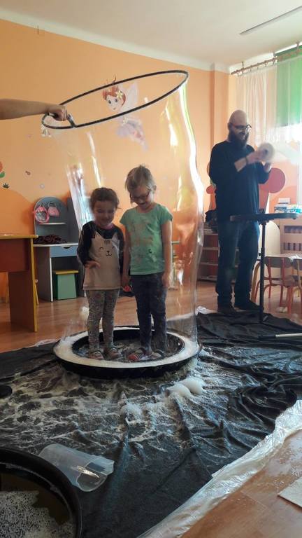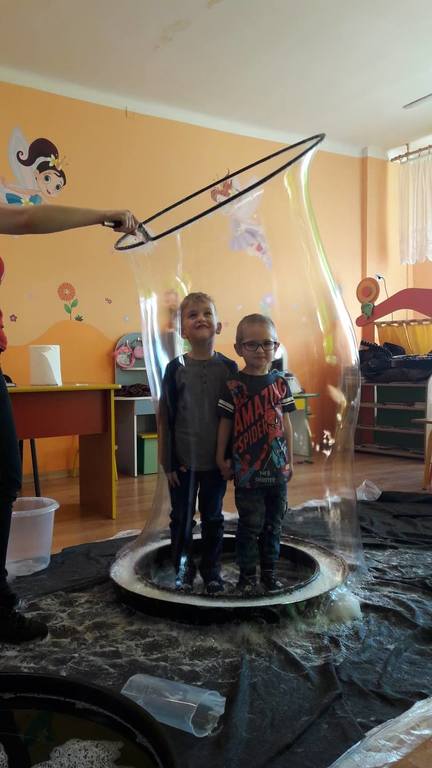 Nasze Przedszkolaki wzięły udział we wspaniałym pokazie baniek mydlanych. Artyści przyjechali do naszego Przedszkola by zaprezentować dzieciom niezwykłe przedstawienie, które przypadło do gustu wszystkim, którzy w nim uczestniczyli. Wrażenia z tego niecodziennego wydarzenia w pewien sposób mogą przedstawić zdjęcia, jednak na żywo wyglądało to zdecydowanie bajecznie.