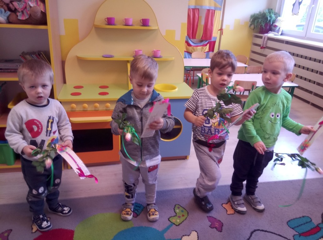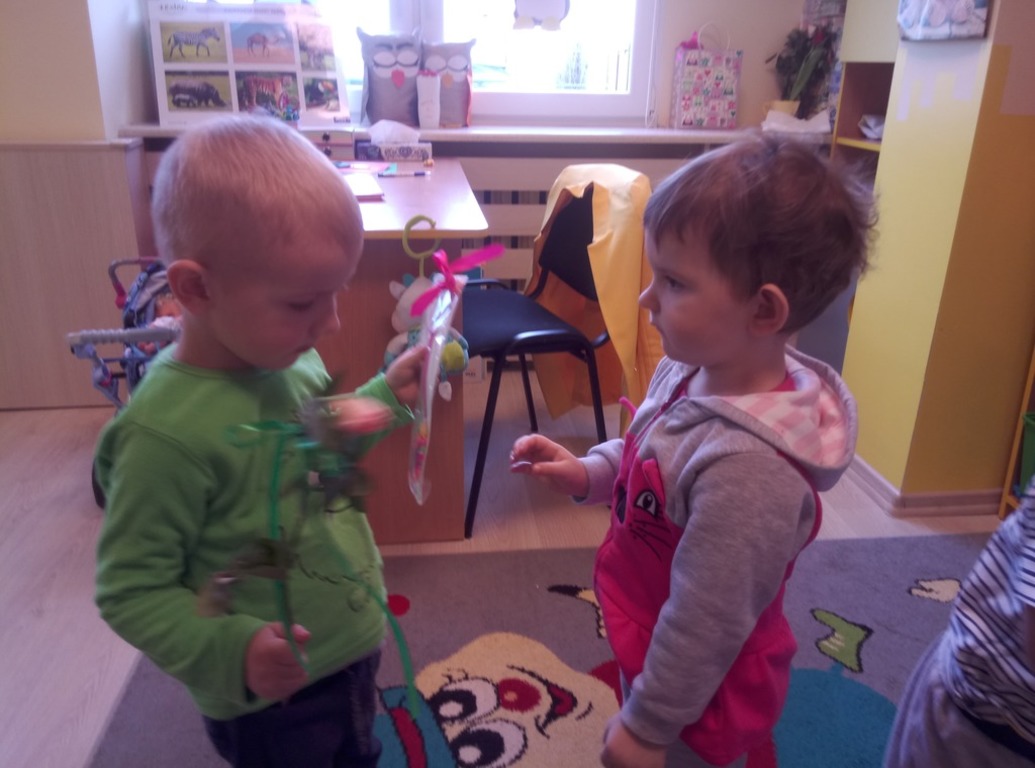 Dzień Kobiet, jak co roku, był w naszym Przedszkolu obchodzony niezwykle uroczyście. Wszystkie Przedszkolaki świętowały w swoich grupach poprzez składanie pięknych życzeń, śpiewanie dziewcznkom "sto lat...", a także wręczanie wspaniałych uopominków przygotowanych przez Radę Rodziców, nie tylko dla dziewczynek, ale także dla chłopczyków, by nikomu tego dnia nie było smutno. Bardzo się, cieszymy, że możemy naszym dzieciaczkom przekazywać tak wspaniałe tradycje, które wzbogacają nasze relacje z innymi ludźmi.