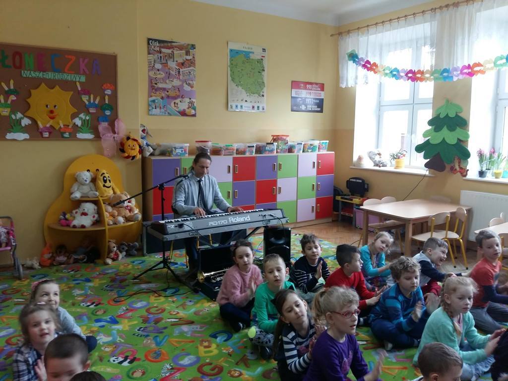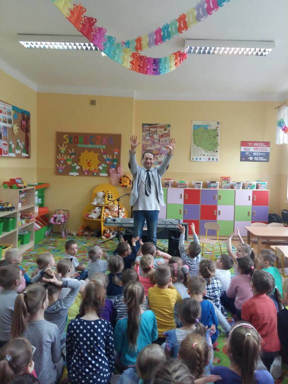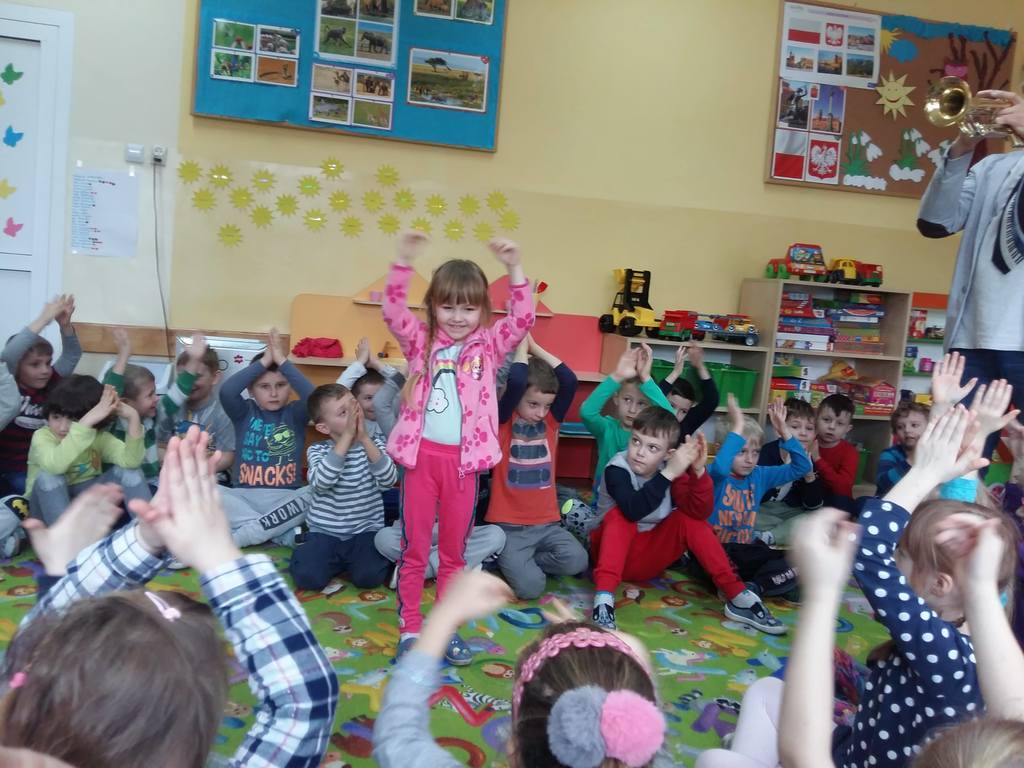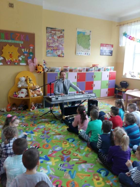 W ramach preorientacji zawodowej dzieci ze starszych grup wzięły udział w warsztatach muzycznych pt. "Muzyczny spływ Wisłą". Warsztaty te przebiegały przy dźwiękach pianina oraz trąbki i miały za zadanie rozbudzić i rozwinąć emocje. Dzięki tym warsztatom dzieci mogły poznać zawód muzyka. Program muzyczny był bardzo ciekawy. W aktywny sposób angażował dzieci do udziału w nich. Zadaniem dzieci było reagowanie na zmiany zachodzące w muzyce w określony sposób. Muzyk grał na trąbce fragmenty znanych dzieciom z bajek piosenek, m.in.: "Reksio", "Przygody Koziołka Matołka", "Smerfy" itp. Dzieci bez problemu potrafiły rozpoznać utwory. Przedszkolaki wysłuchały także muzyki znanych tańców ludowych, takich jak: krakowiak, mazurek, kujawiak. Utowry te artysta wykonał na pianinie. Motywem przewodnim całych warsztatów była podróż z biegiem Wisły, od Baraniej Góry aż do Morza Bałtyckiego. Dzięki temu dzieci mogły utrwalić sobie nazwy miast położonych nad Wisłą. Kiedy muzyczna podróż dotarła do Warszawy, dzieci miały za zadanie wystukiwać rytm hymnu polskiego na bębenku, którym były plecy kolegi.