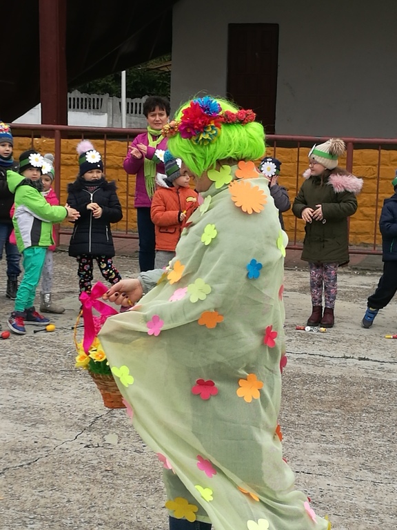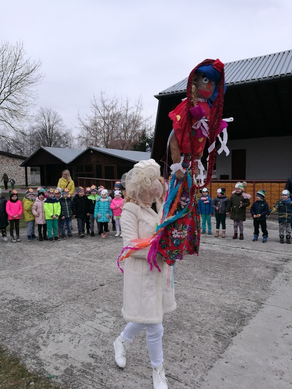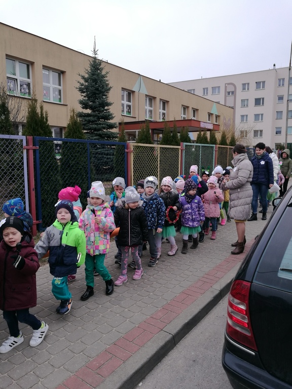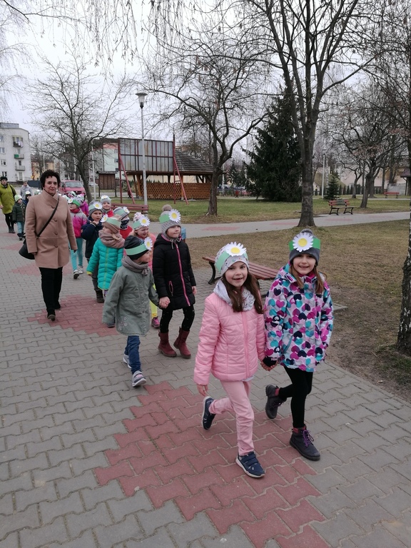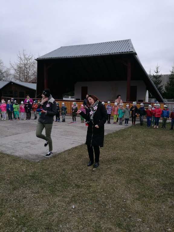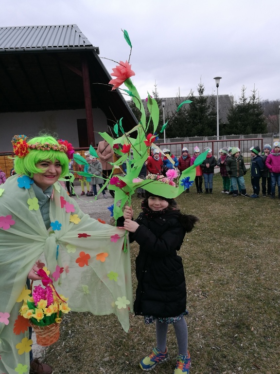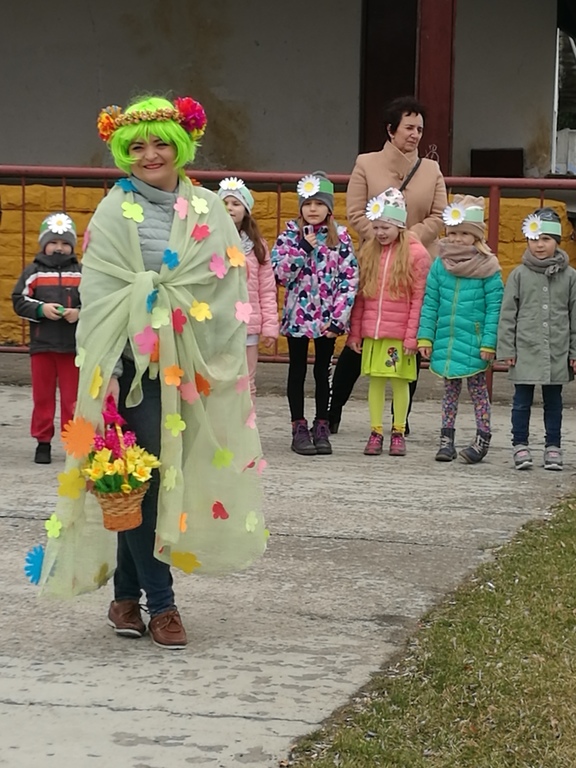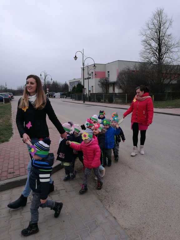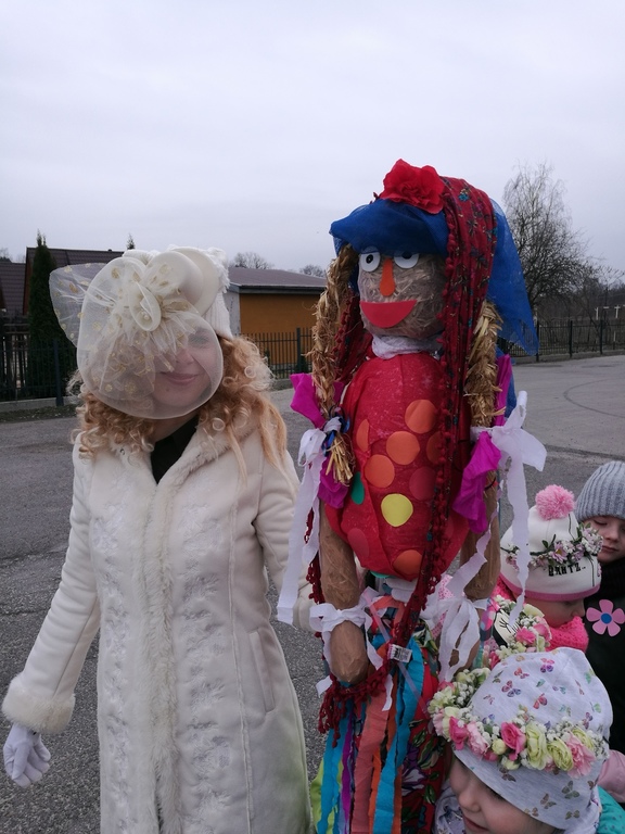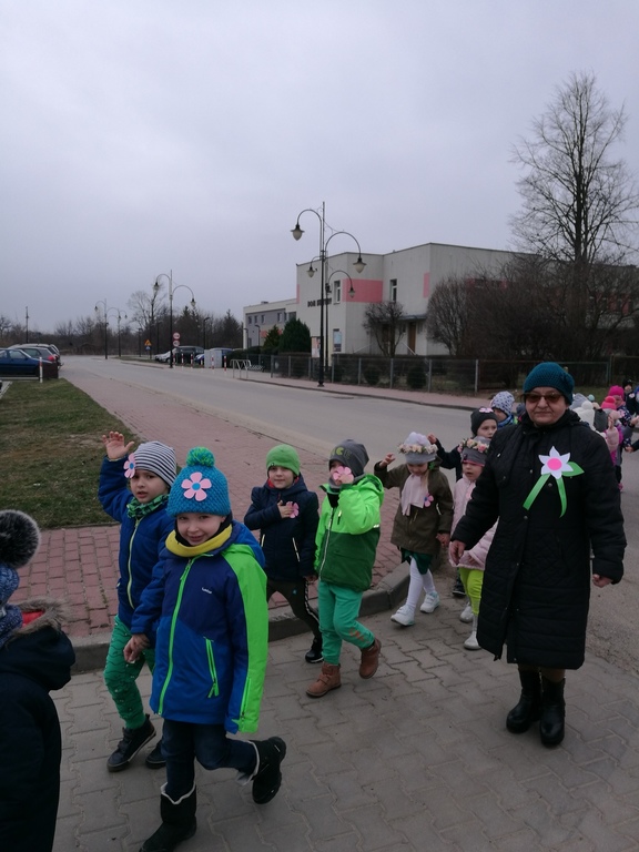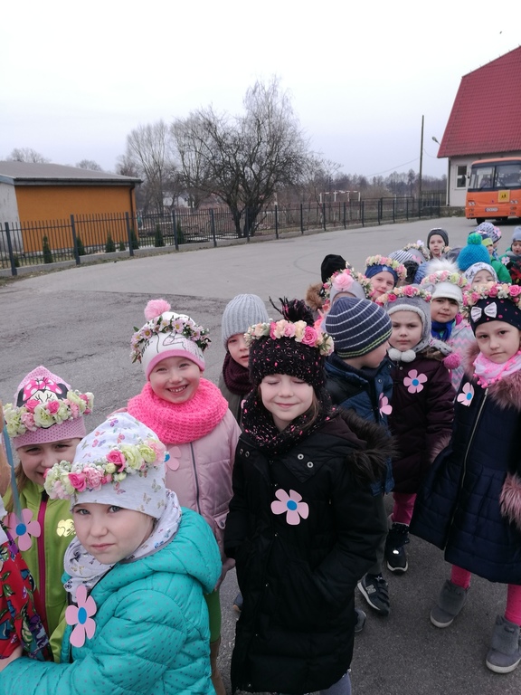 W czwartek 21.03.2019r dzieci z naszego przedszkola wzięły udział w uroczystym Powitaniu Wiosny. Wszystkie grupy z przedszkola oraz szkoły podstawowej udały się na MGOSiR w prawdziwie wiosennym korowodzie. Dzieci pożegnały Panią Zimę, której symbolem była kukła "Marzanna". Przegoniły Zimę specjalnie przygotowanym wierszem oraz piosenką, a także w ten sam sposób zaprosiły Panią Wiosnę, by na dobre zagościła wśród nas. Dzieci oznajmiały wszystkim mieszkańcom przybycie Wiosny poprzez granie na intrumentach perkusyjnych oraz grzechotkach. W tym dniu większość dzieci ubrało się także w kolorze zielonym, symbolizującym nadejście Wiosny.