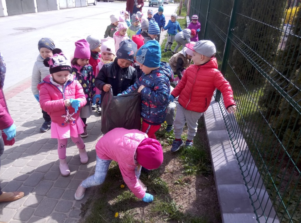 Nasze Przedszkolaki świętowały Dzień Ziemi pomagając jej "lepiej żyć" poszczególne grupy solidnie wysprzątały teren przed przedszkolem, wokól przedszkola, plac przedszkolny, drogę na przystań i część przystań. Dzieci szybko zapełniały worki niepotrzebnymi smieciami, wzajemnie sobie tłumacząc " odpowiednie miejsce na śmieci to kosz". Mam nadzieję, że po zajęciach w swoich salach i lekcji sprzątnia dzieci zapamiętają i na codzień zawsze będa dbać o naszą kochaną planetę.