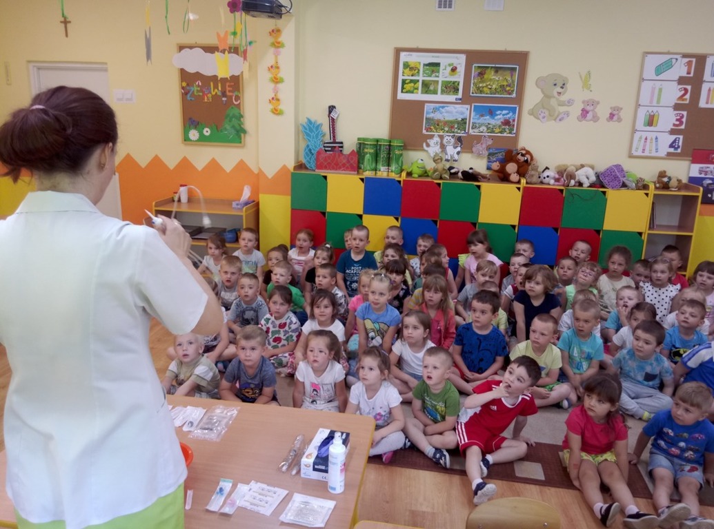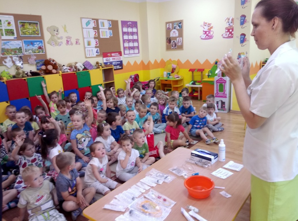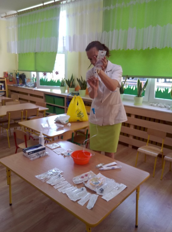 W ramach preorientacji zawodowej nauczyciele Samorządowego Przedszkola w Iłży przez cały rok starali się jak najlepiej przybliżyć dzieciom najbardziej znane zawody. Jednym z takich zawodów jest niewątpliwie zawód Pielęgniarki, z którą to dzieci miały okazję się spotkać. Pani Pielęgniarka w bardzo ciekawy sposób opowiedziała dzieciom o swojej pracy, pokazała wiele akcesoriów używanych w jej codziennej pracy, co spotkało się ze szczególnym zainteresowaniem przedszkolaków. Serdecznie dziękujemy za wspaniałe spotkanie.