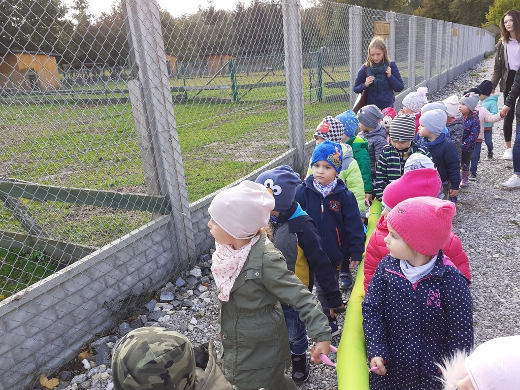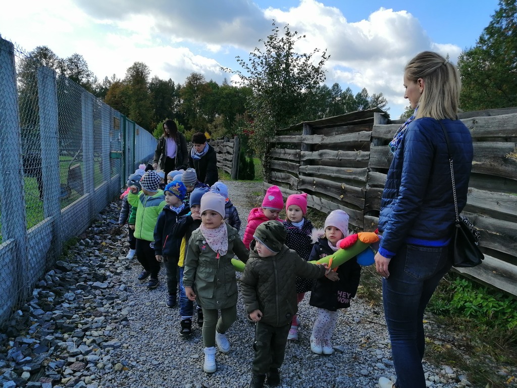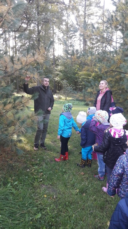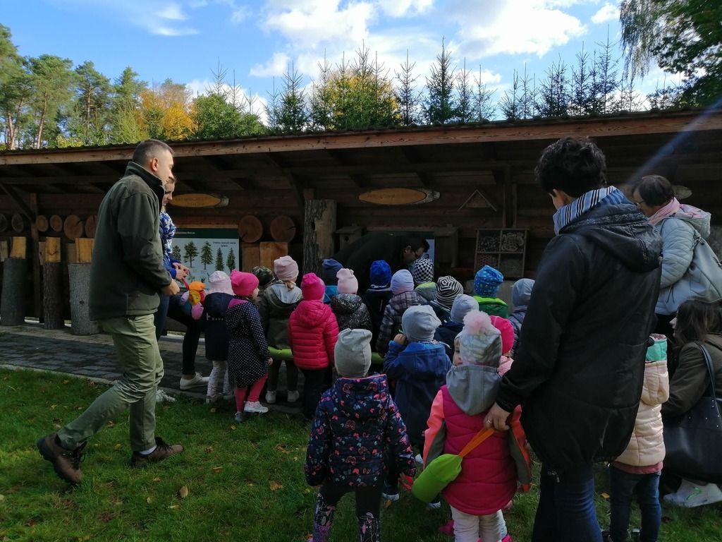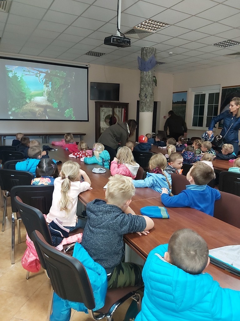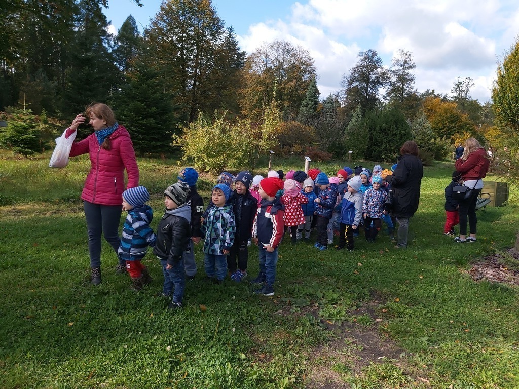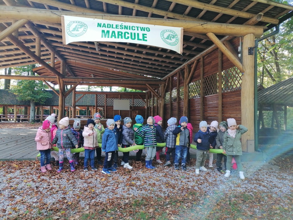 W dniach 1 i 2 października 2019 r. nasze przedszkolaki odwiedziły Nadleśnictwo w Marculach. Na początku dzieci zwiedziły Arboretum, gdzie zobaczyły najciekawsze obiekty przyrody ożywionej, poznały wiele gatunków drzew oraz roślin. Z zaciekawieniem słuchały opowieści pana leśniczego o roślinach pochodzących z innych krajów. Wielkie zainteresowanie przedszkolaków wzbudziły zagrody ze zwierzętami, w których mogły z bliska zobaczyć osiołka, kozę, sarenkę, kucyka oraz różnorodne ptaki. Uwieńczeniem wycieczki była projekcja bajki " Dzik Ryjo".