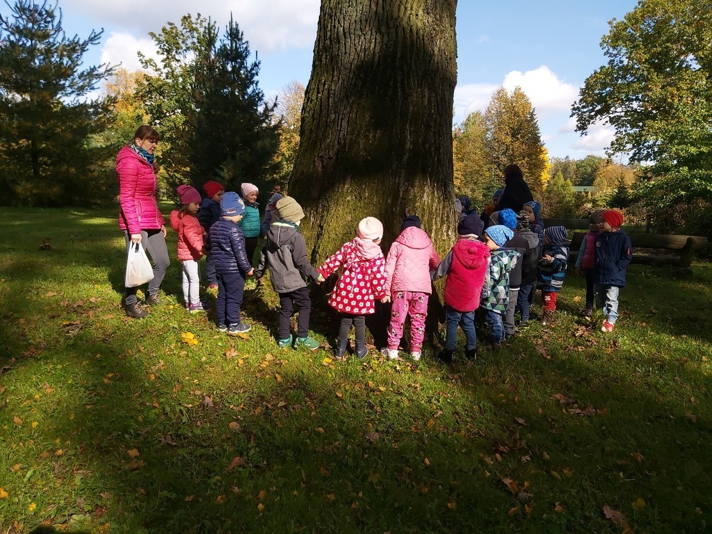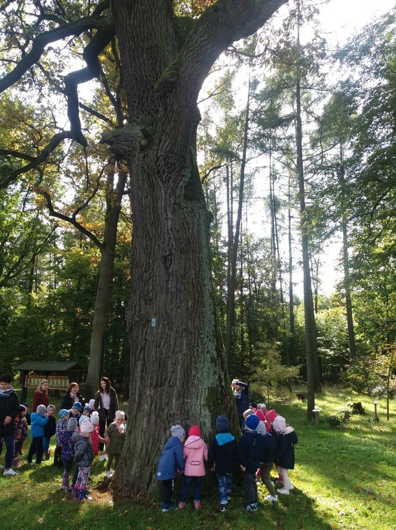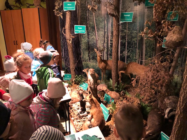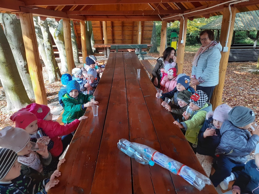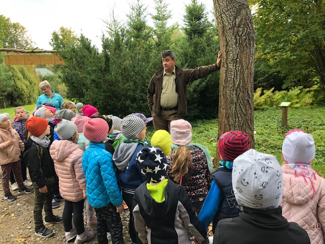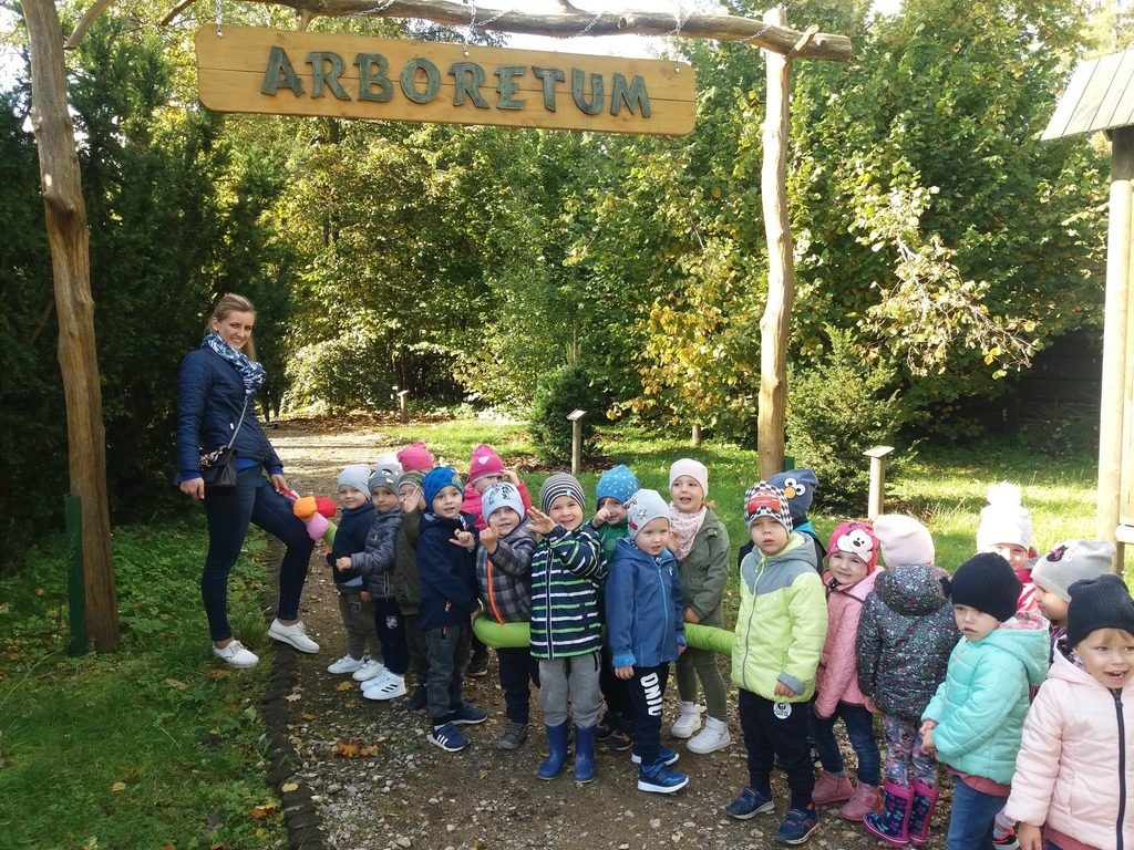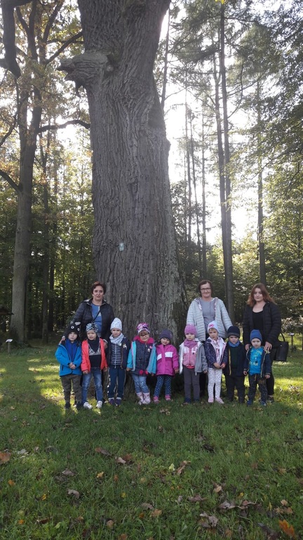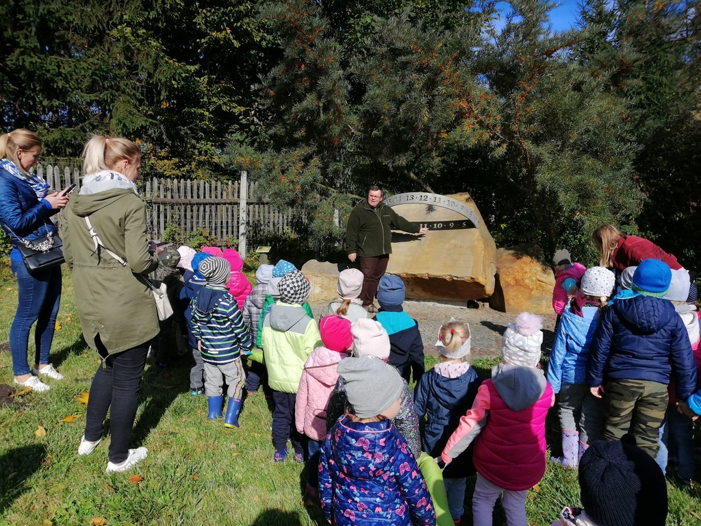 W dniach 1 i 2 października 2019 r. nasze przedszkolaki odwiedziły Nadleśnictwo w Marculach. Na początku dzieci zwiedziły Arboretum, gdzie zobaczyły najciekawsze obiekty przyrody ożywionej, poznały wiele gatunków drzew oraz roślin. Z zaciekawieniem słuchały opowieści pana leśniczego o roślinach pochodzących z innych krajów. Wielkie zainteresowanie przedszkolaków wzbudziły zagrody ze zwierzętami, w których mogły z bliska zobaczyć osiołka, kozę, sarenkę, kucyka oraz różnorodne ptaki. Uwieńczeniem wycieczki była projekcja bajki " Dzik Ryjo".