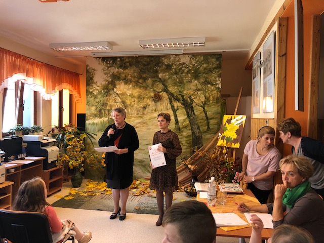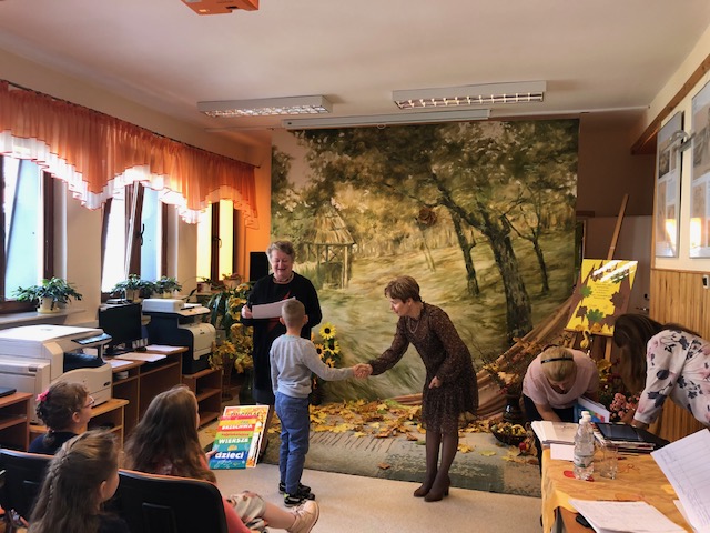 W dniu 23 października nasze przedszkolaki wzięły udział w konkursie recytatorskim pt.: „ Strofy jesieni” zorganizowanym przez Miejsko- Gminną Bibliotekę Publiczną w Iłży. Dzieci z wielkim zaangażowaniem podjęły się wystąpienia przed publicznością a recytacje wypadły doskonale. Wszyscy otrzymali wyróżnienie oraz nagrody i dyplomy. Po części konkursowej na uczestników czekał słodki poczęstunek.