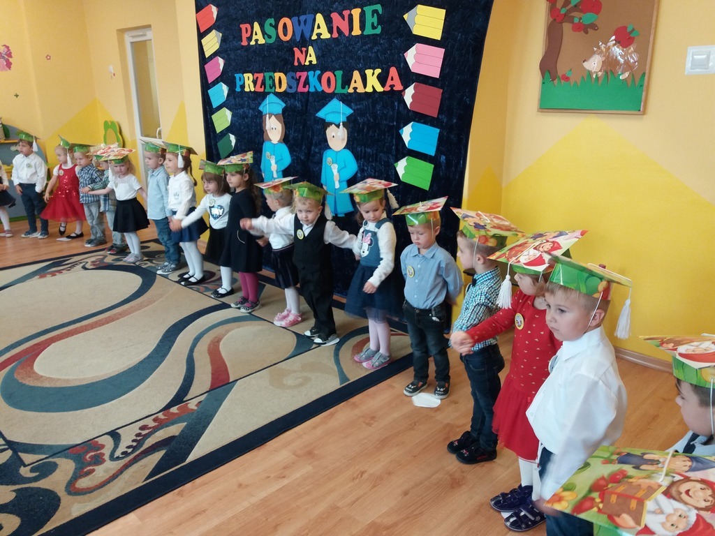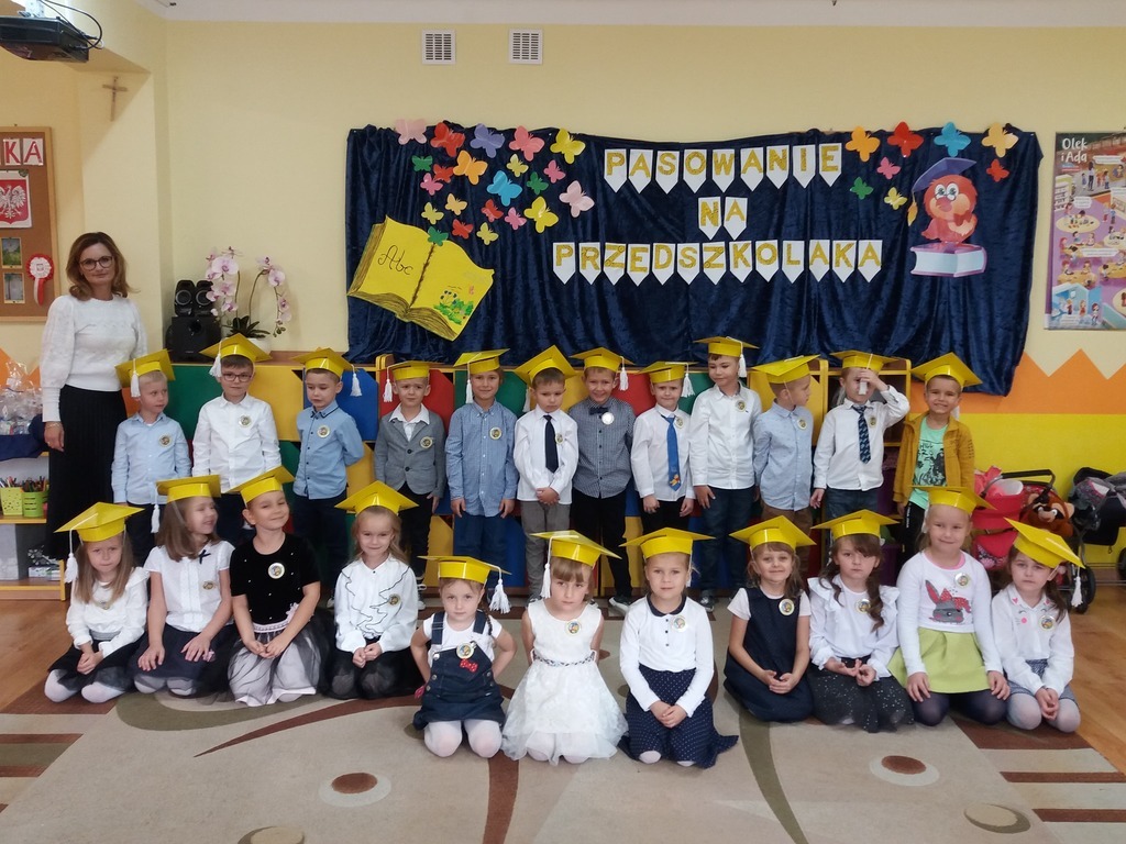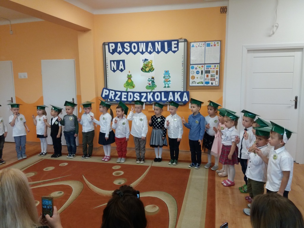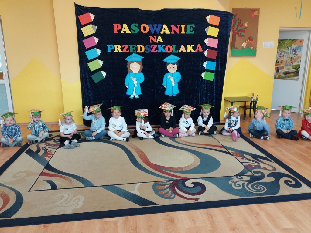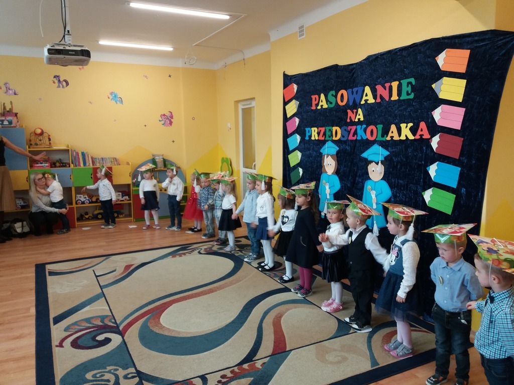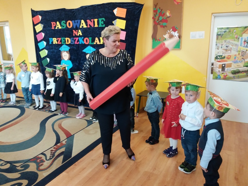 W dniach 29 i 30 października 2019 r. w naszym przedszkolu odbyło się „ Pasowanie na Przedszkolaka”. Uroczystość rozpoczęła się od powitania gości i przedstawienia krótkiej części artystycznej, w której przedszkolaki zaprezentowały swoje umiejętności. Były piosenki, wierszyki oraz taniec. Po części artystycznej, dzieci obiecały: zgodnie bawić się w przedszkolu, przychodzić każdego dnia z uśmiechem, słuchać pani i pomagać kolegom, byś dzielnym przedszkolakiem. Po złożonej obietnicy pani dyrektor dokonała uroczystego pasowania każdego dziecka na przedszkolaka. Na pamiątkę tego ważnego wydarzenia każdy przedszkolak otrzymał dyplom pasowania oraz słodki upominek.