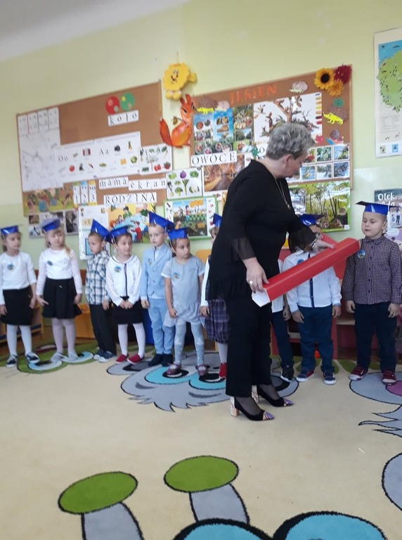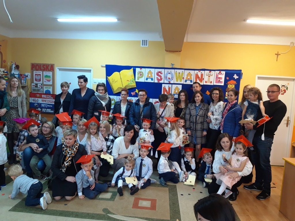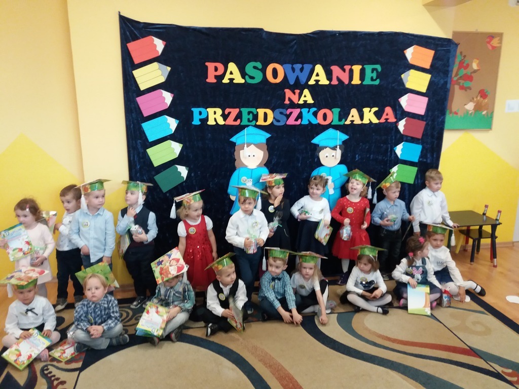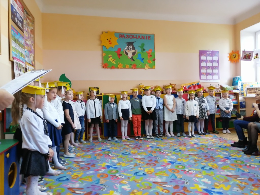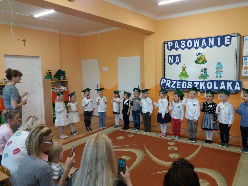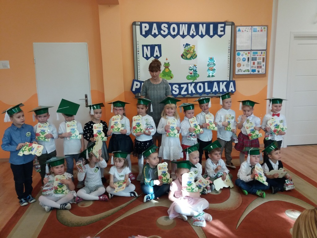 W dniach 29 i 30 października 2019 r. w naszym przedszkolu odbyło się „ Pasowanie na Przedszkolaka”. Uroczystość rozpoczęła się od powitania gości i przedstawienia krótkiej części artystycznej, w której przedszkolaki zaprezentowały swoje umiejętności. Były piosenki, wierszyki oraz taniec. Po części artystycznej, dzieci obiecały: zgodnie bawić się w przedszkolu, przychodzić każdego dnia z uśmiechem, słuchać pani i pomagać kolegom, byś dzielnym przedszkolakiem. Po złożonej obietnicy pani dyrektor dokonała uroczystego pasowania każdego dziecka na przedszkolaka. Na pamiątkę tego ważnego wydarzenia każdy przedszkolak otrzymał dyplom pasowania oraz słodki upominek.